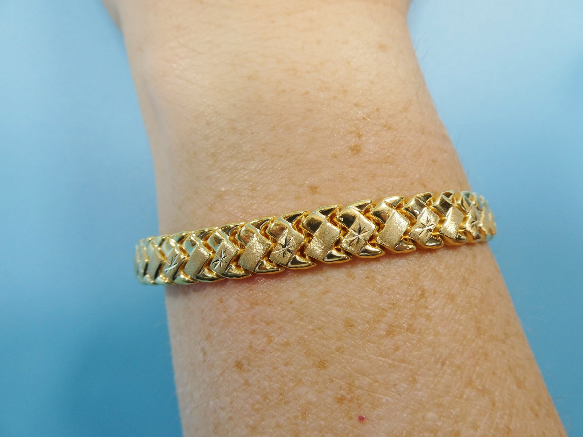 8 inch basket STAMPATO bracelet all yellow color tone14k yellow gold color finish over real 925 sterling silver