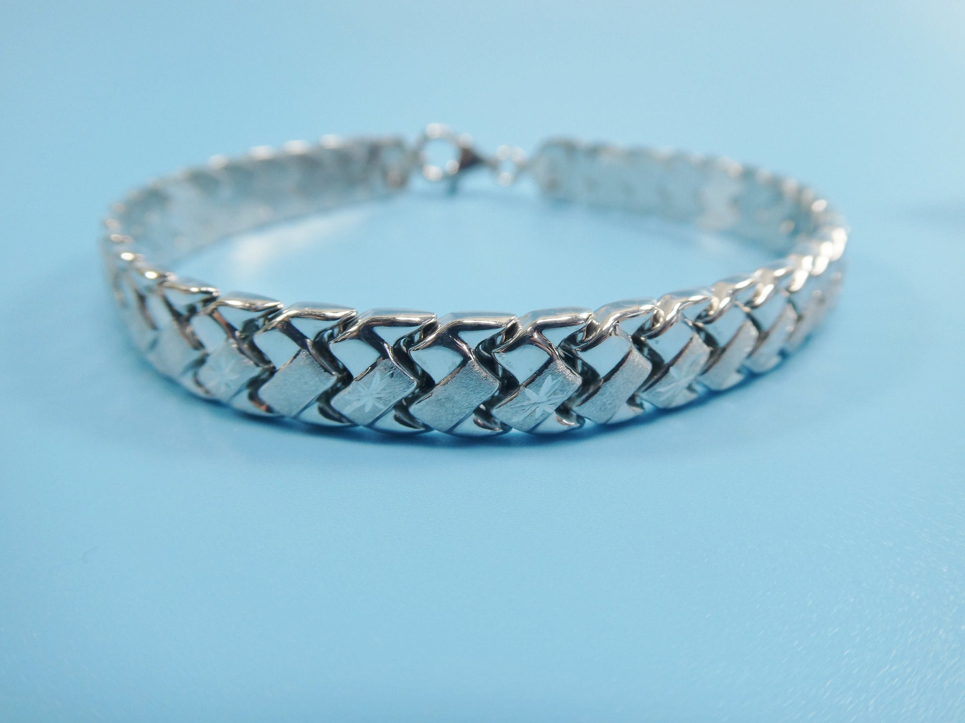 8 inch basket STAMPATO bracelet white gold tone 14k white gold tone finish over real 925 sterling silver
