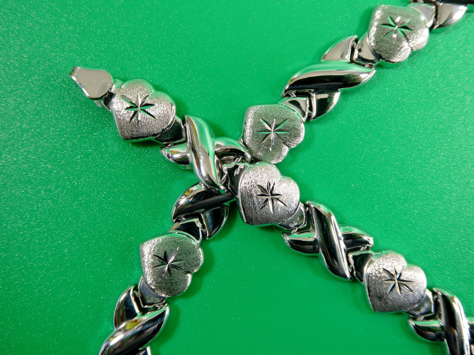 BRAND NEW XOXO HEART DOUBLE HEART NENTER HUGS AND KISSES I LOVE YOU SET NECKLACE AND BRACELET 14K WHIT GOLD COLOR TONE OVER REAL 925 STERLING SILVER LUXURY ATTRACTIVE LOOK HIGH POLISH FINISH RHODIUM PLATED FOR LASTING EXCELLENT GOLD COLOR FINISH COME IN NICE GIFT BOX MAKES A GREAT GIFT FOR ANY OCCASION