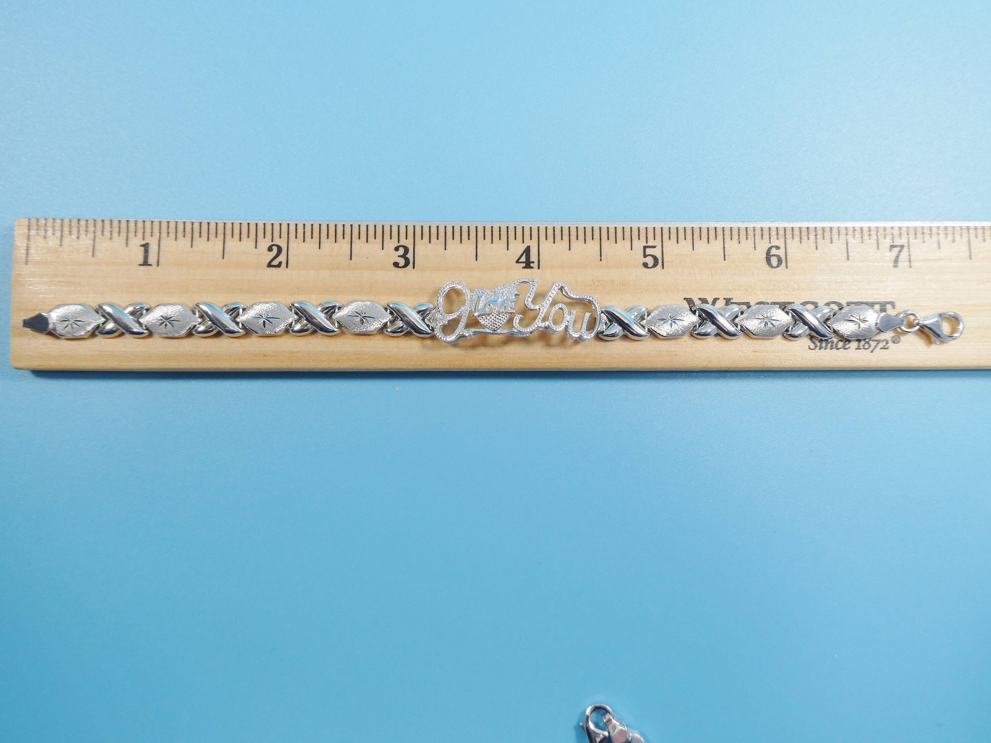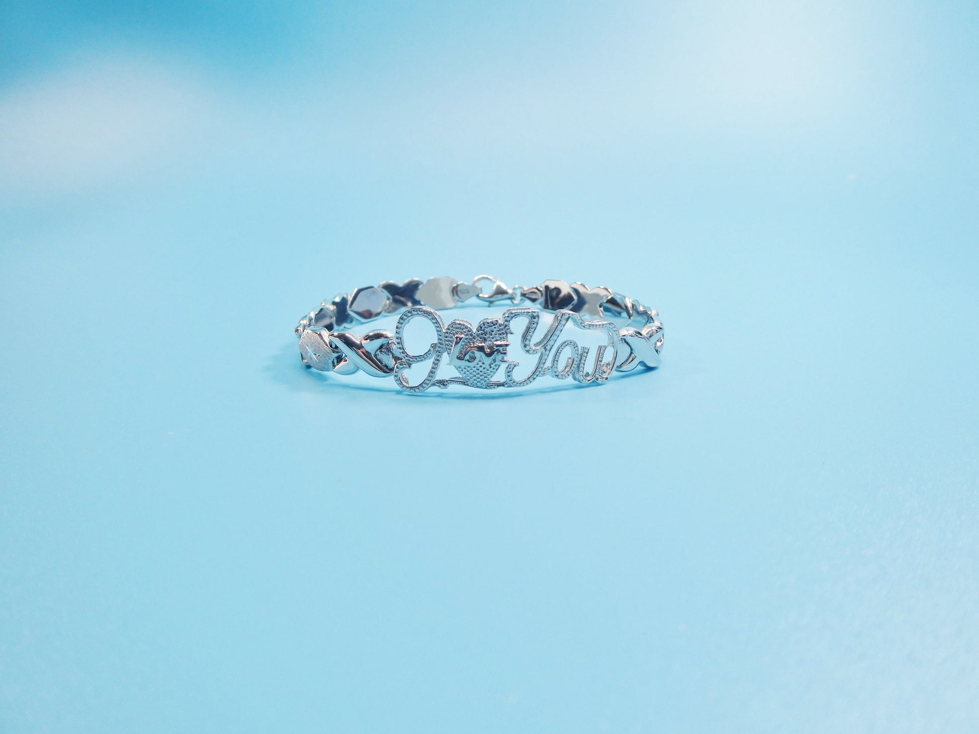 925 real sterling silver I love you xoxo hugs and kisses stampato 14k white gold tone color