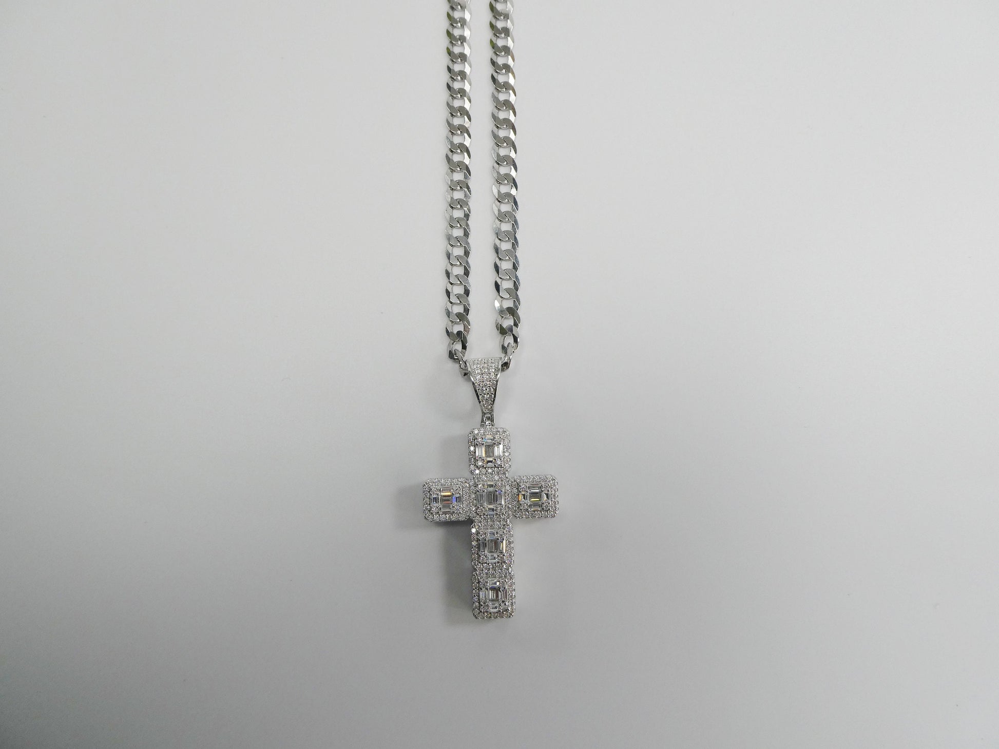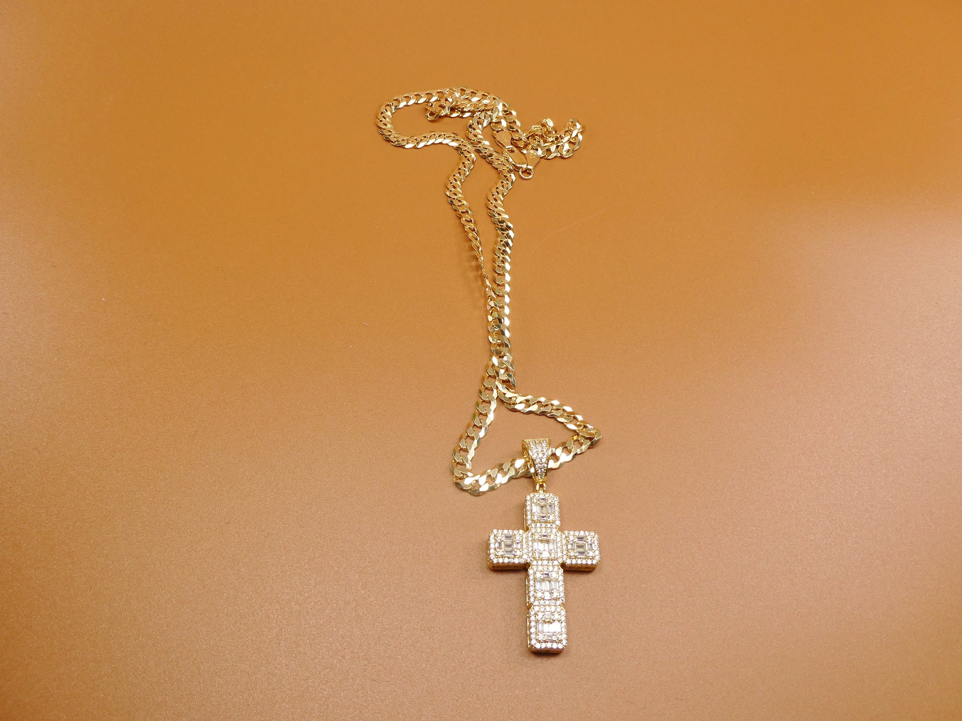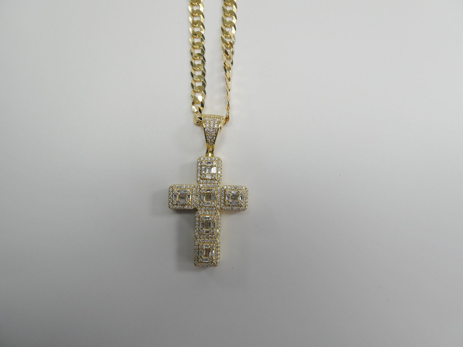 BRAND NEW 24 INCH CHAIN AND CROSS CHARM PENDENT REAL 925 STERLING SILVER GREAT GOLD TONE FINISH LOOKS EXCACTLY LIKE REAL GOLD AVAILBLE IN 14K WHITE GOLD TONE COLOR ATTRACTIVE LOOK LOBSTER LASP LOCK COME IN NICE GIFT BOX GREAT GIFT FOR ANY OCCASION