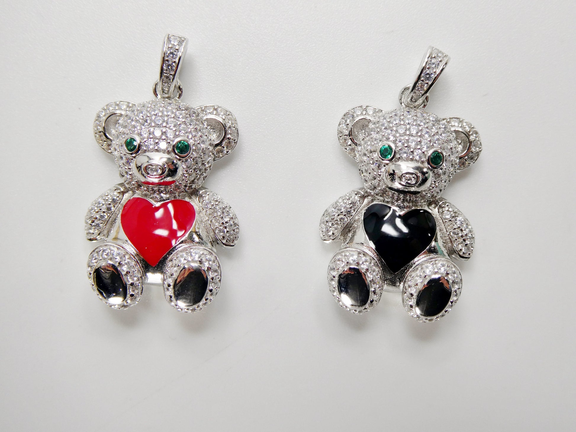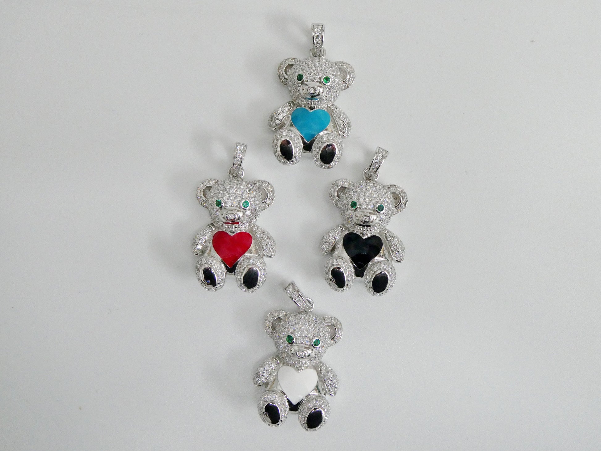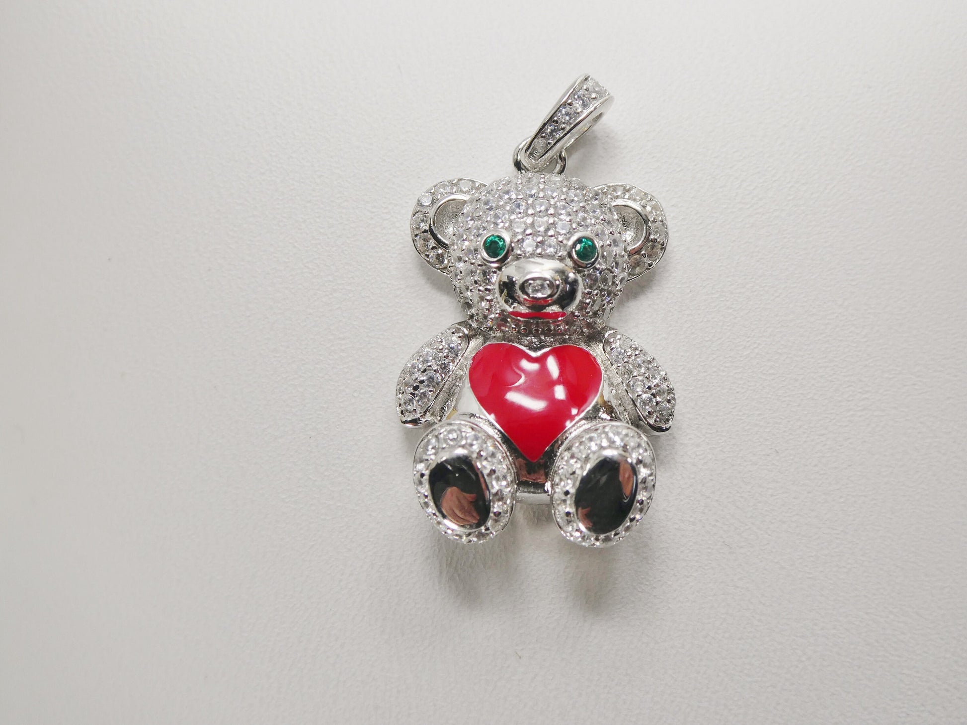REAL 925 STERLING SILVER ENAMEL COLOR TEDDY BEAR PENDENT CHARM FULL ICE CUBIC ZIRCONIA SHINY STONE GREAT FINISH GREAT PRICE HIGH QUALITY HIGH POLISH RHODIUM PLATING FOR LASTING MARK AND STAMP COME IN NICE GIFT BOX