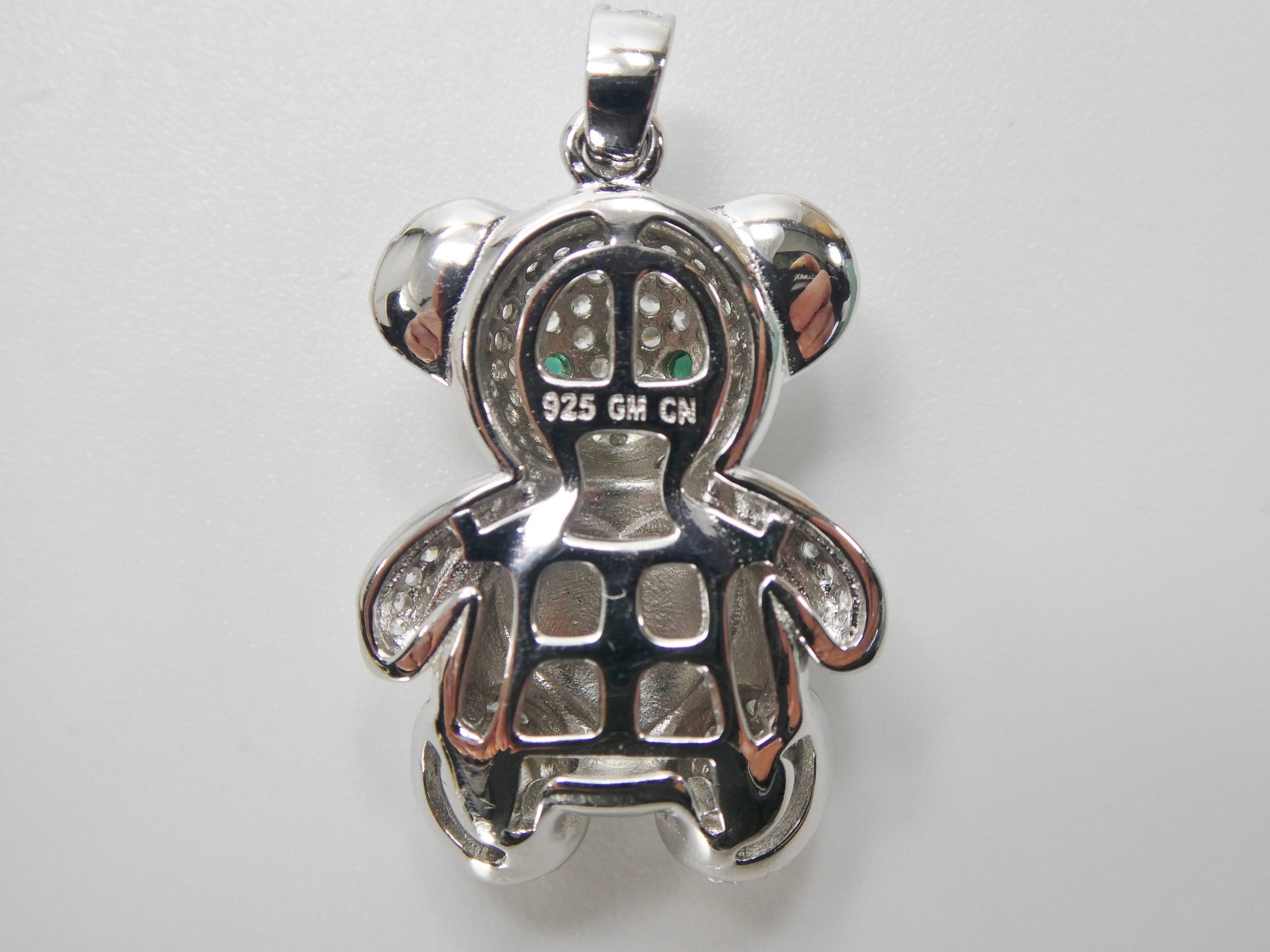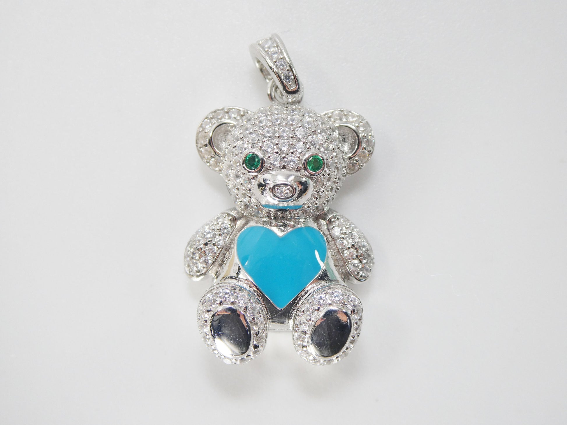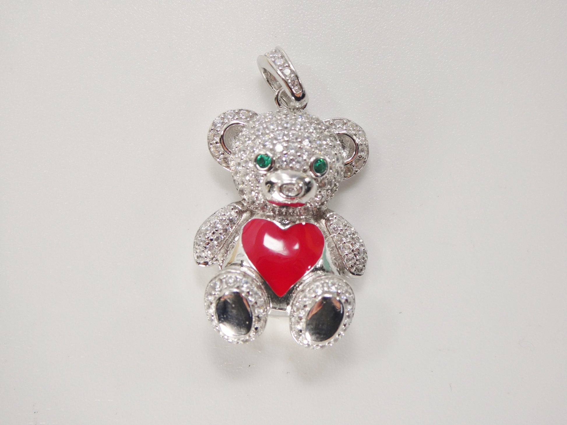 REAL 925 STERLING SILVER ENAMEL COLOR TEDDY BEAR PENDENT FULL ICE CUBIC ZIRCONIA SHINY STONE GREAT FINISH HIGH QUALITY HIGH POLISH RHODIUM PLATING FOR LASTING MARK AND STAMP COME IN NICE GIFT BOX