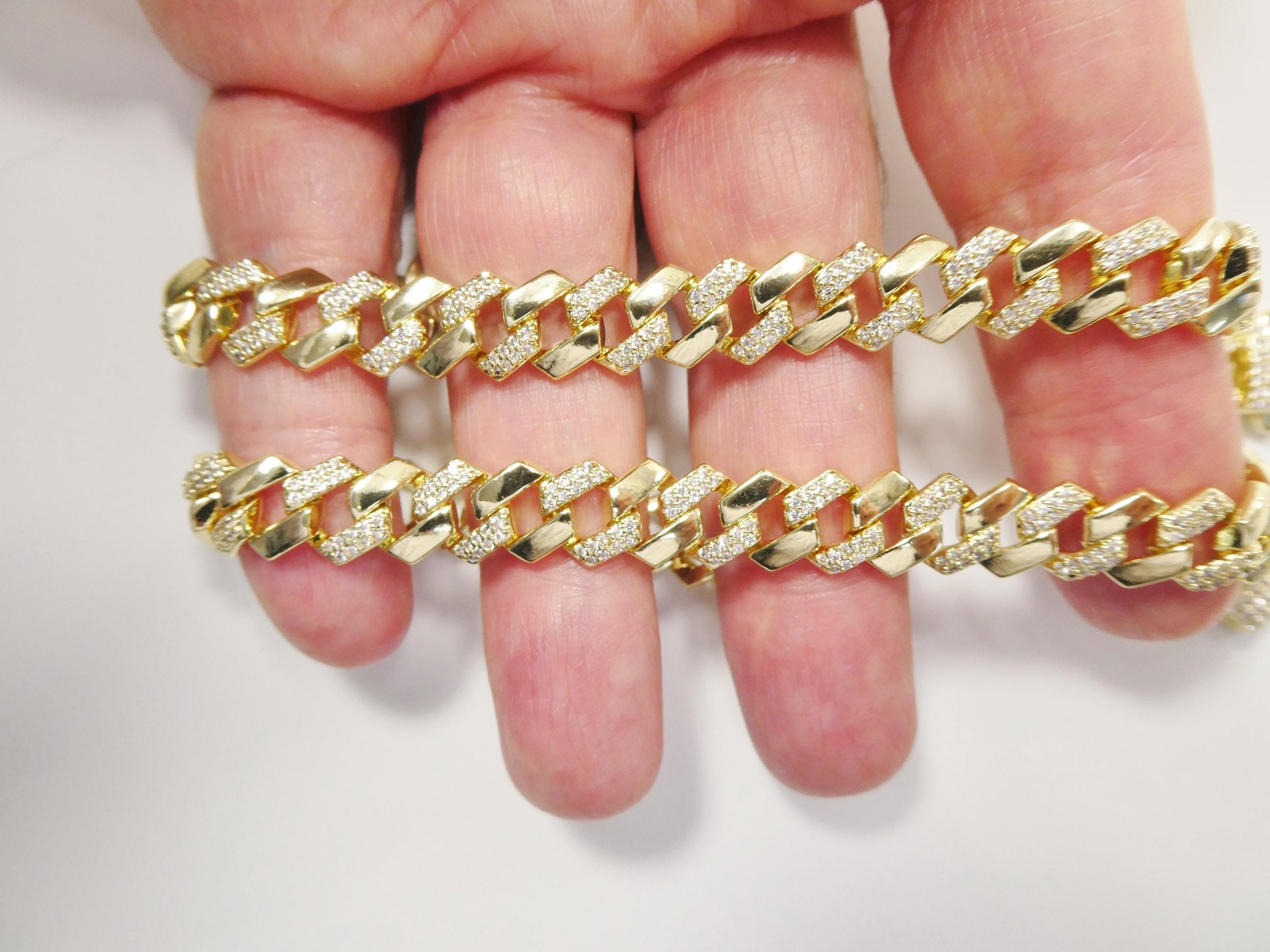 ELEGANT 9MM MONACO 14K YELLOW GOLD FILLED CUBAN LINK NECKLACE / BRACELET HIGH QUALITY HIGH POLISH GREAT PRICE ATTRACTIVE LOOK COME IN NICE GIFT BOX