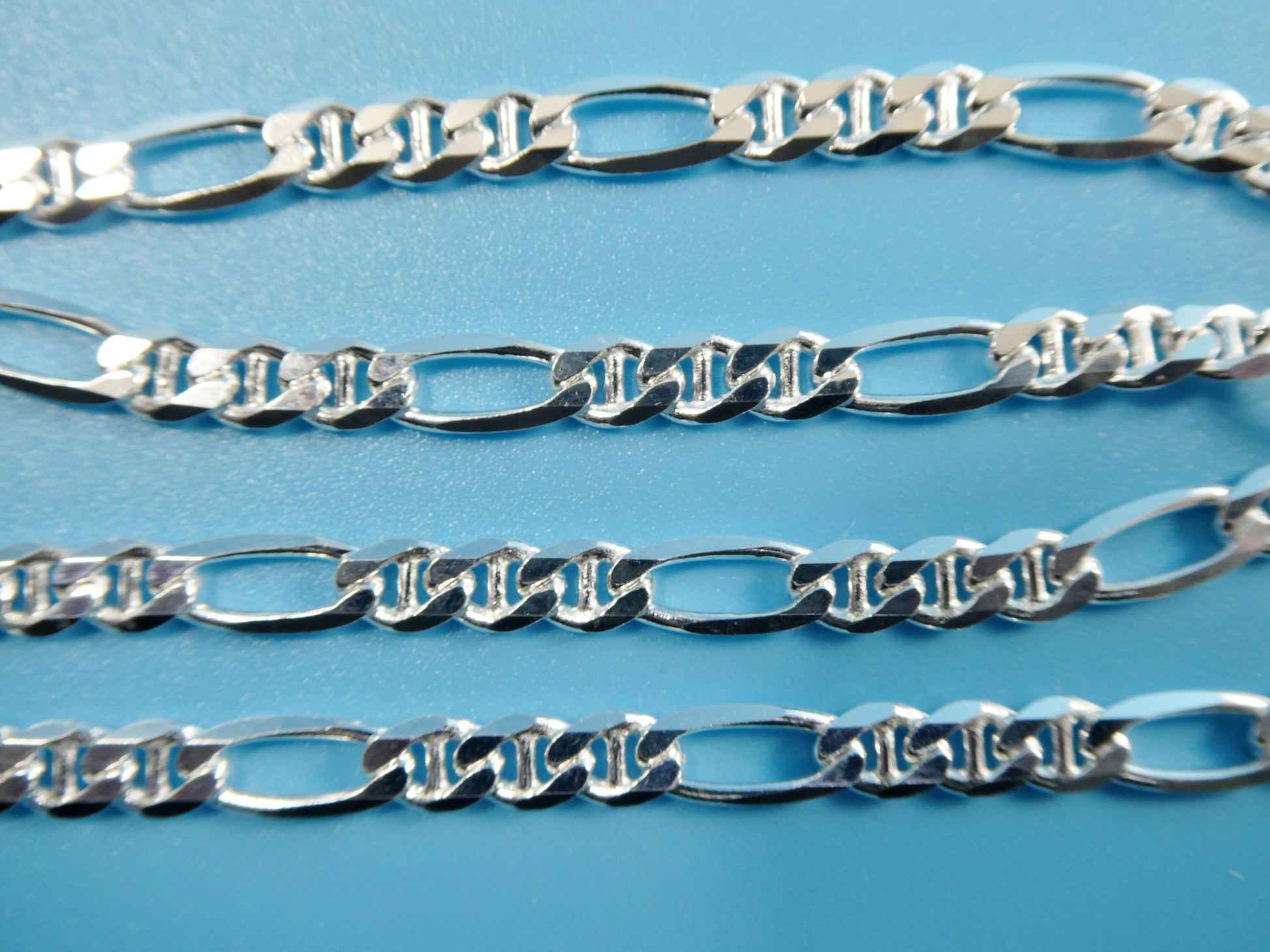 NEW STYLE REAL 925 STERLING SILVER 4.6MM ITALIAN SOLID FIGARO/ MARINER CHAIN LOBSTER LOCK HIGH QUALITY HIGH POLISH GREAT PRICE MADE IN ITALY