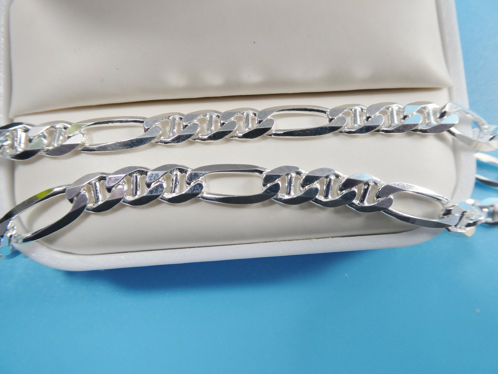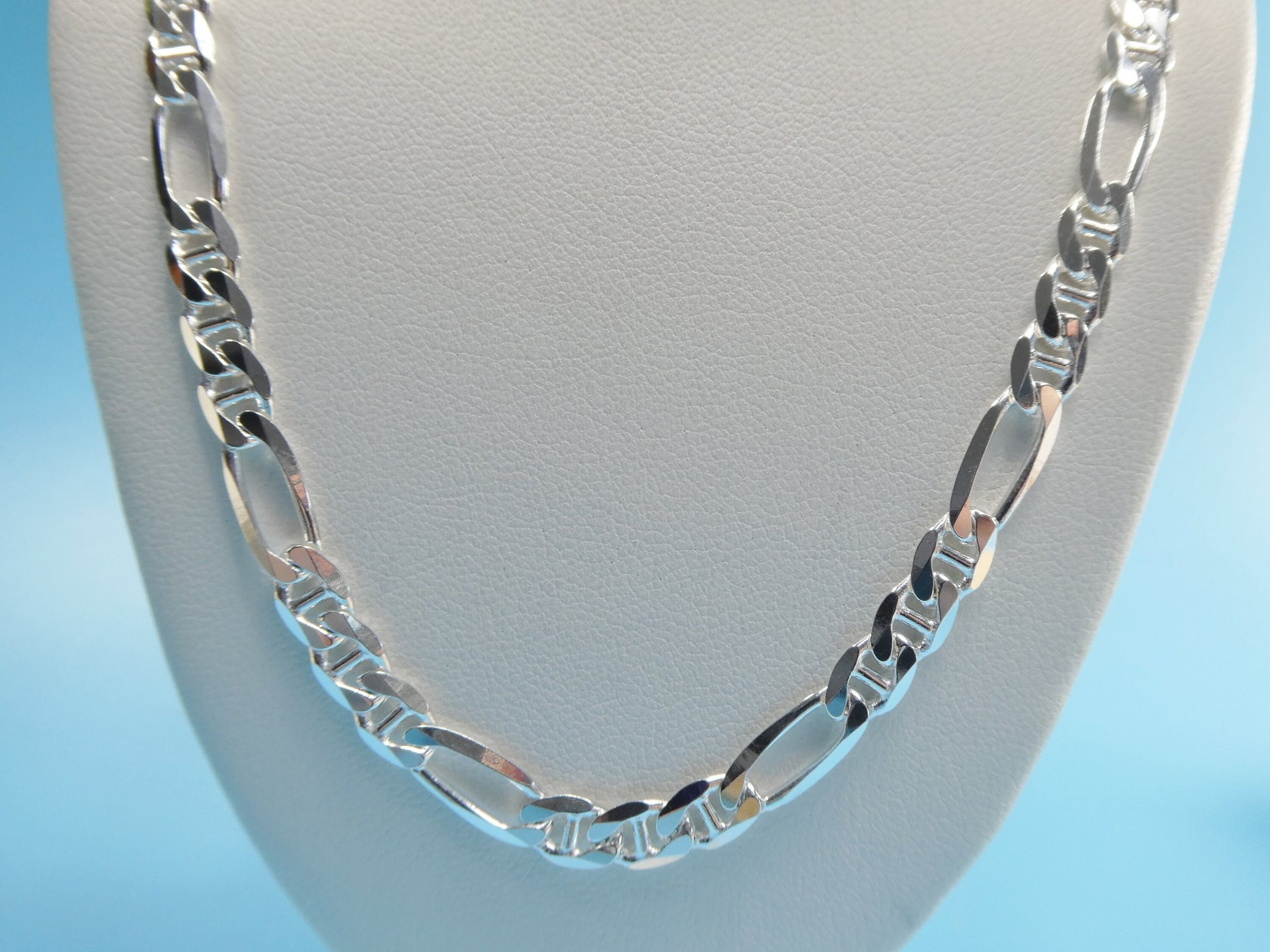 NEW STYLE REAL 925 STERLING SILVER 5.5MM ITALIAN SOLID FIGARO/ MARINER CHAIN LOBSTER LOCK HIGH QUALITY HIGH POLISH GREAT PRICE MADE IN ITALY