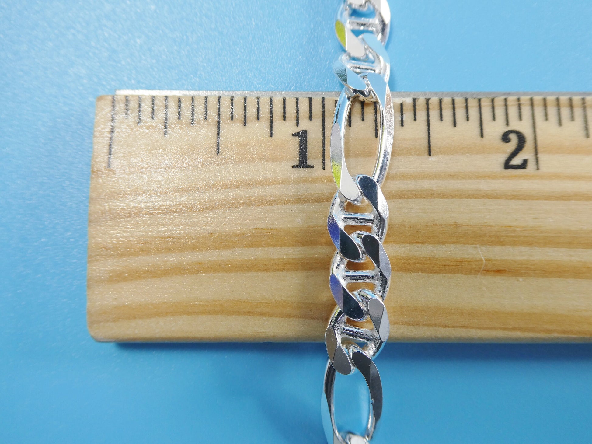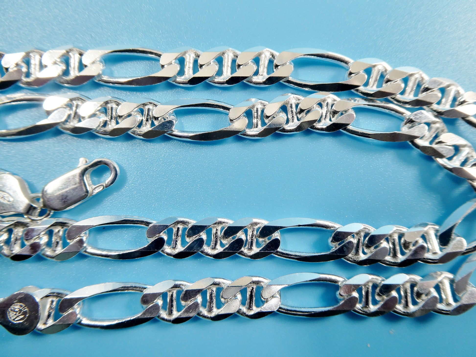 NEW STYLE REAL 925 STERLING SILVER 7.5MM ITALIAN SOLID FIGARO/ MARINER CHAIN LOBSTER LOCK HIGH QUALITY HIGH POLISH GREAT PRICE MADE IN ITALY