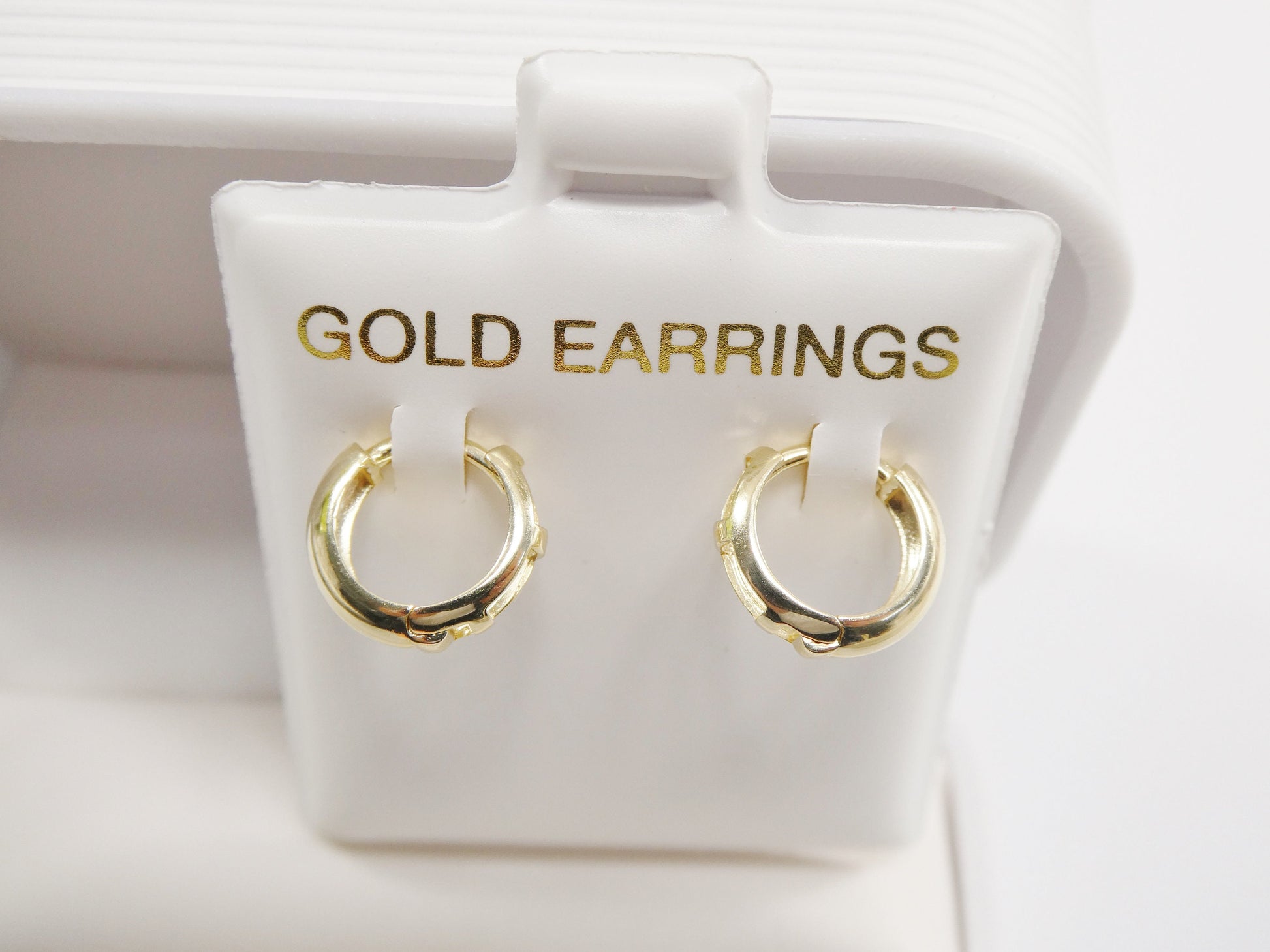 real 10k solid yellow gold 10.5mm small plain high polish finish hoop huggie earring