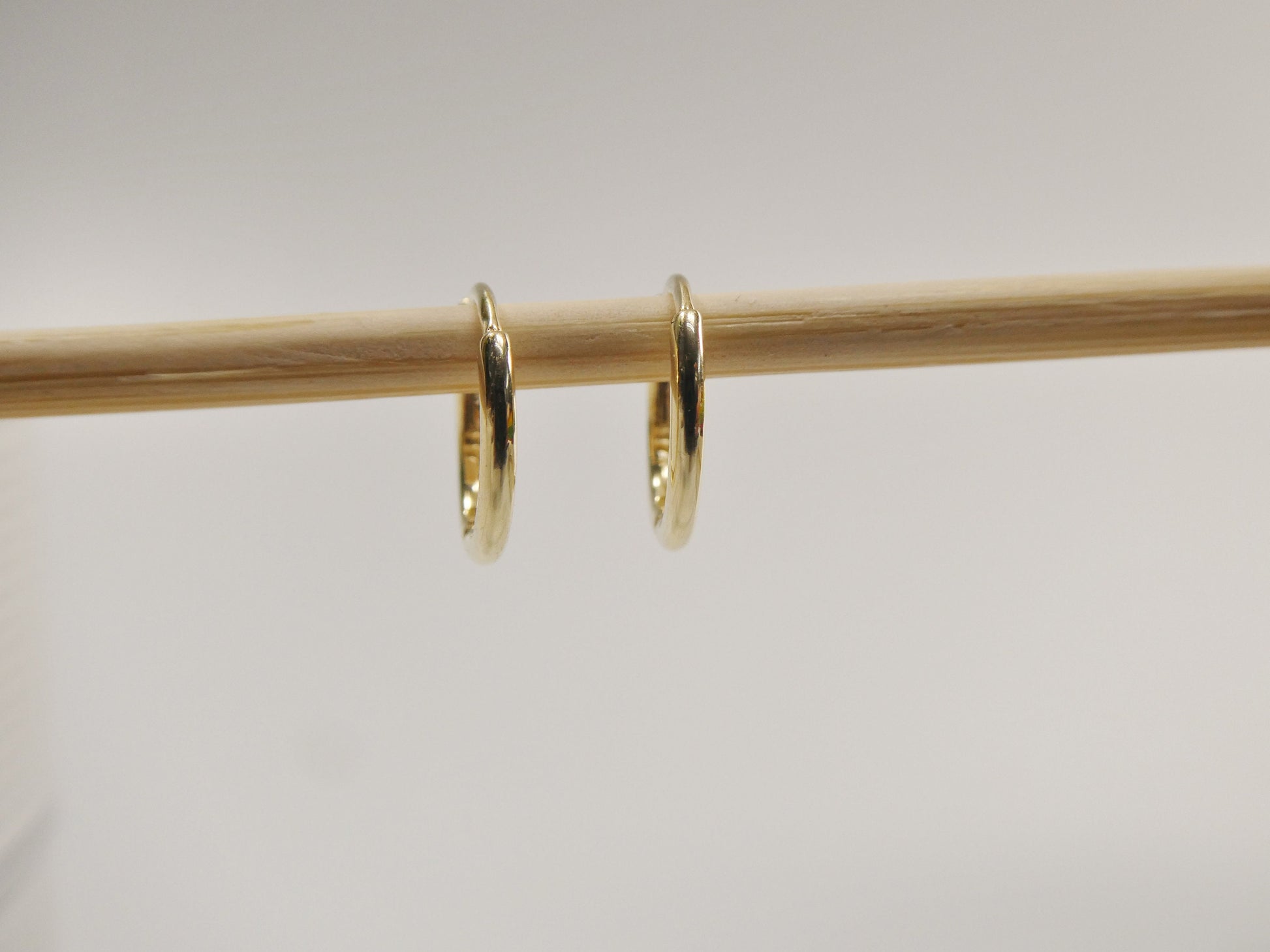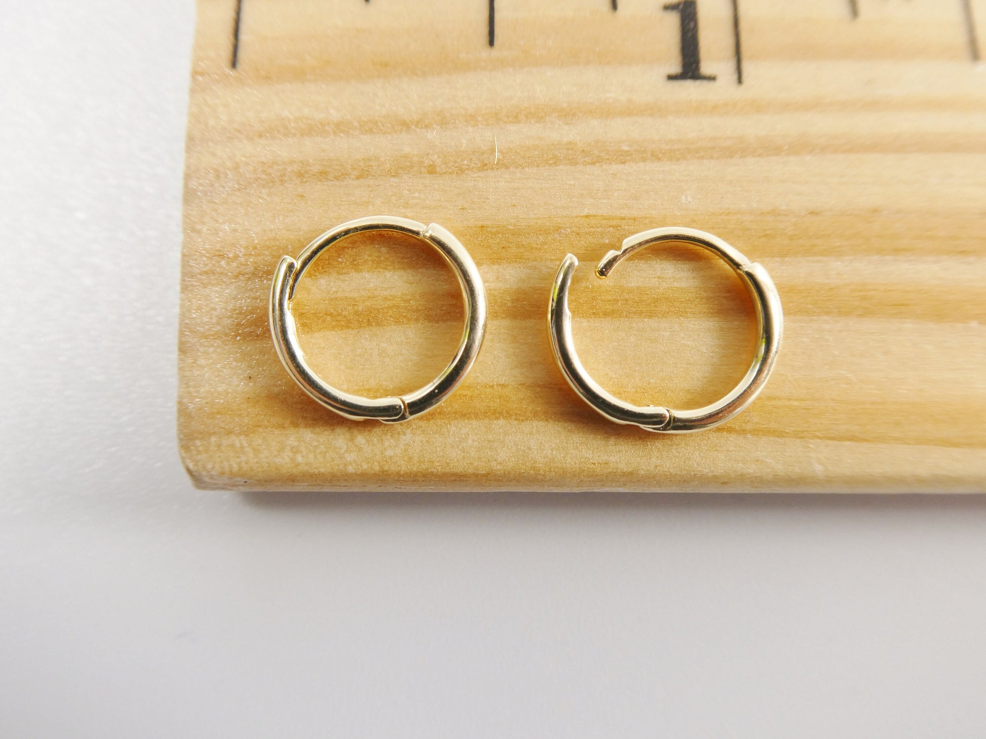 real 10k solid yellow gold 10mm 1MM THICKNESS plain hoop huggie earring