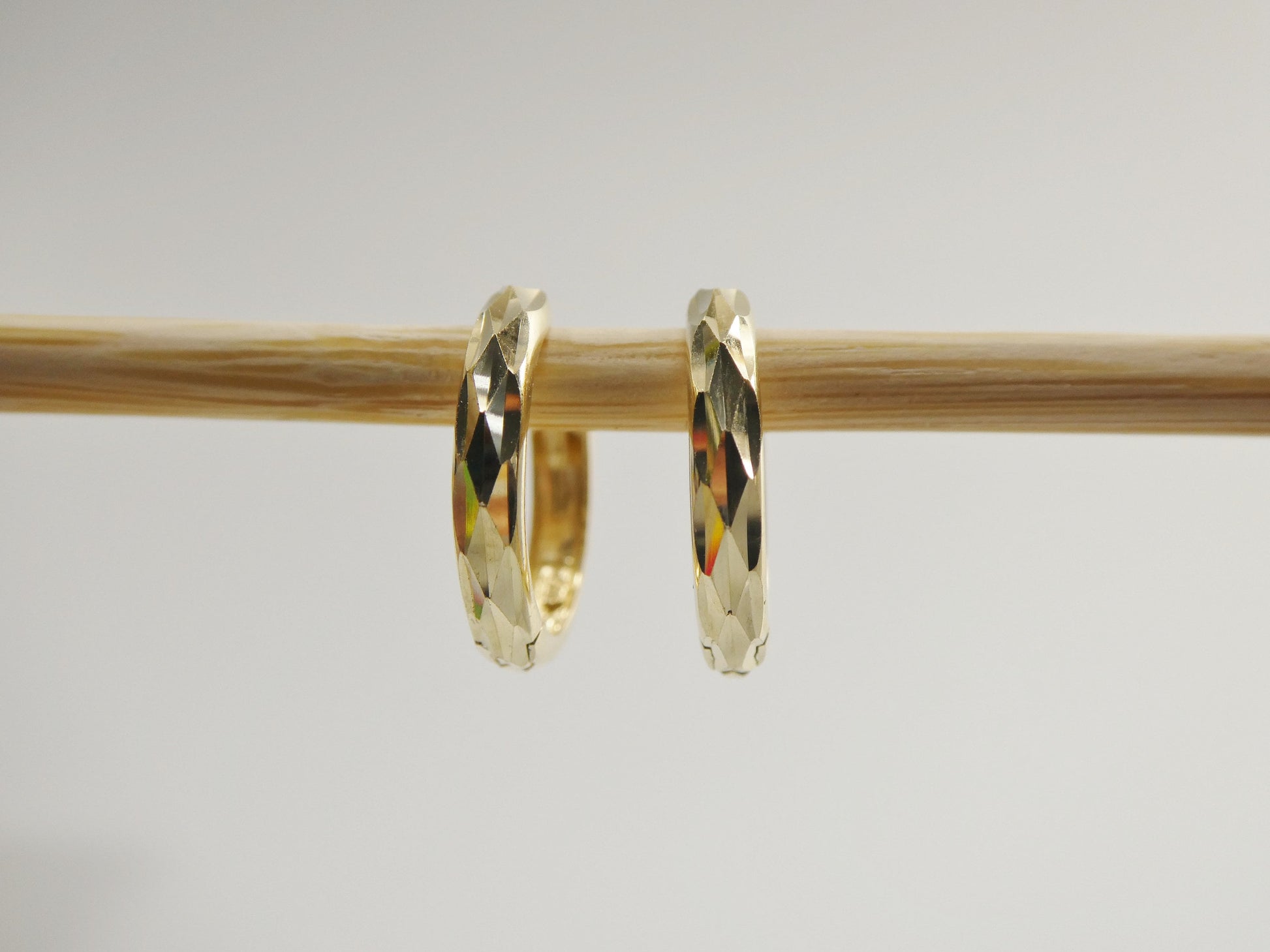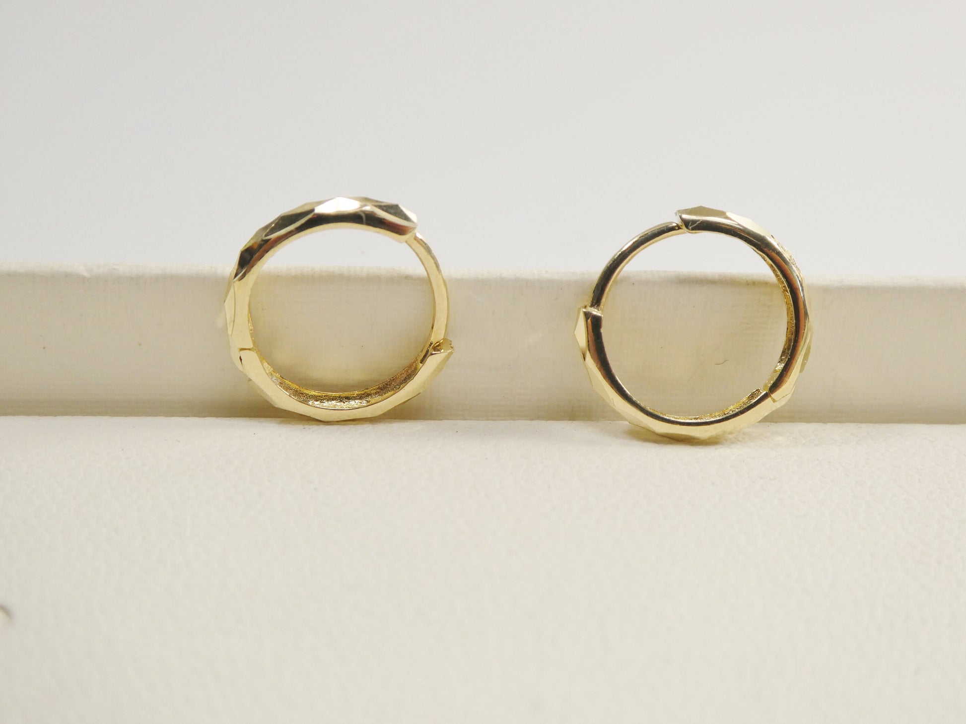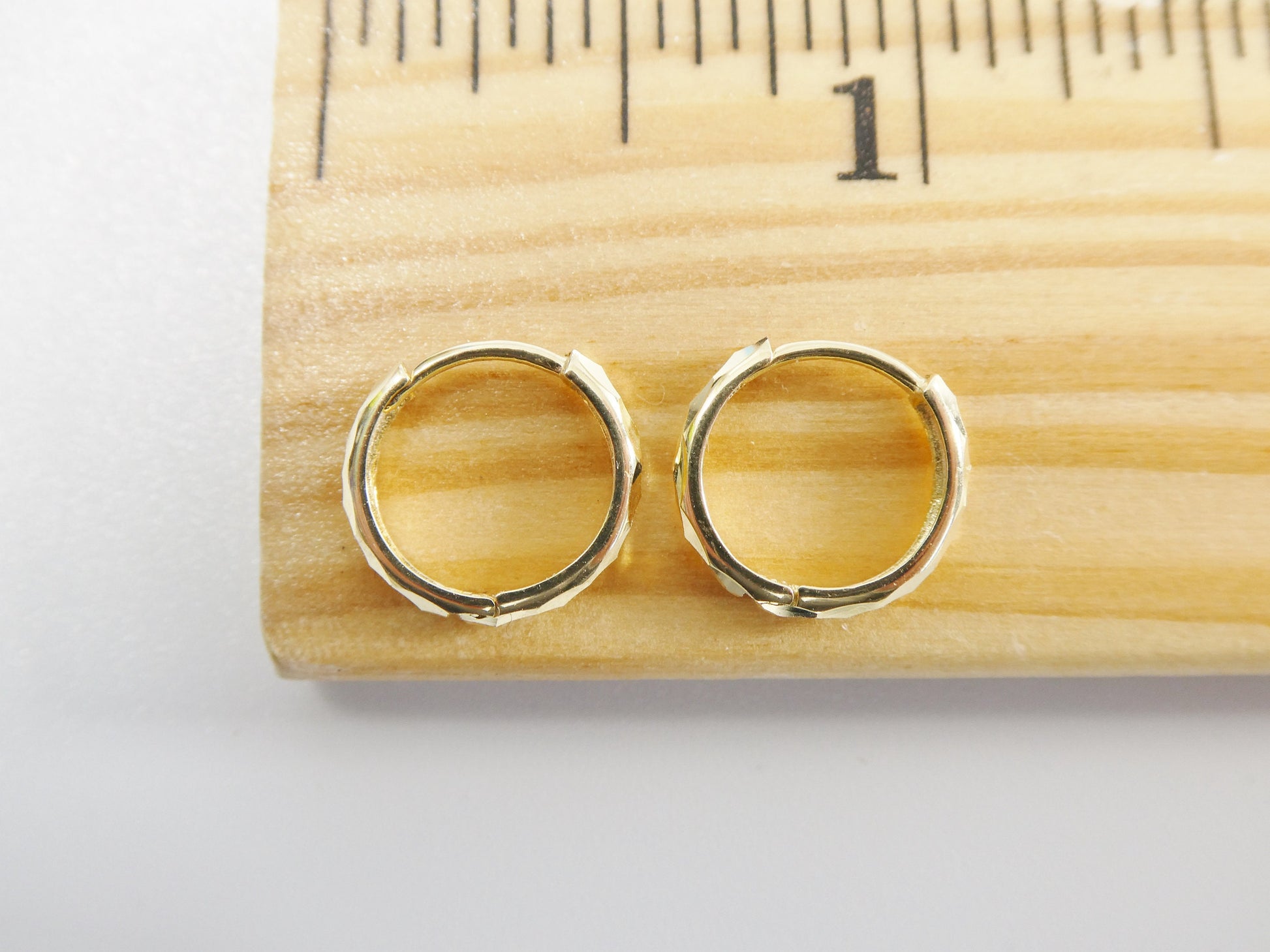 real 10k solid yellow gold 11.8mm laser cut hoop huggie earring