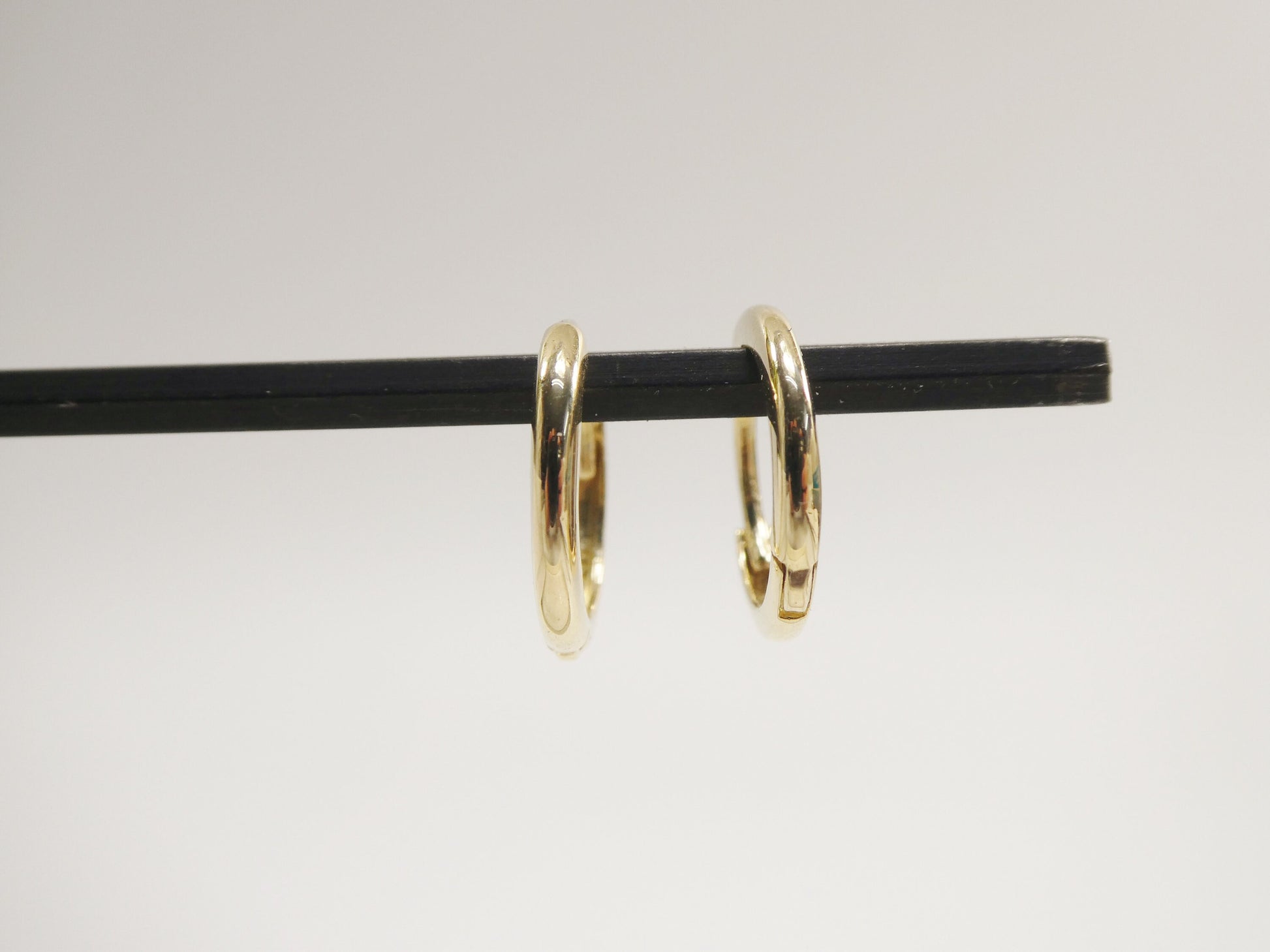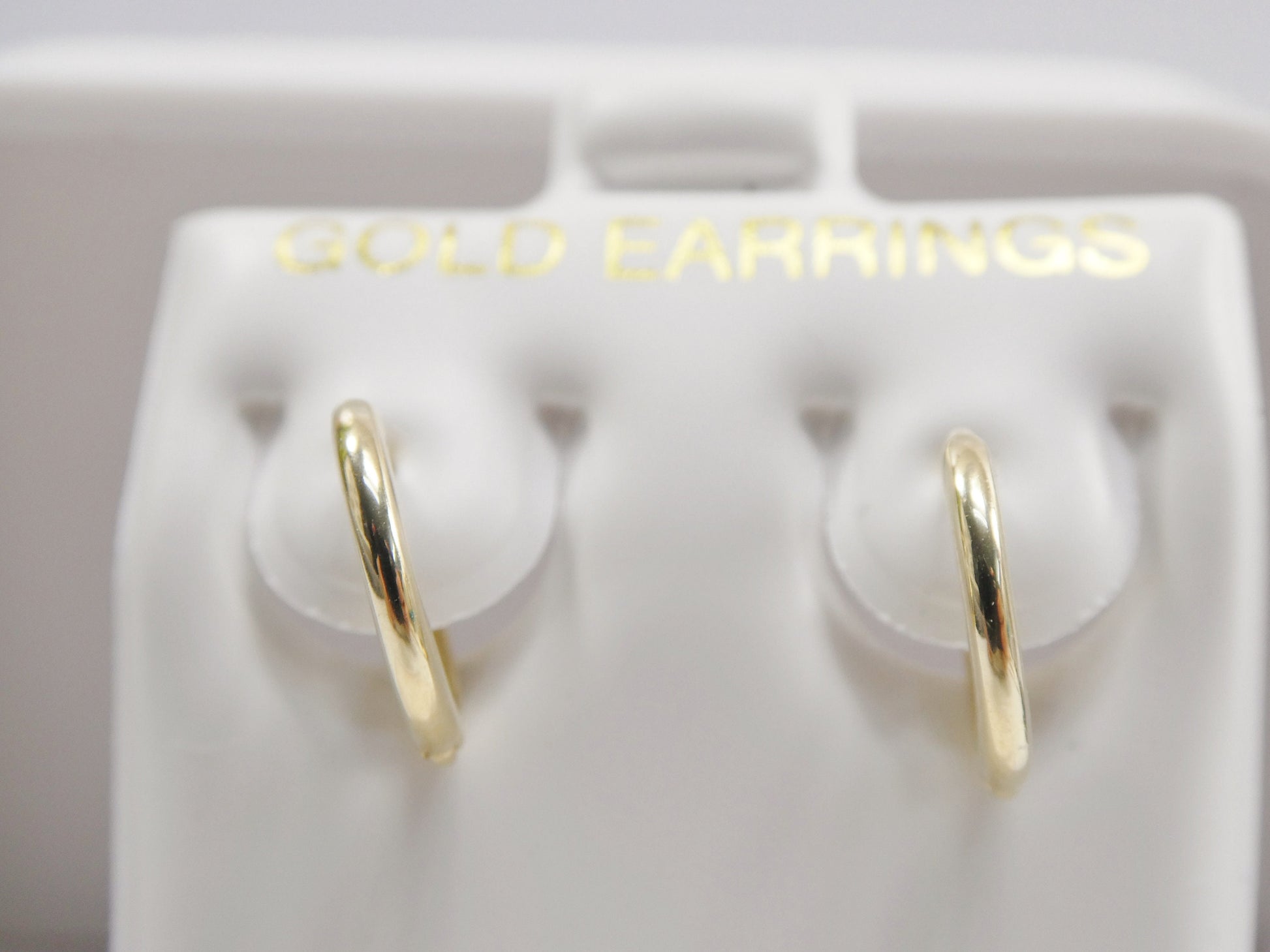 real 10k solid yellow gold 12mm high polish plain hoop huggie earring