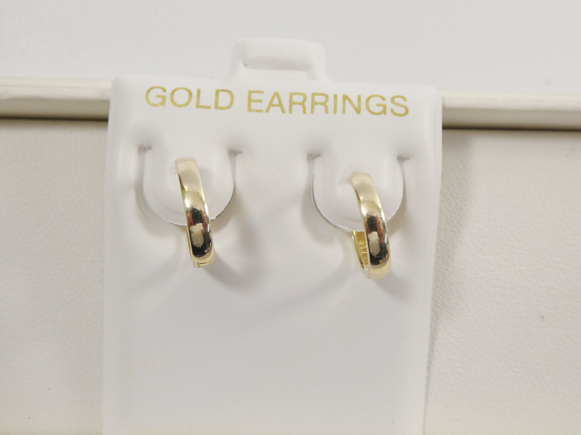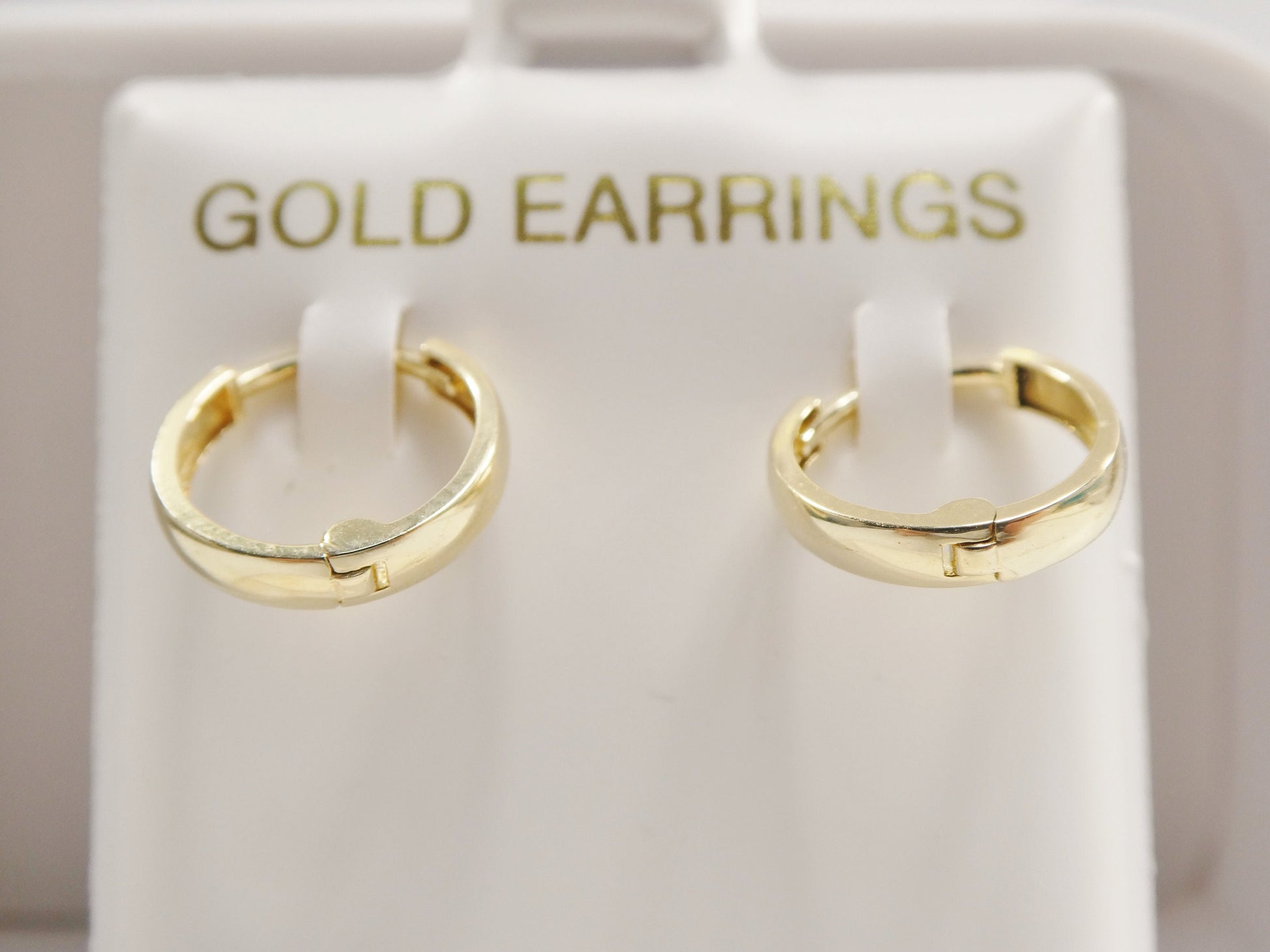 real 10k solid yellow gold 12mm high polish plain hoop huggie earrings