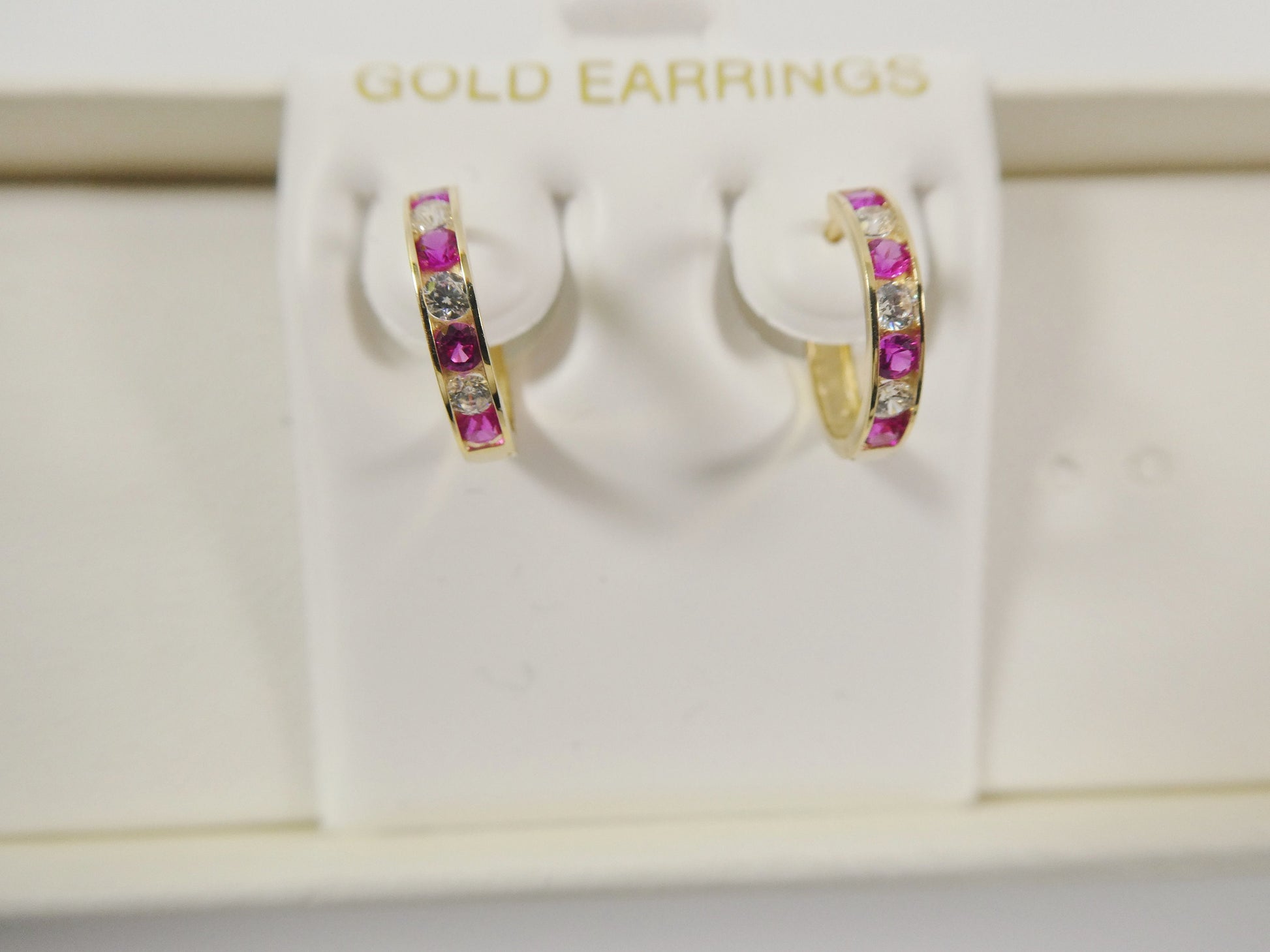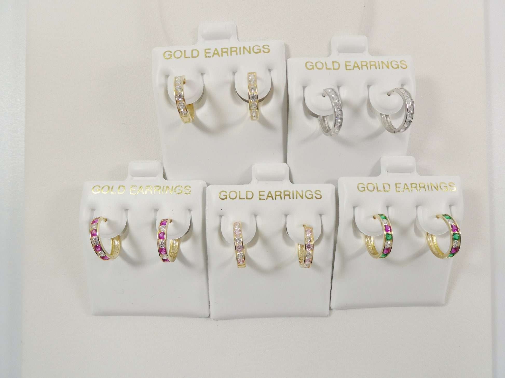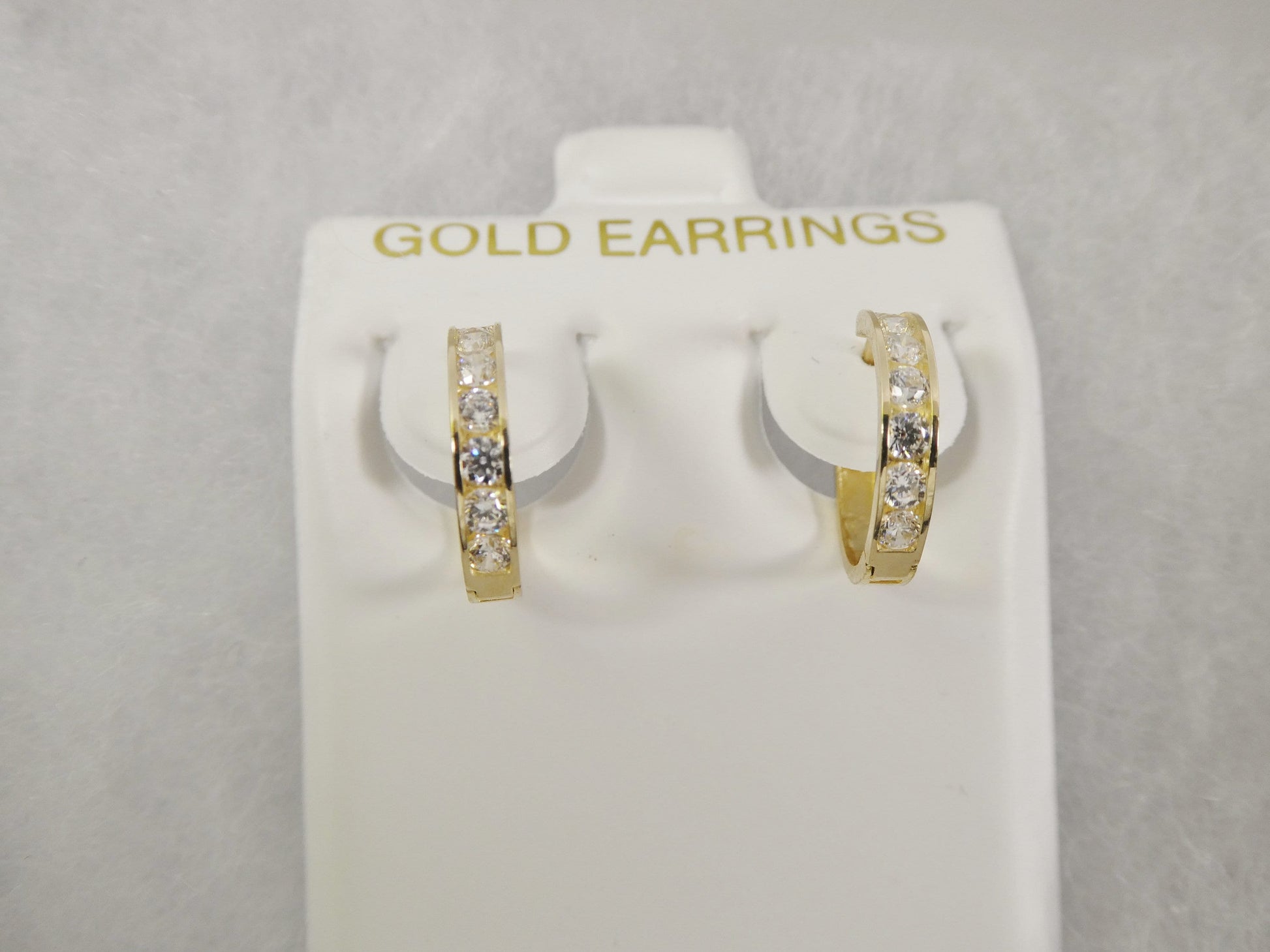 REAL 10K SOLID YELLOW AND WHITE GOLD 13MM PRONG SETTING HUGGIE HOOP EARRING COME IN DIFRENT COLOR STONE GUARANTEE REAL 10K GOLD MARK AND STAMP (NOT GOLD FILLED OR GOLD PLATED) ATTRACTIVE FINISH HIGH QUALITY HIGH POLISH GREAT FINISH WHOLESALE GRAT PRICE SHINY AAA CUBIC ZIRCONIA STONE LIGHTWEIGHT COMFORTABLE TO WEAR COME IN YELLOW AND WHITE GOLD COME IN NICE GIFT BOX