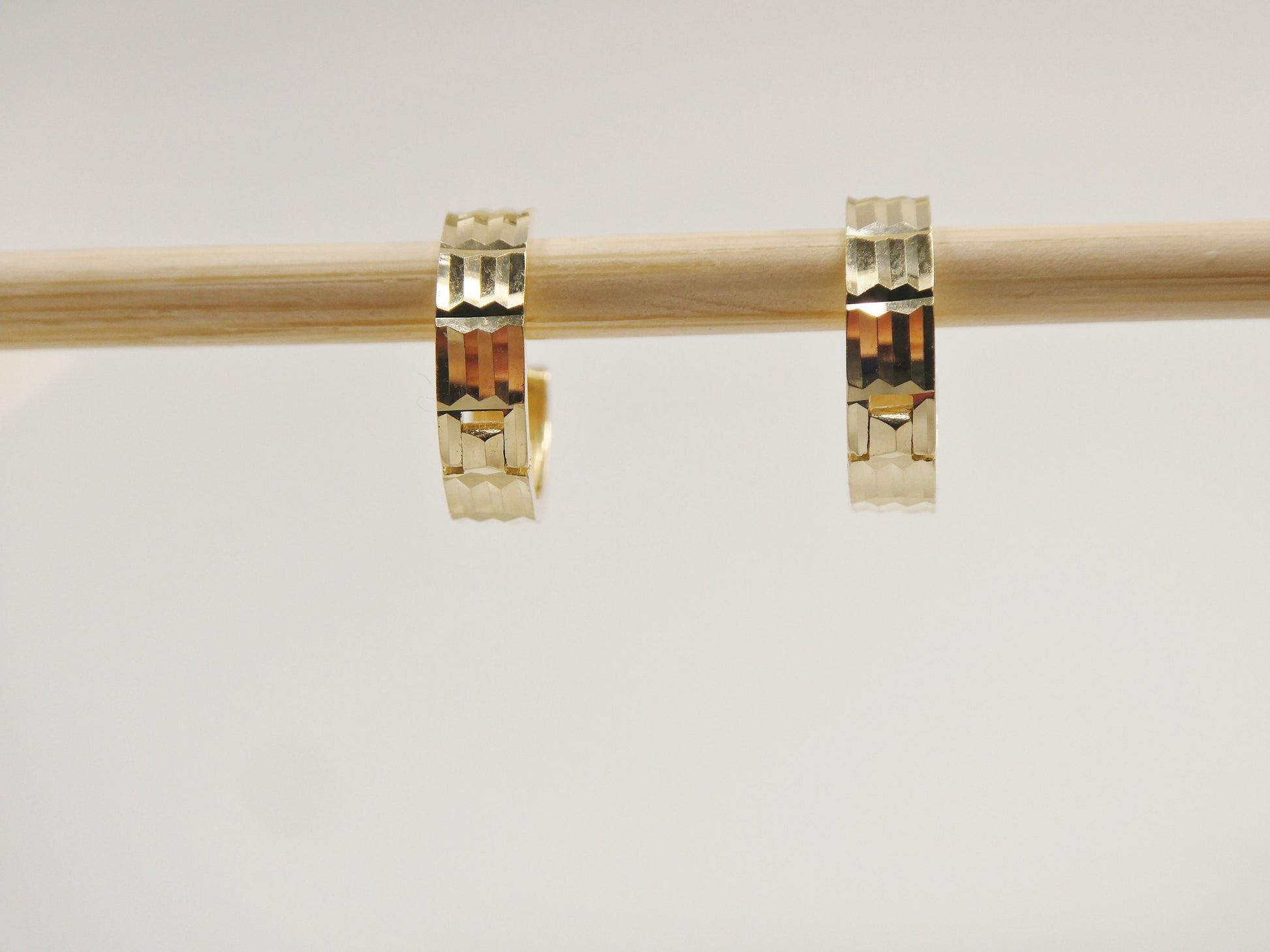 real 10k solid yellow gold 9.7mm laser cut hoop huggie earring
