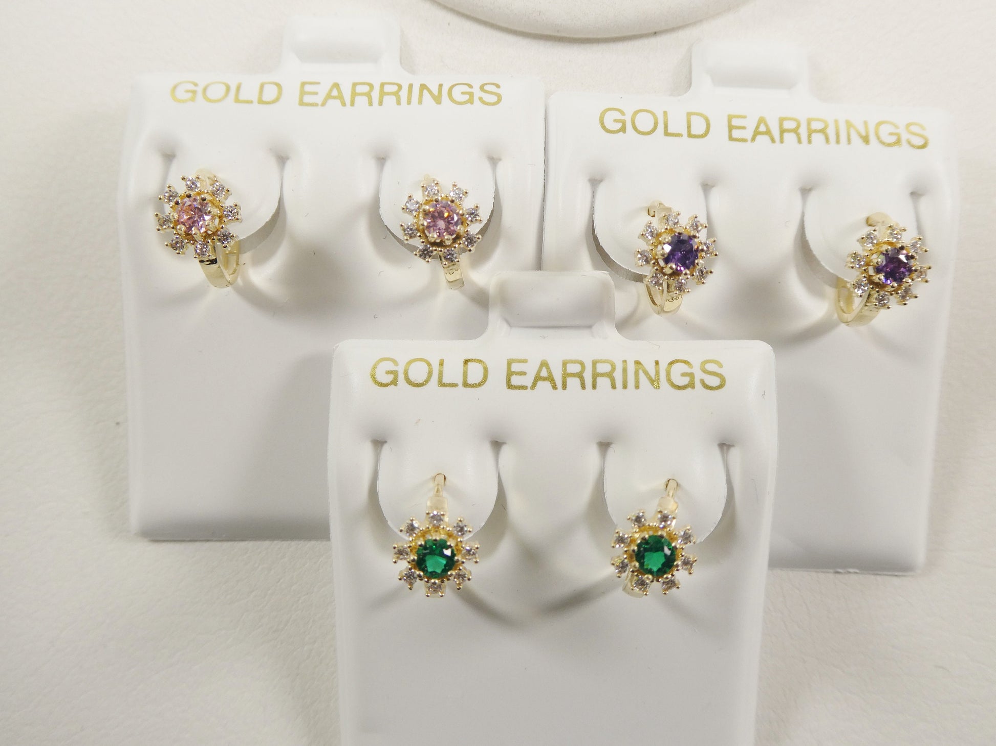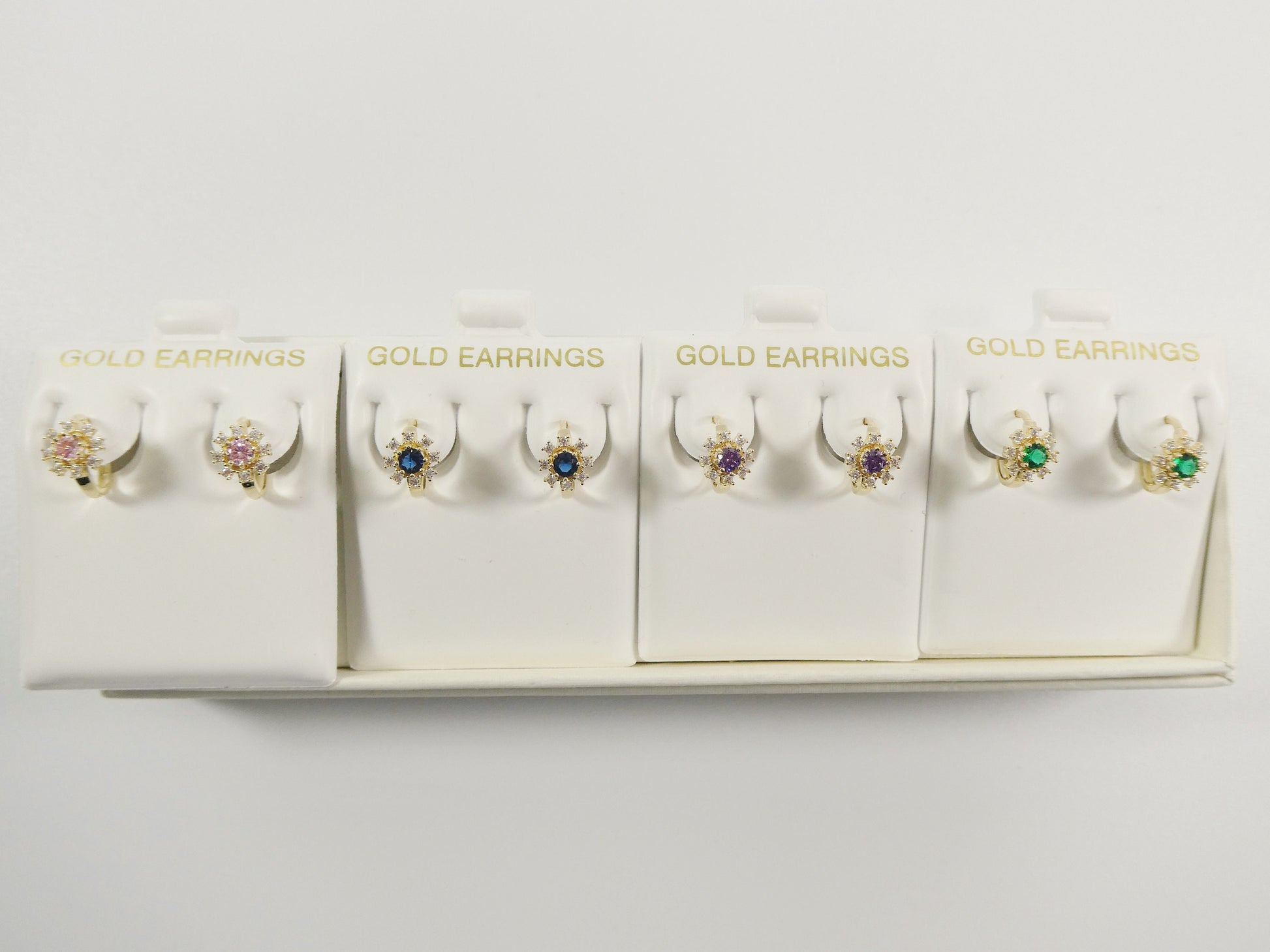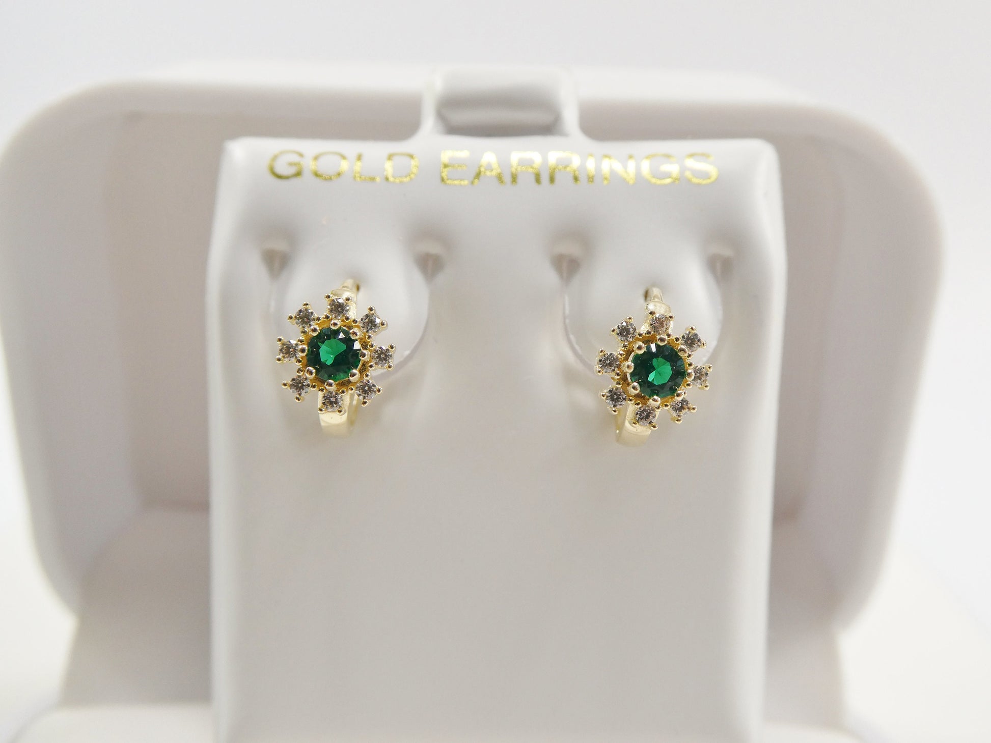 real 10k solid yellow gold birthstone color flower huggie earring