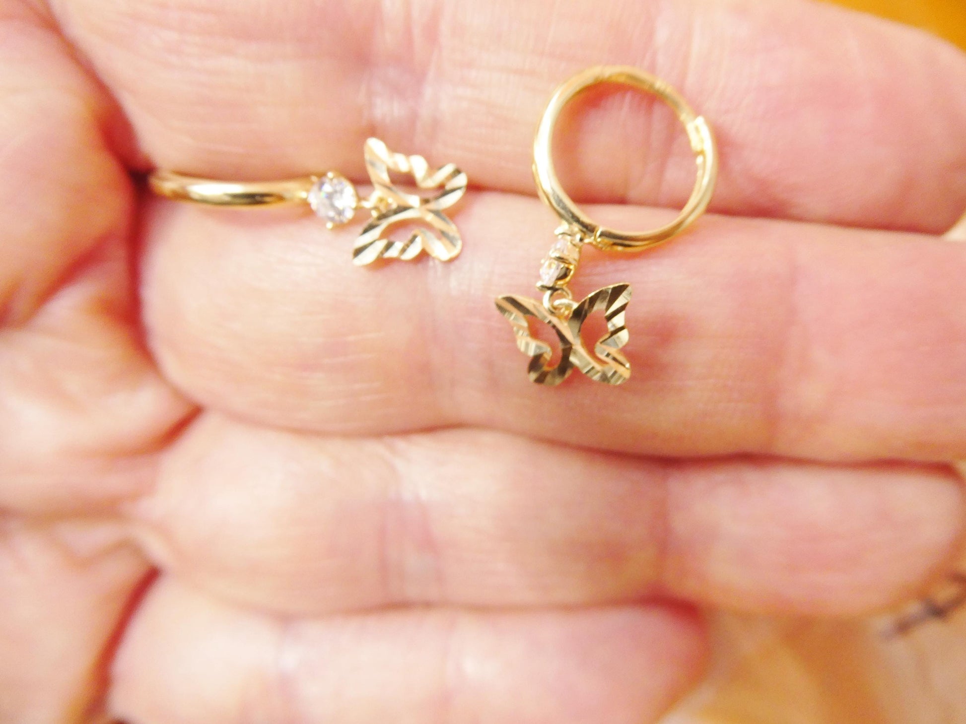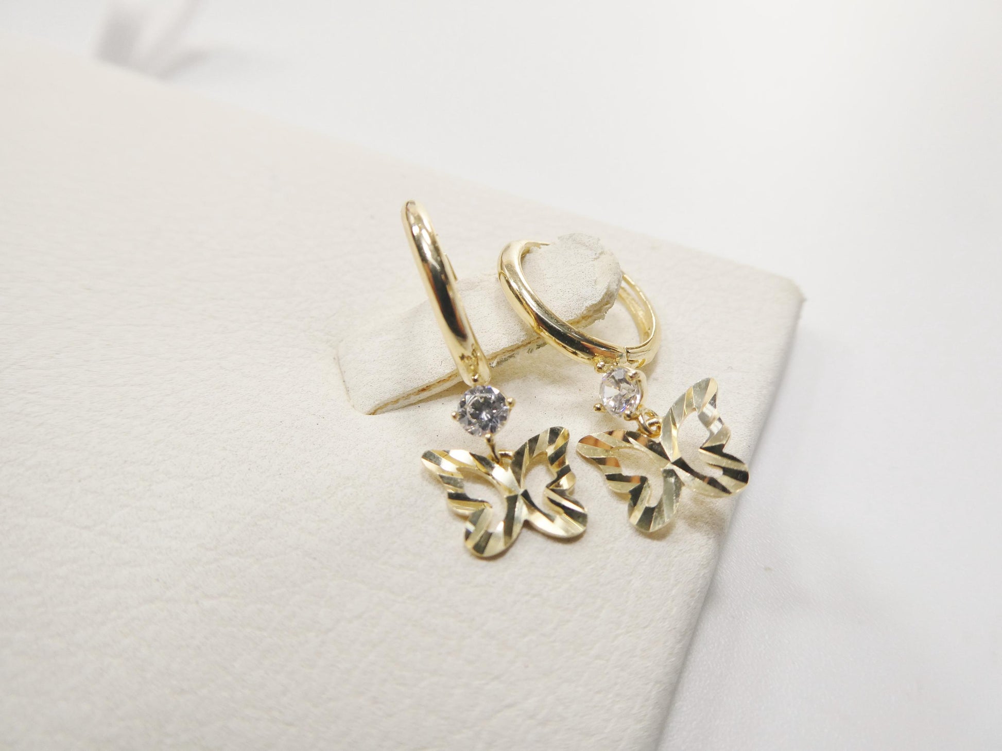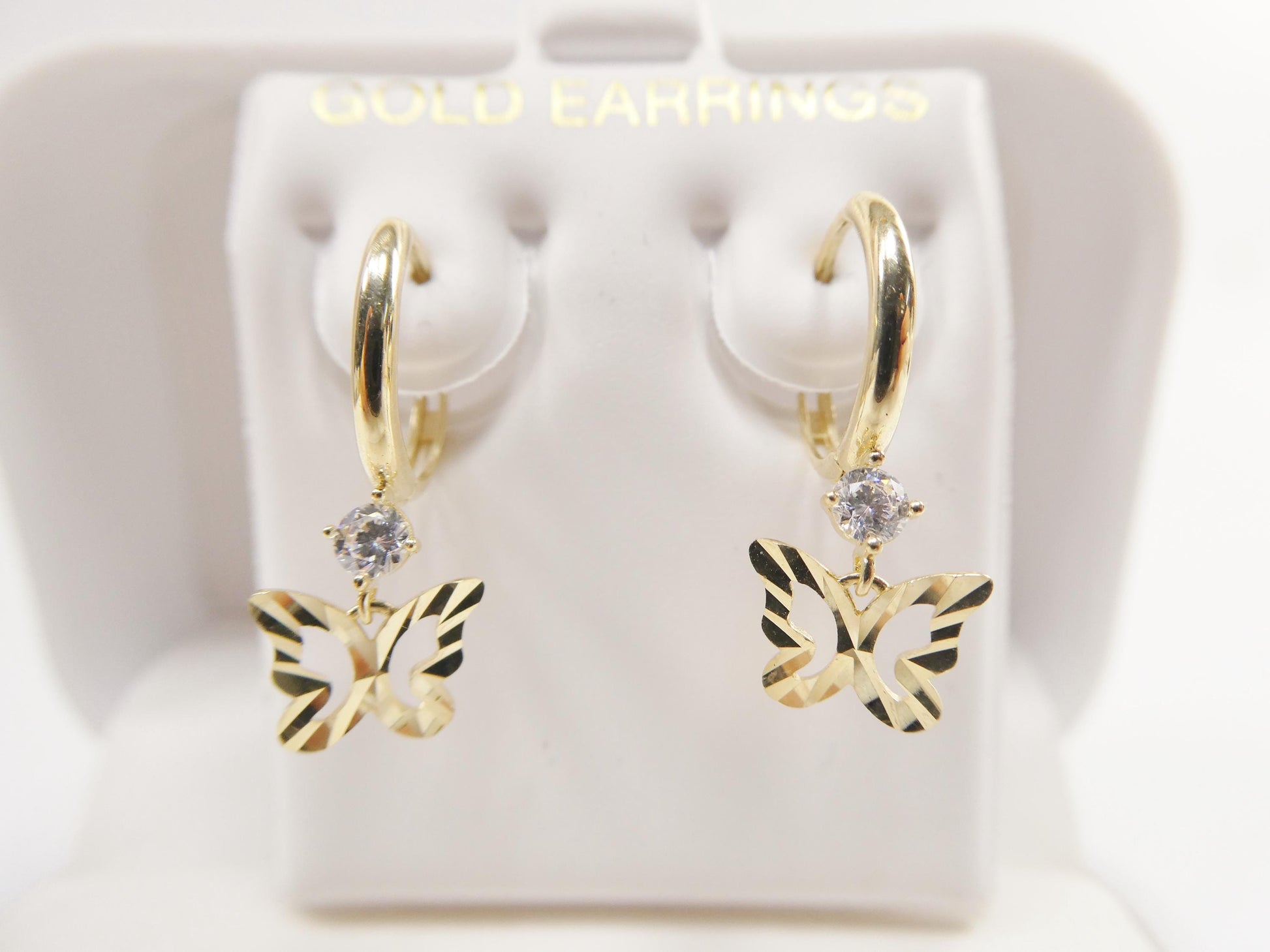 real 10k solid yellow gold butterfly drop hoop huggie earrings