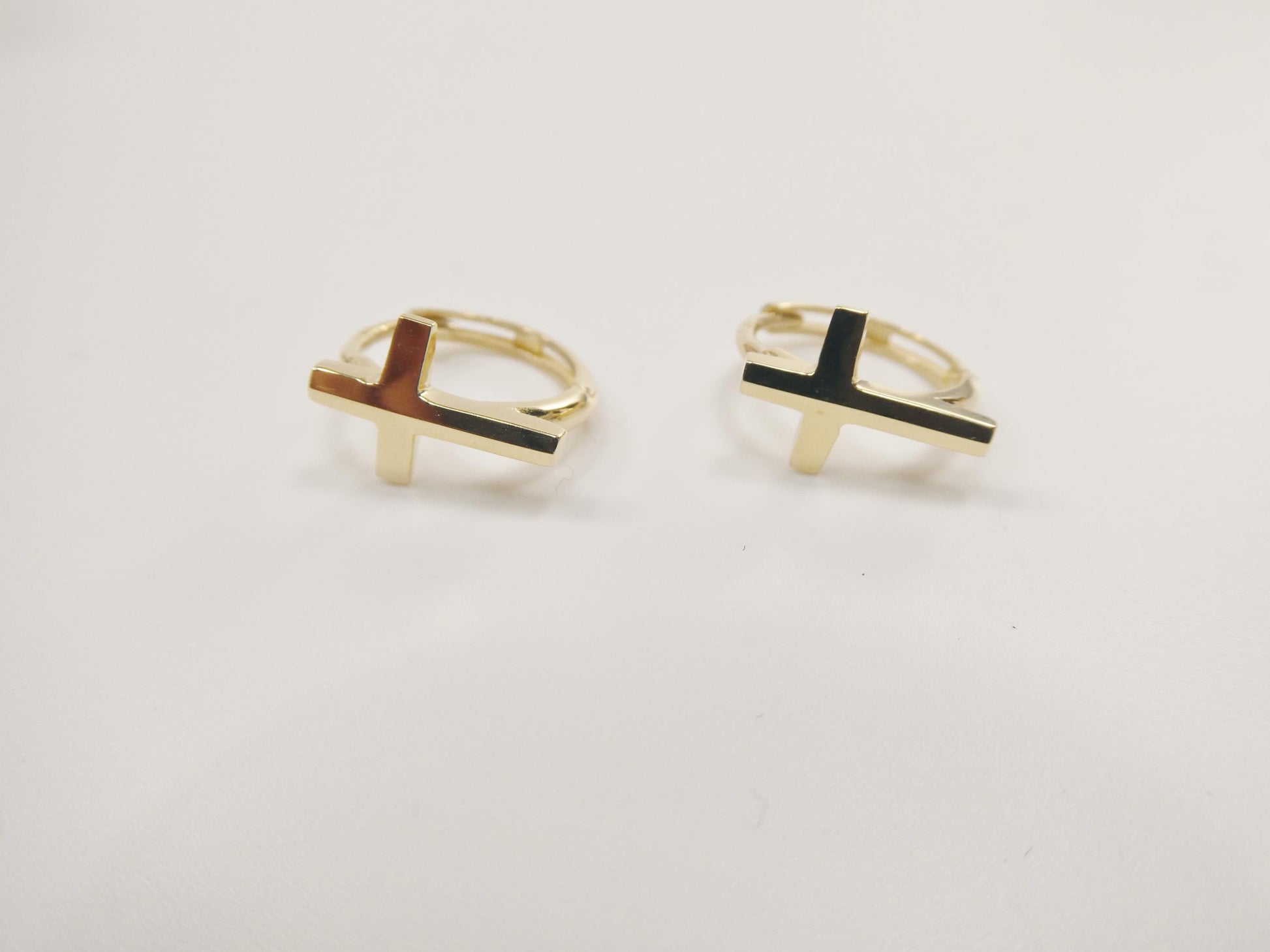 REAL 10K SOLID YELLOW GOLD CROSS HUGGIE HOOP EARRINGS HIGH QUALITY HIGH POLISH PERFECT FINISH GUARANTEE 10K GOLD MARK AND STAMP (NOT GOLD FILLED OR GOLD PLATING ) COME IN NICE GIFT BOX MAKE IT GREAT GIFT FOR ANY OCCASION
