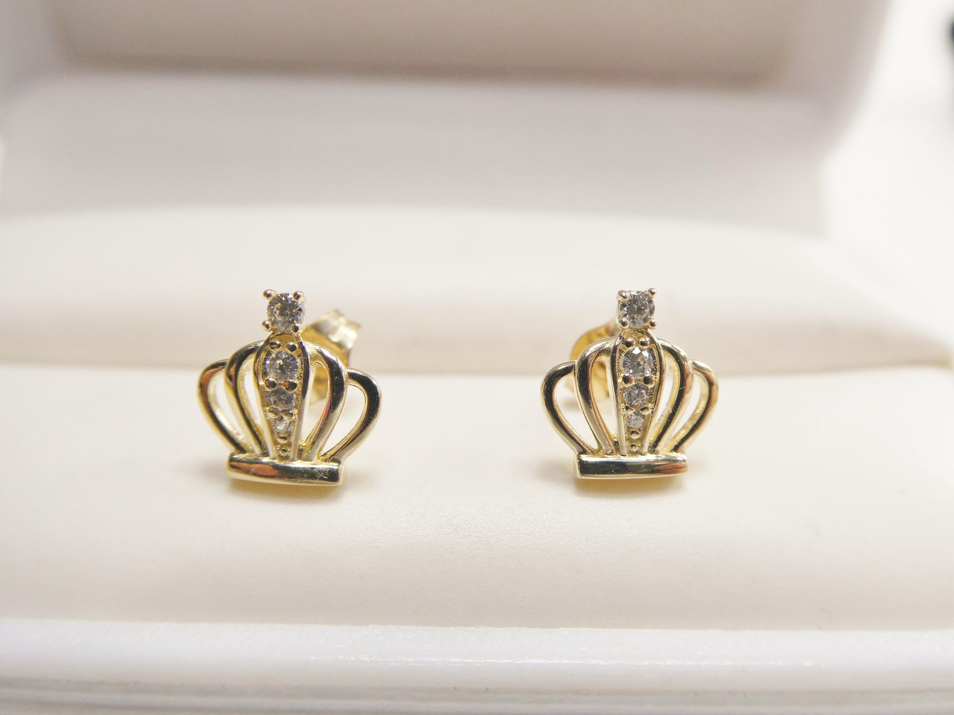 REAL 10K SOLID YELLOW GOLD DESIGN CROWN PUSH POST EARRINGS HIGH QUALITY HIGH POLISH PERFECT FINISH GUARANTEE 10K GOLD MARK AND STAMP COME WITH FREE GOLD FILLED BACKING ATTRACTIVE LOOK GREAT PRICE COME IN NICE GIFT BOX MAKE IT GREAT GIFT FOR ANY OCCASION