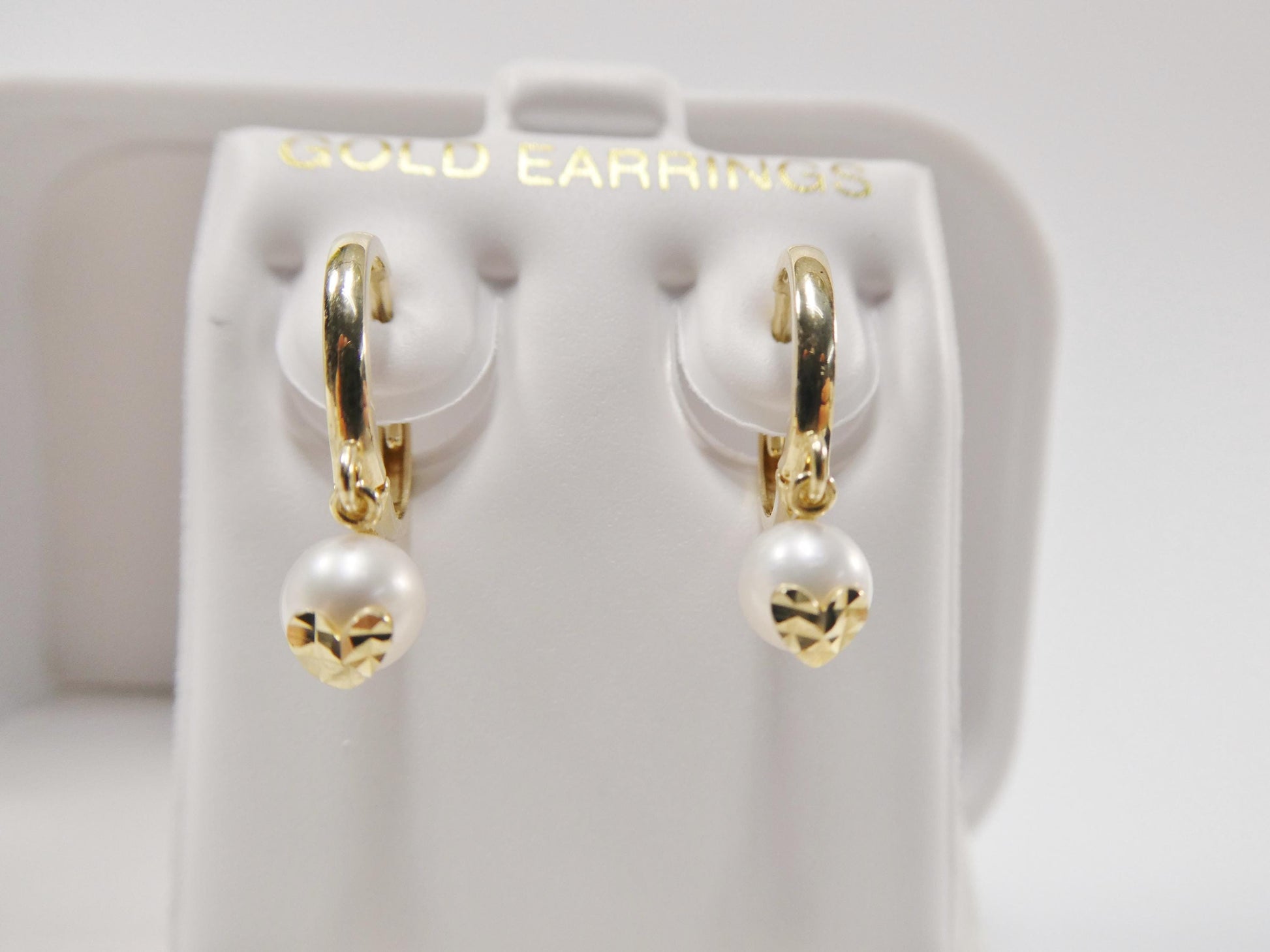 REAL 10K SOLID YELLOW GOLD ORIGINAL CULTURED FRESHWATER PEARL DANGLING SMALL HEART ON THE PEARL HUGGIE HOOP EARRING HIGH QUALITY HIGH POLISH PERFECT FINISH GUARANTEE 10K GOLD MARK AND STAMP (NOT GOLD FILLED OR GOLD PLATING ) COME IN NICE GIFT BOX MAKE IT GREAT GIFT FOR ANY OCCASION