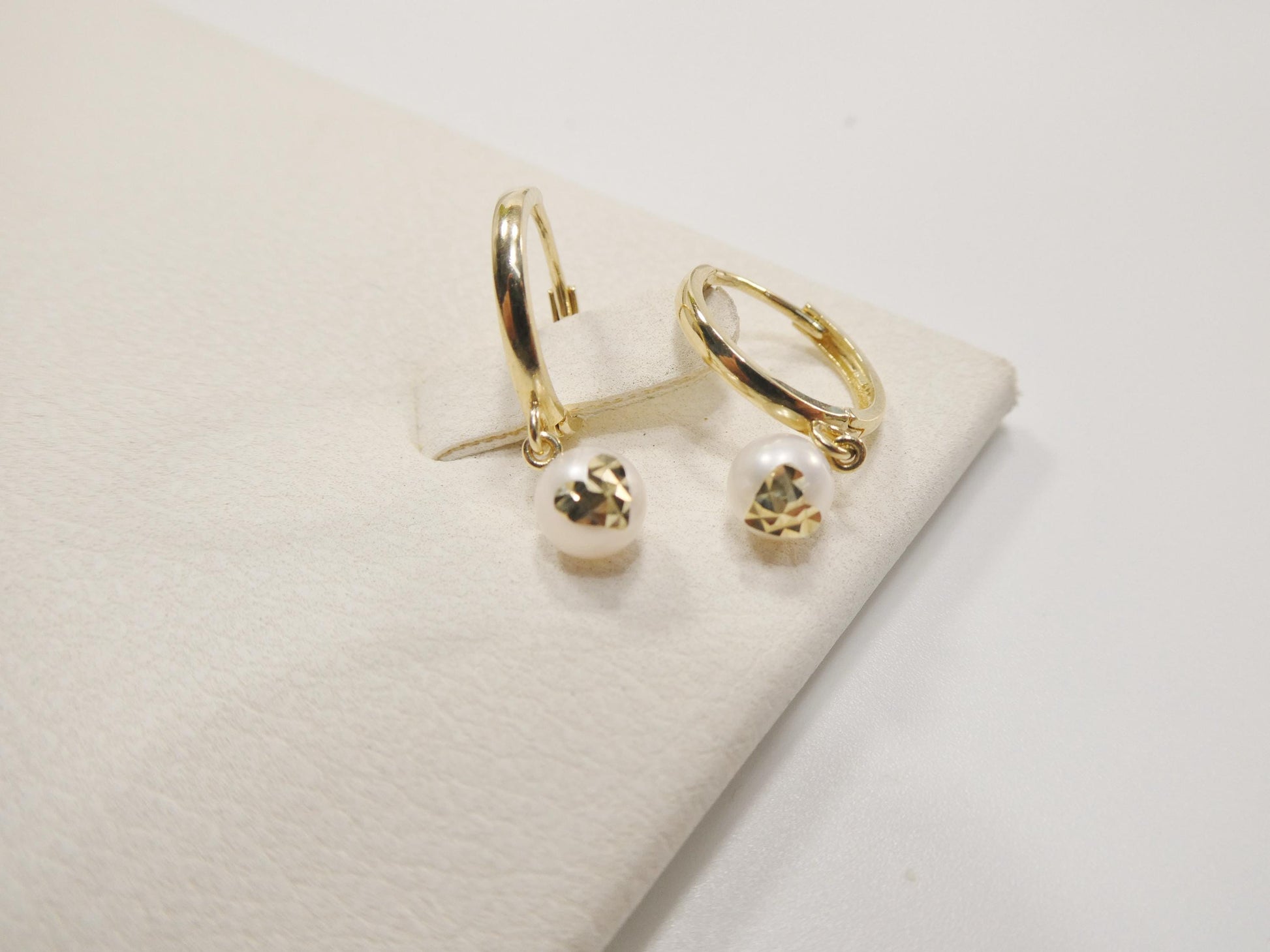 real 10k solid yellow gold cultured freshwater pearl hoop huggie earring
