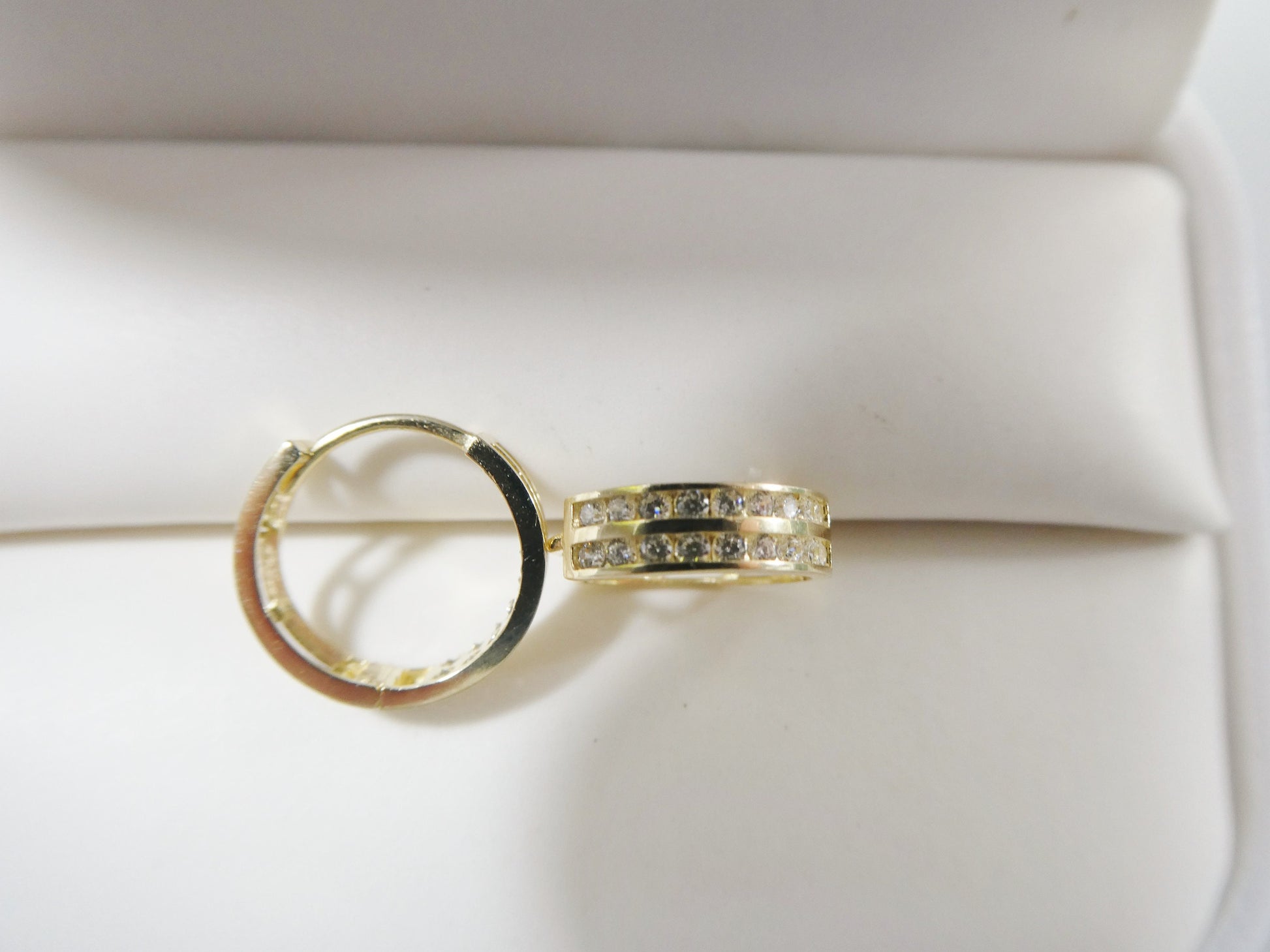 REAL 10K SOLID YELLOW GOLD TWO LINE CZ AAA SHINY STONE EARRING CARTILAGE DAITH SUPER POLISH PLAIN HUGGIE HOOP EARRING HIGH QUALITY HIGH POLISH PERFECT FINISH GUARANTEE 10K GOLD MARK AND STAMP (NOT GOLD FILLED OR GOLD PLATING ) COME IN NICE GIFT BOX MAKE IT GREAT GIFT FOR ANY OCCASION