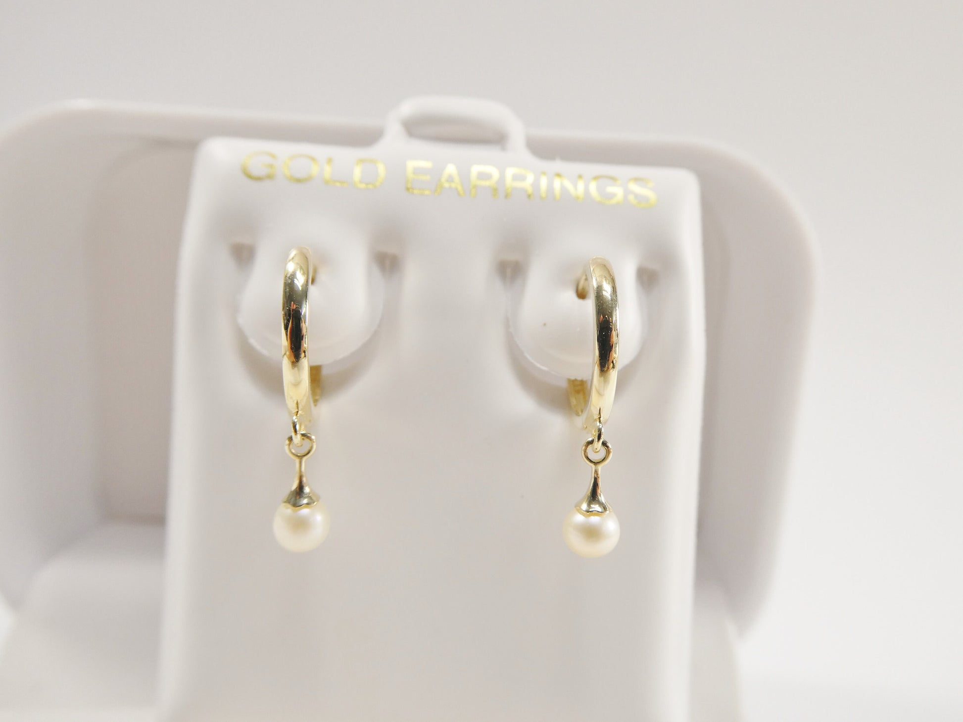 REAL 10K SOLID YELLOW GOLD ORIGINAL CULTURED FRESHWATER PEARL DANGLING PLAIN HUGGIE HOOP EARRINGS HIGH QUALITY HIGH POLISH PERFECT FINISH GUARANTEE REAL 10K GOLD MARK AND STAMP (NOT GOLD FILLED OR GOLD PLATING ) COME IN NICE GIFT BOX MAKE IT GREAT GIFT FOR ANY OCCASION