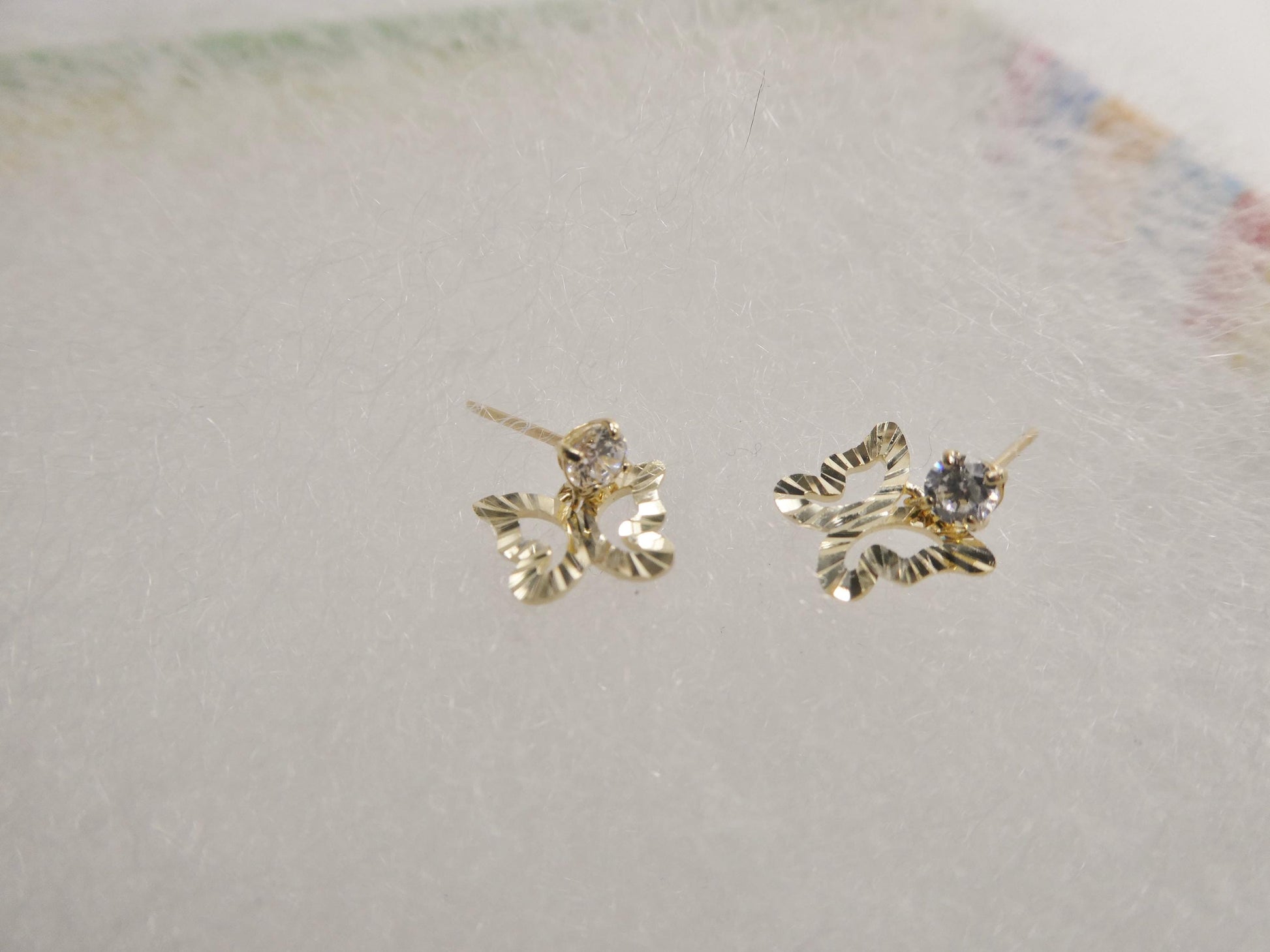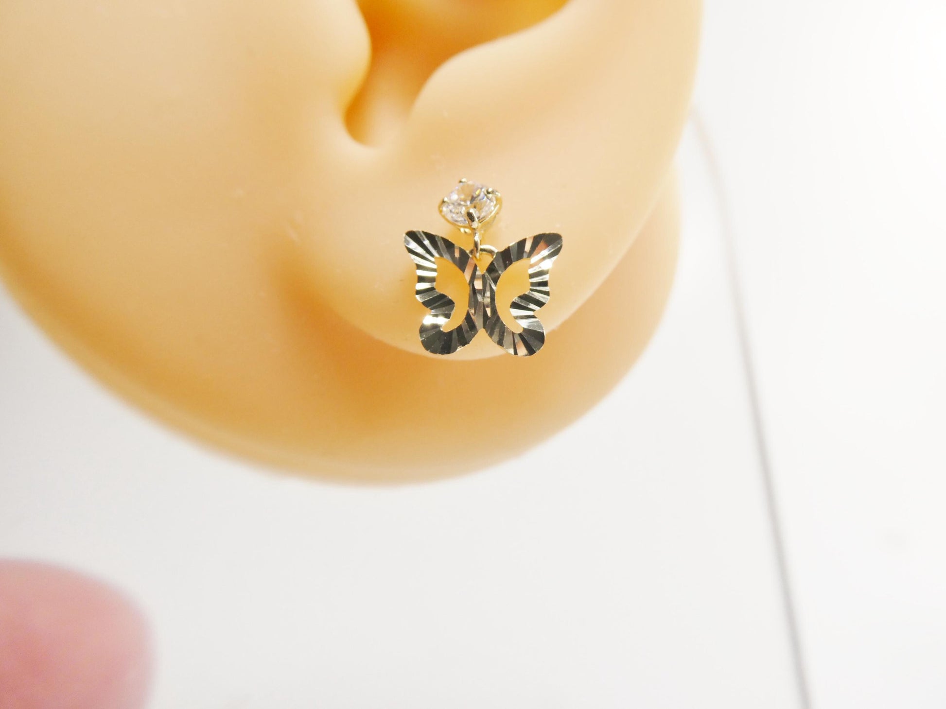 real 10k solid yellow gold design butterfly dangling push post earrings