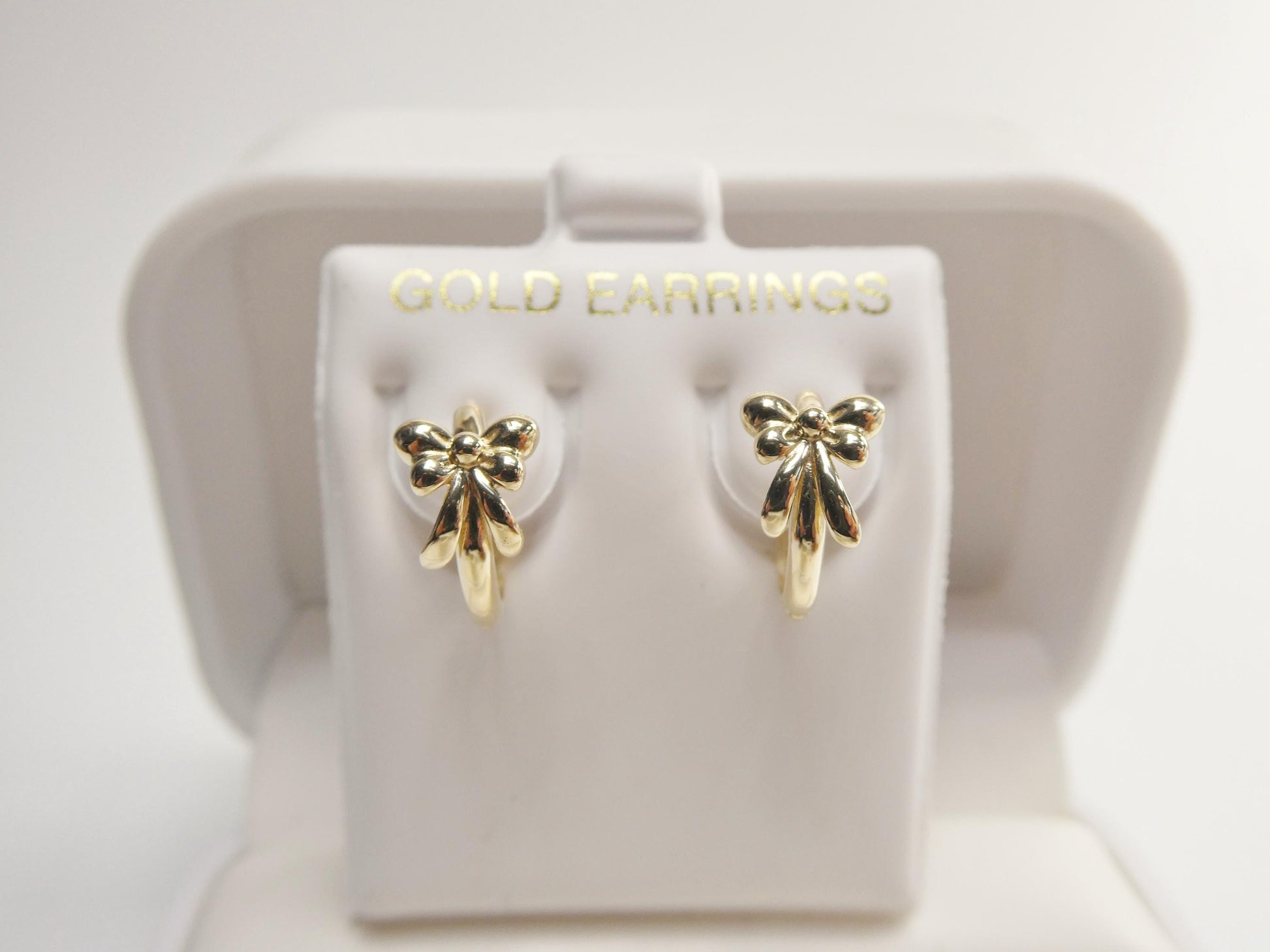 REAL 10K SOLID YELLOW GOLD DESIGNER BOW FLORAL HUGGIE HOOP EARRINGS HIGH QUALITY HIGH POLISH PERFECT FINISH GUARANTEE 10K GOLD MARK AND STAMP (NOT GOLD FILLED OR GOLD PLATING ) COME IN NICE GIFT BOX MAKE IT GREAT GIFT FOR ANY OCCASION
