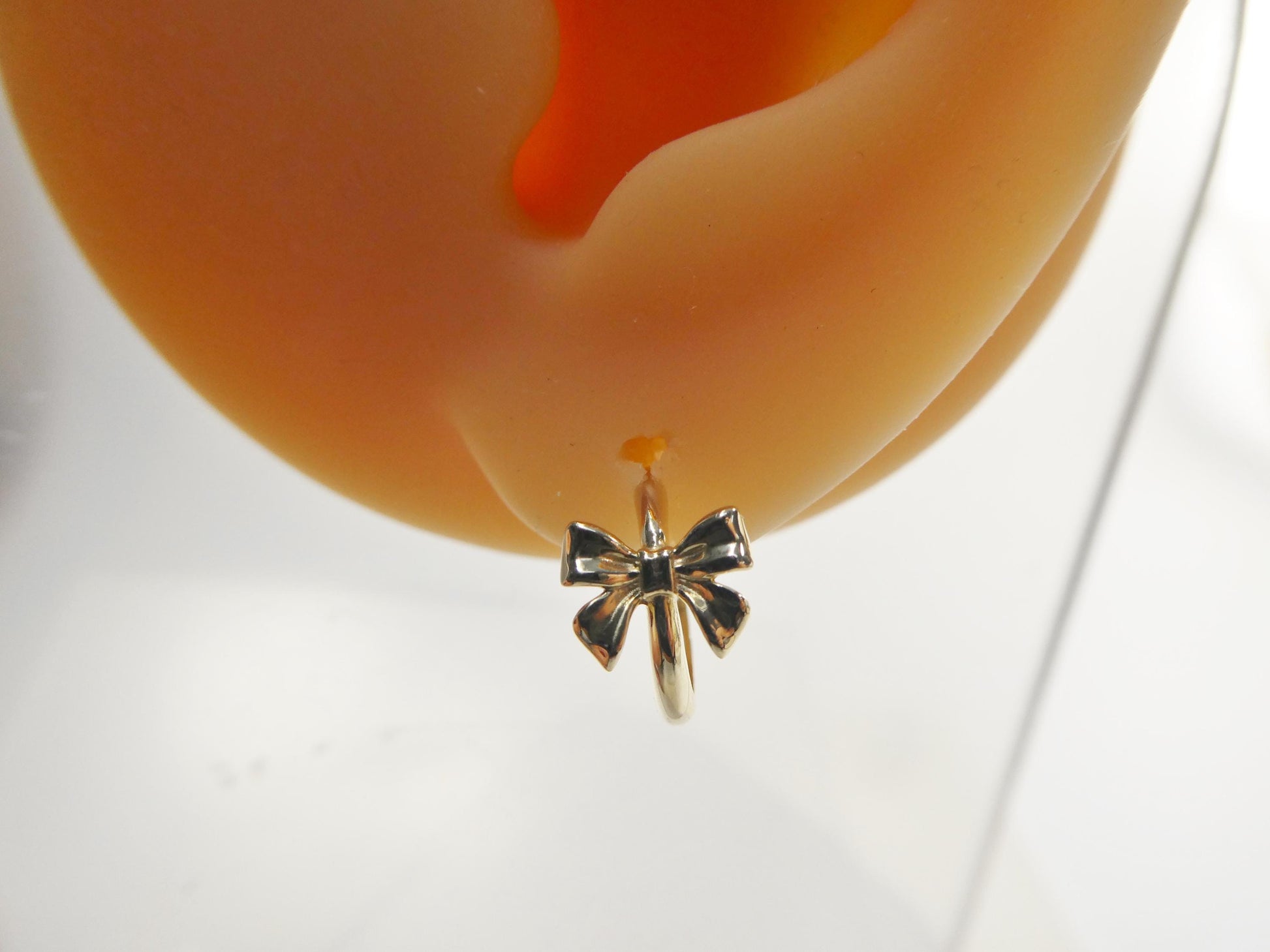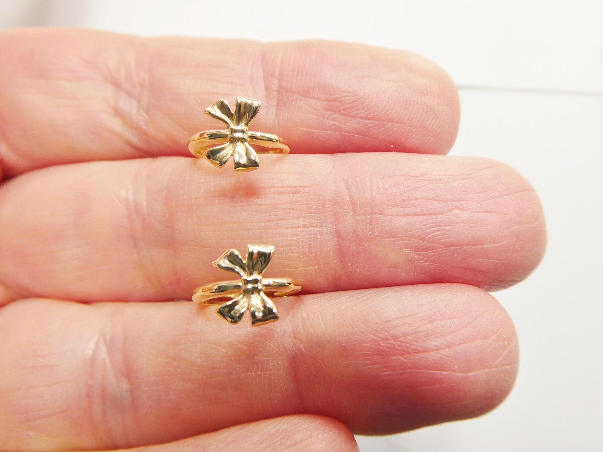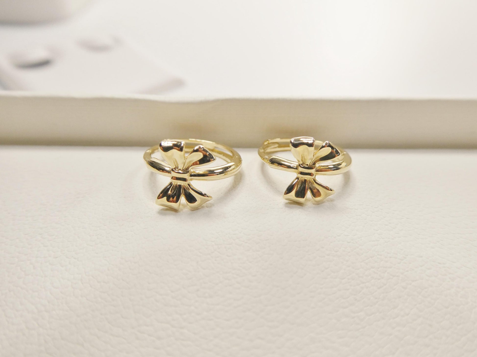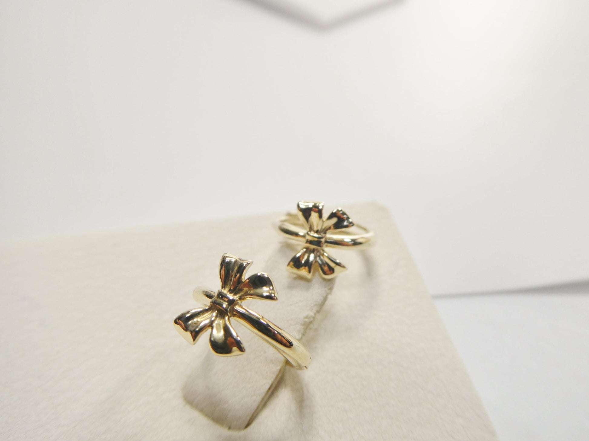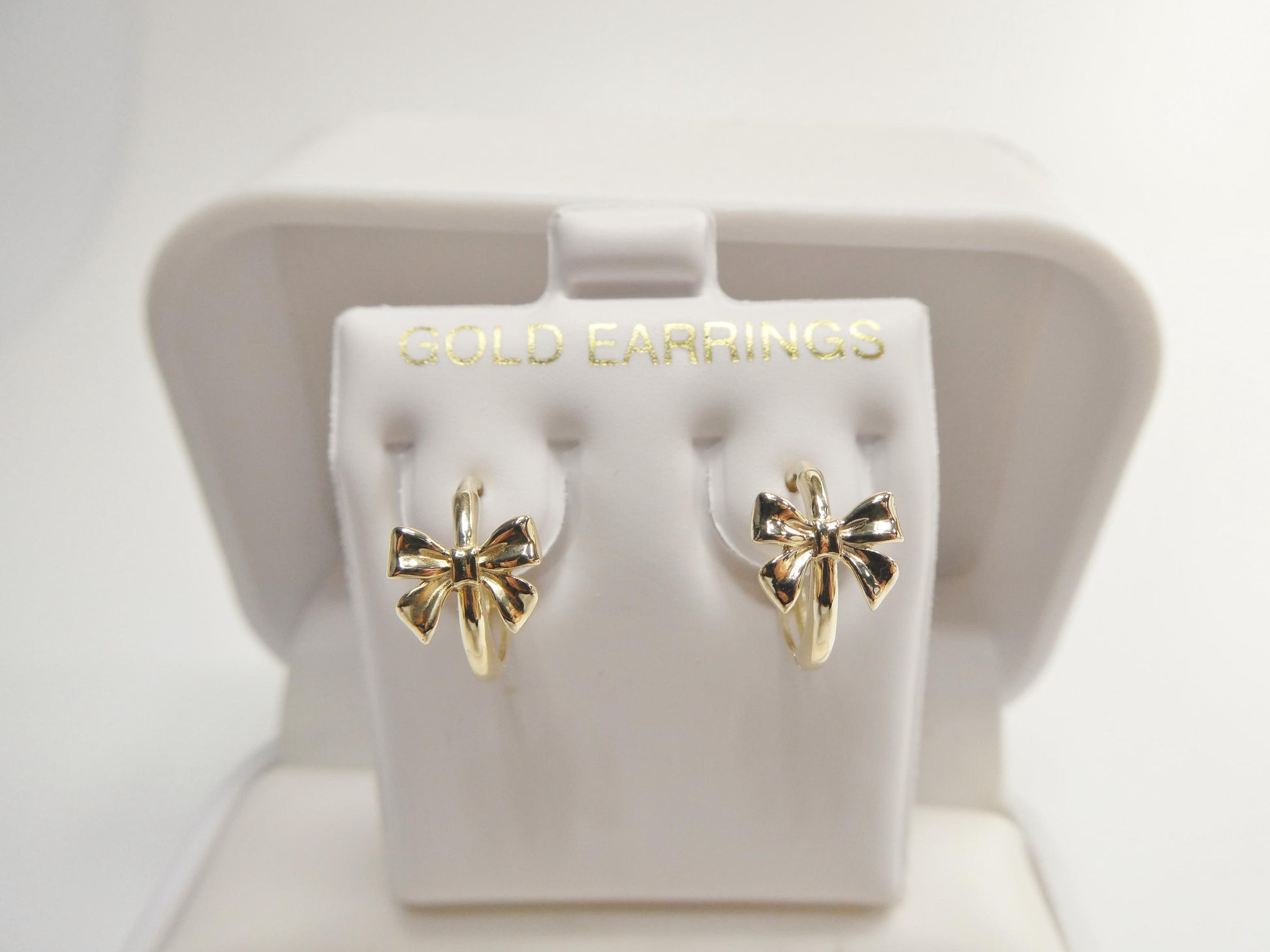 real 10k solid yellow gold designer bow hoop huggie earrings