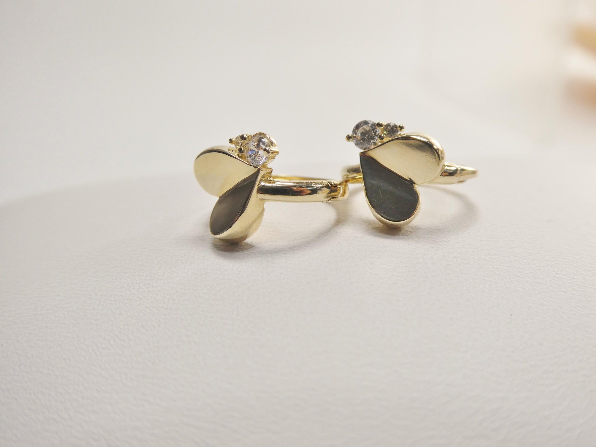 real 10k solid yellow gold designer heart hoop huggie earrings