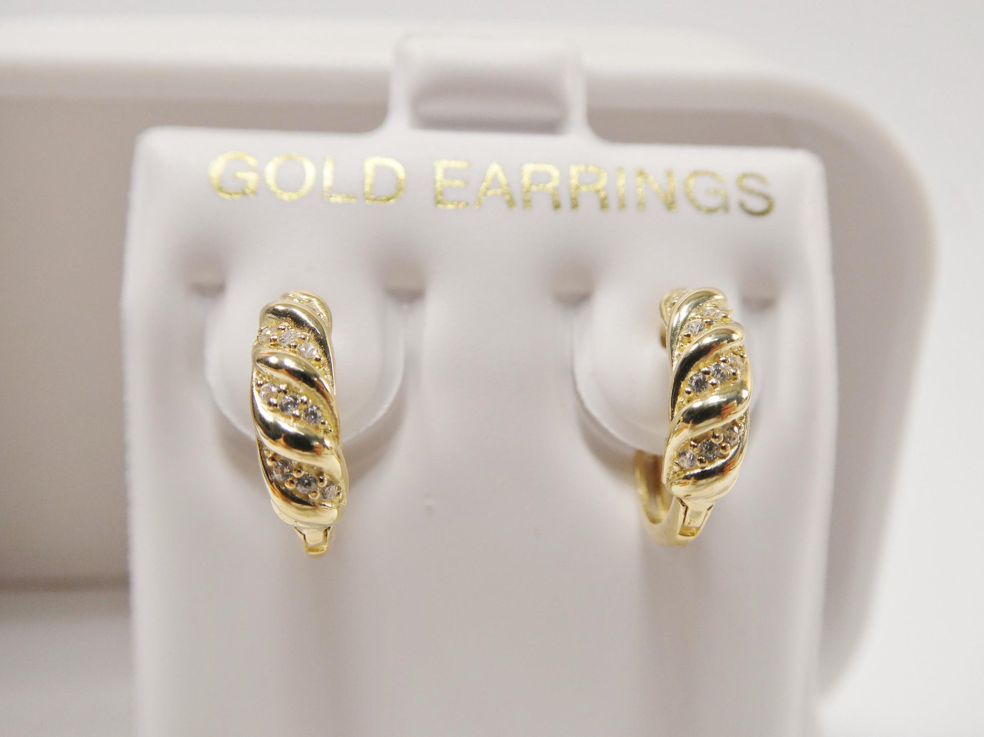 REAL 10K SOLID YELLOW GOLD DESIGNER HUGGIE HOOP EARRINGS SHINY CUBIZ ZIRCONIA STONE MICRO FAVE SETTING HIGH QUALITY HIGH POLISH PERFECT FINISH GUARANTEE 10K GOLD MARK AND STAMP (NOT GOLD FILLED OR GOLD PLATING ) COME IN NICE GIFT BOX MAKE IT GREAT GIFT FOR ANY OCCASION