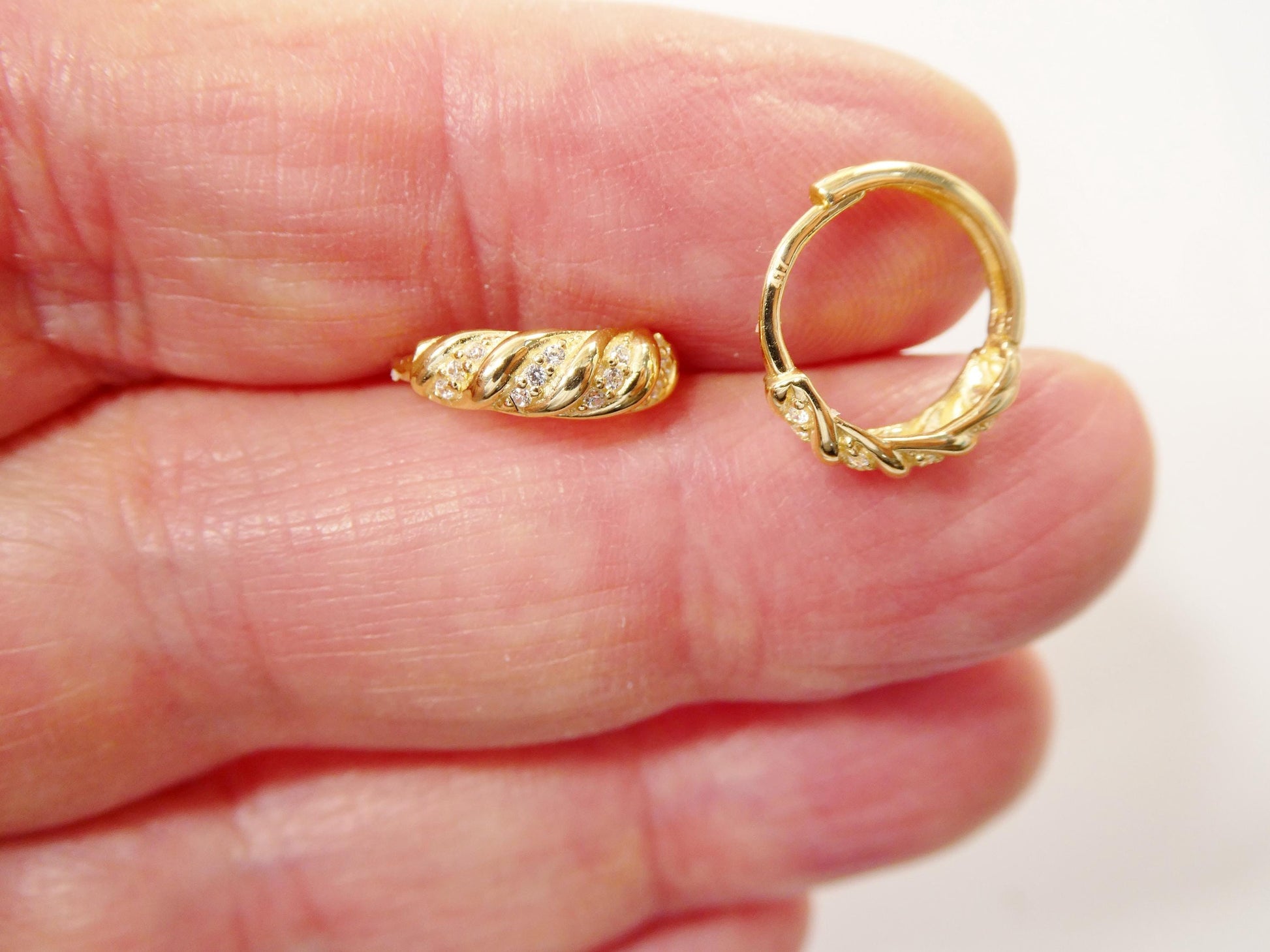 real 10k solid yellow gold designer hoop huggie earrings