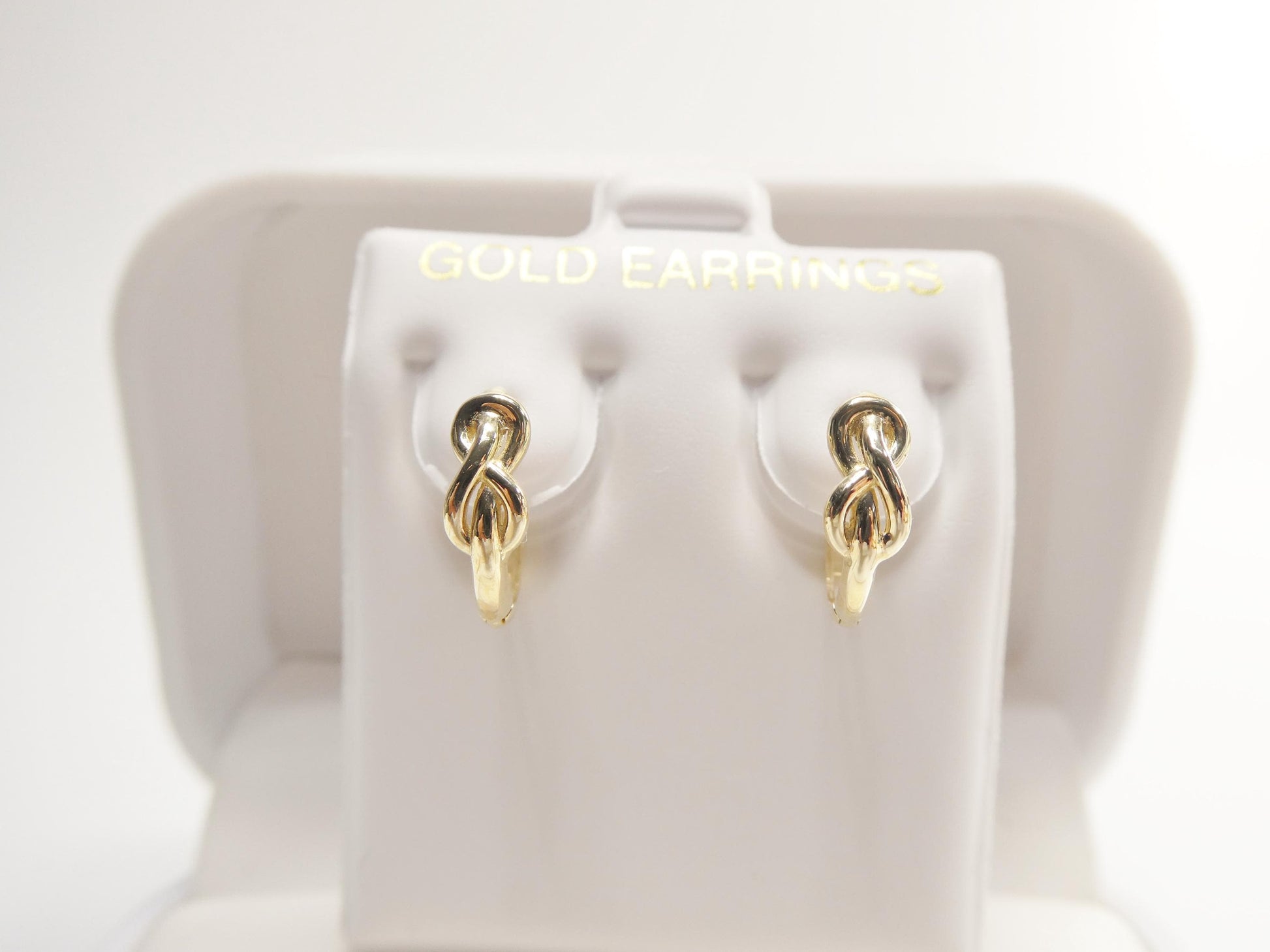 real 10k solid yellow gold designer knot hoop huggie earrings