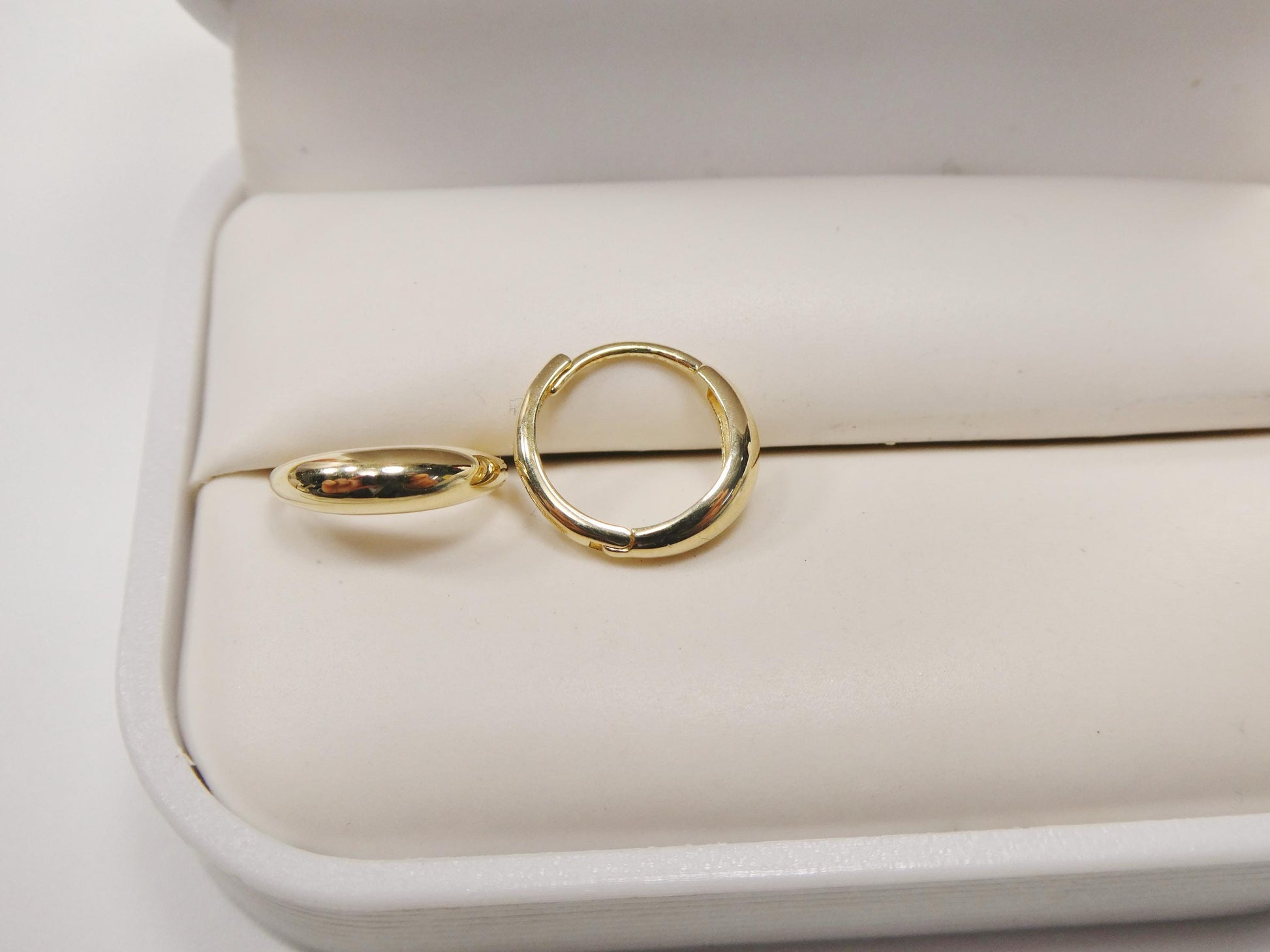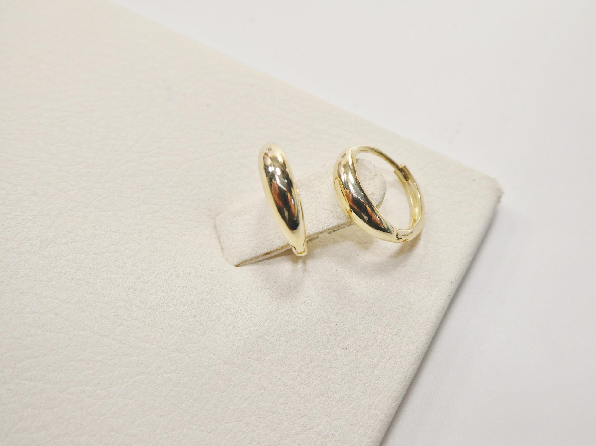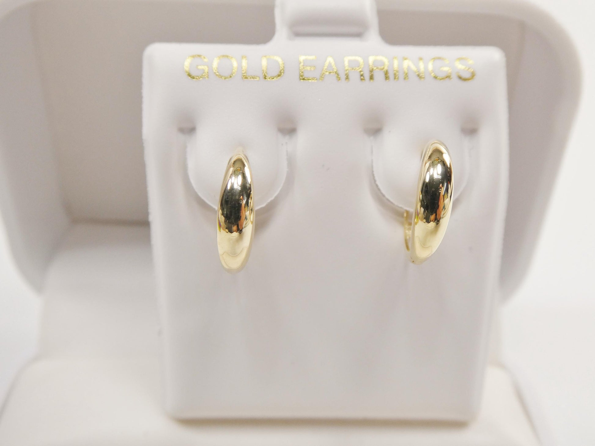 real 10k solid yellow gold designer polish hoop huggie earrings
