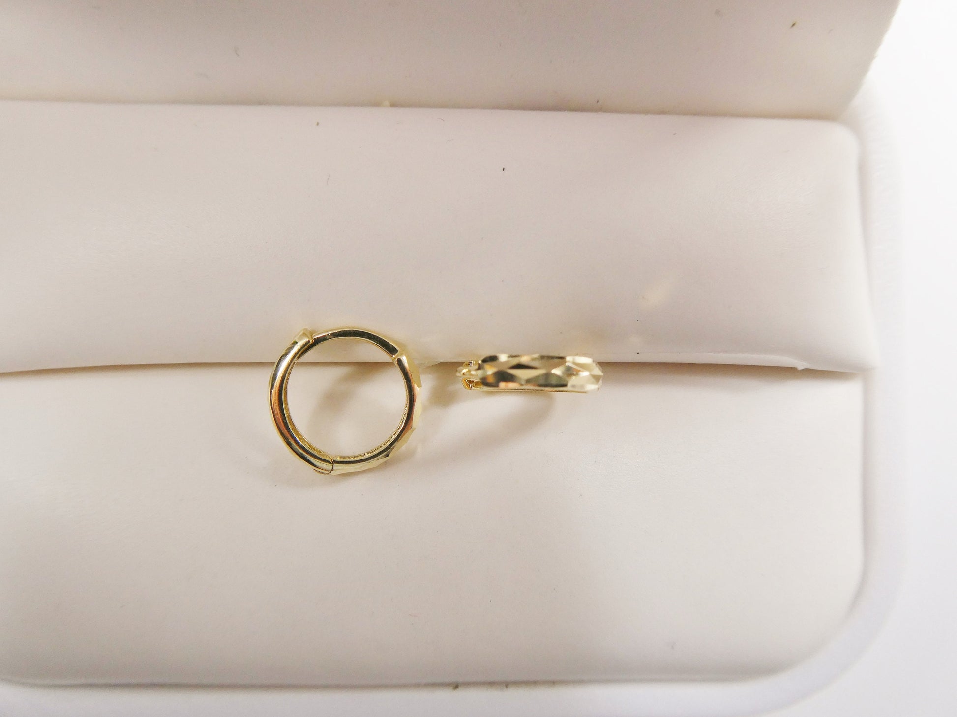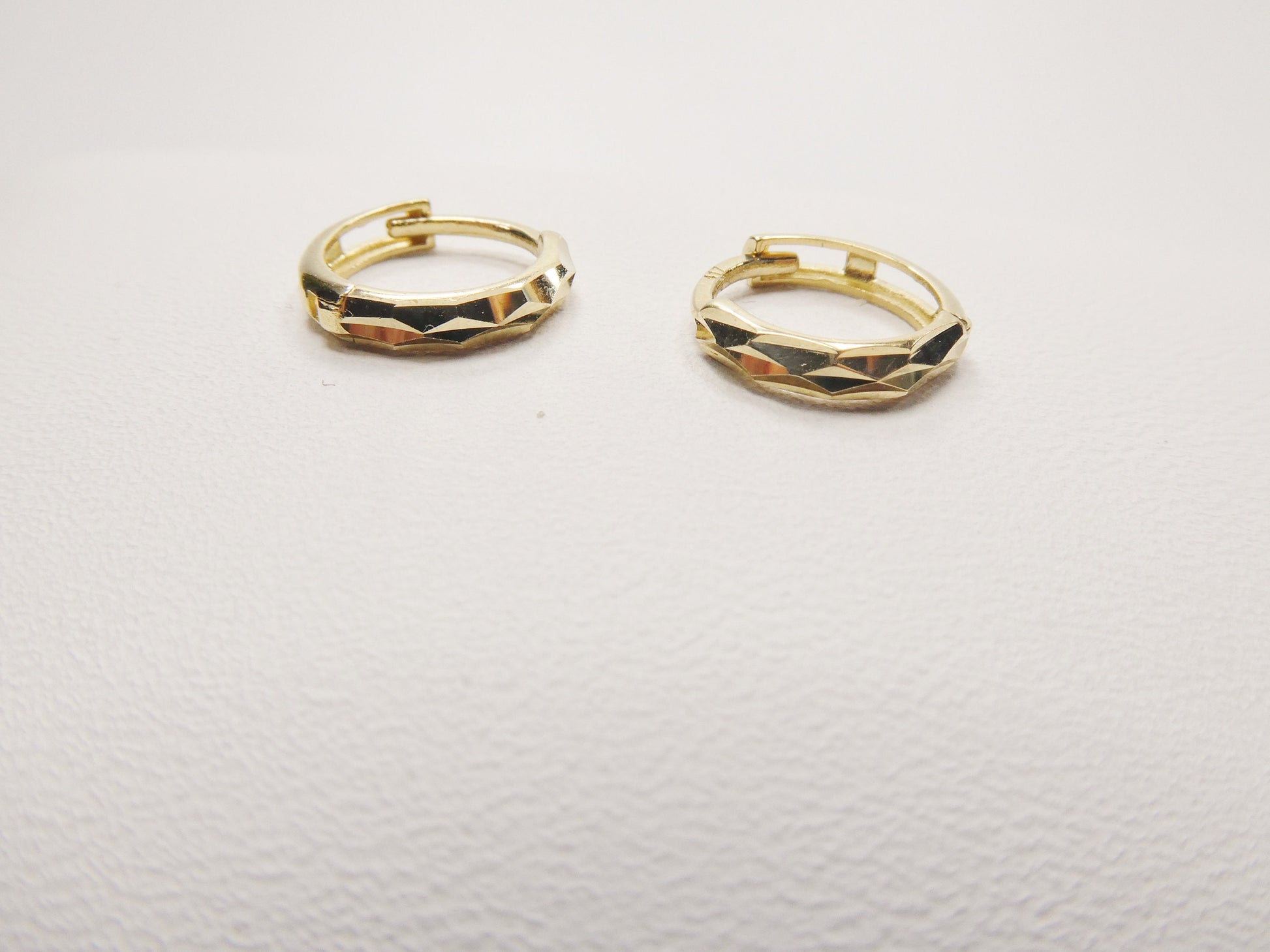 real 10k solid yellow gold diamond cut 10mm hoop huggie earring