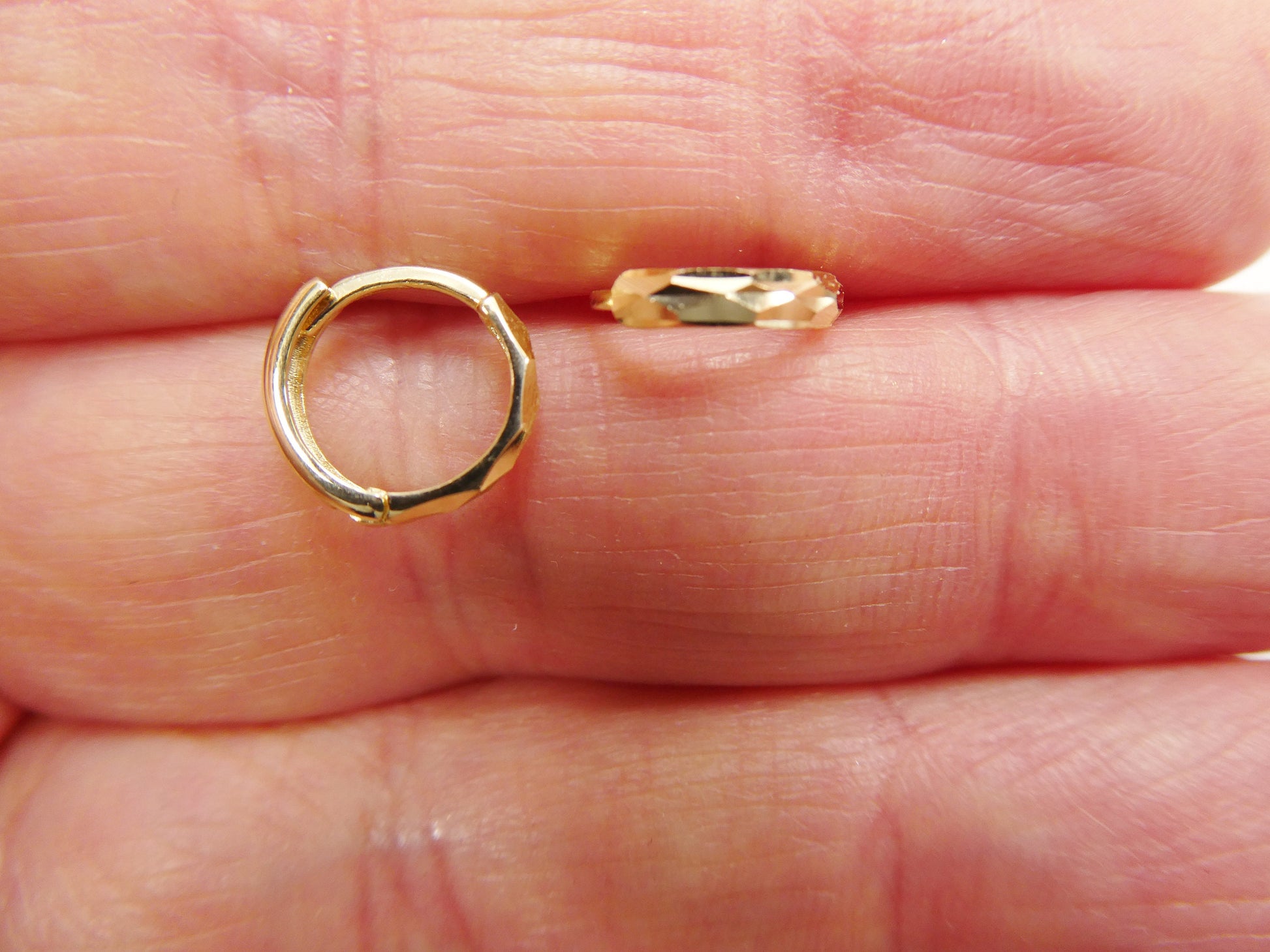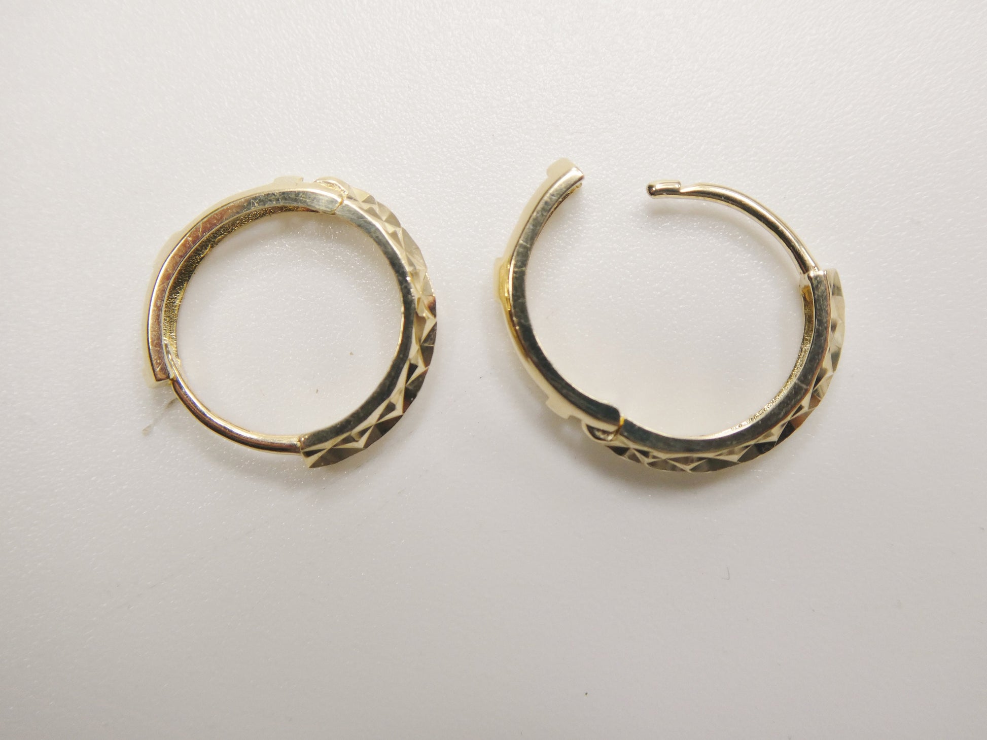 real 10k solid yellow gold diamond cut 13mm hoop huggie earring