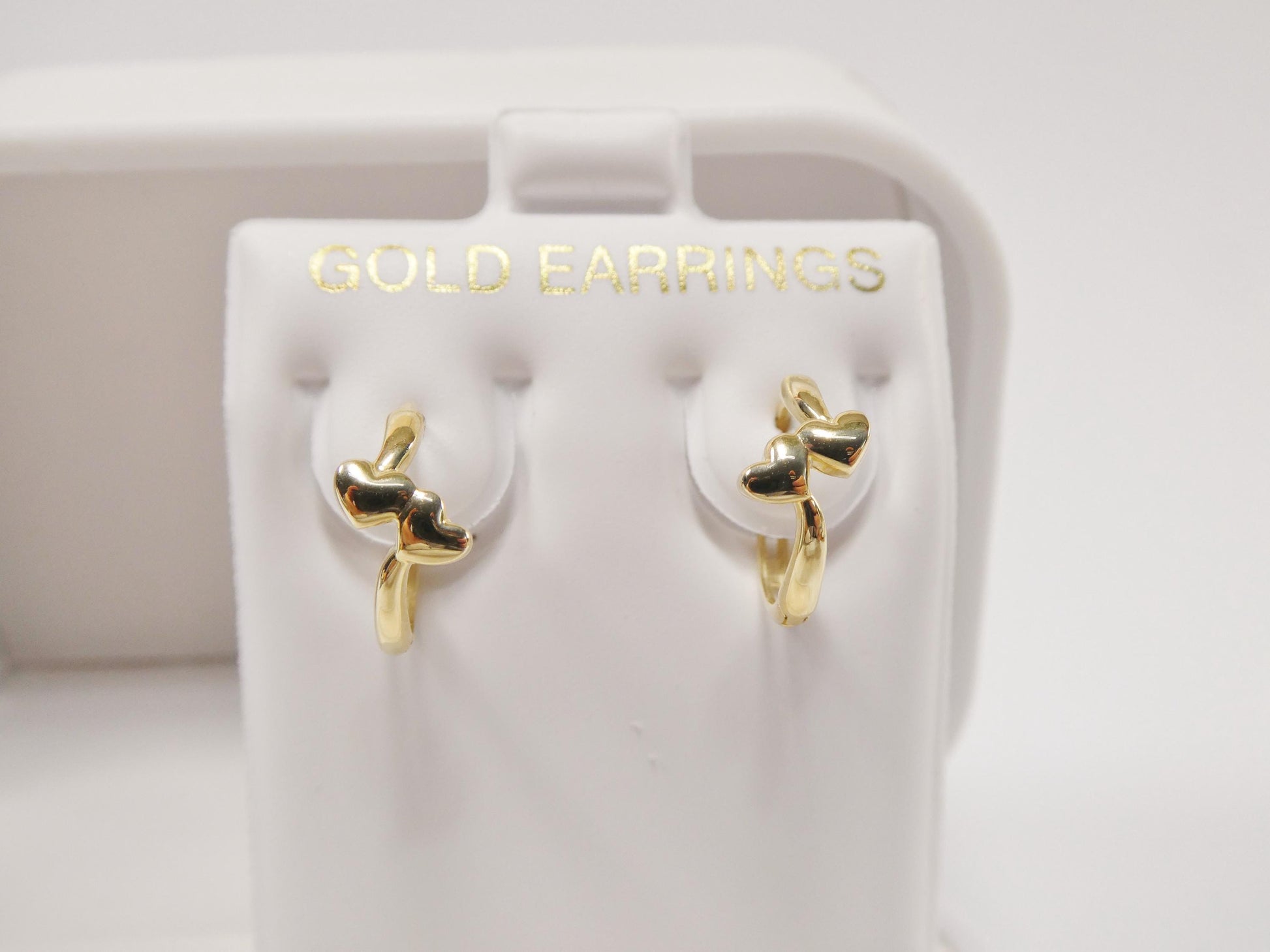 real 10k solid yellow gold double heart dropping huggie earring