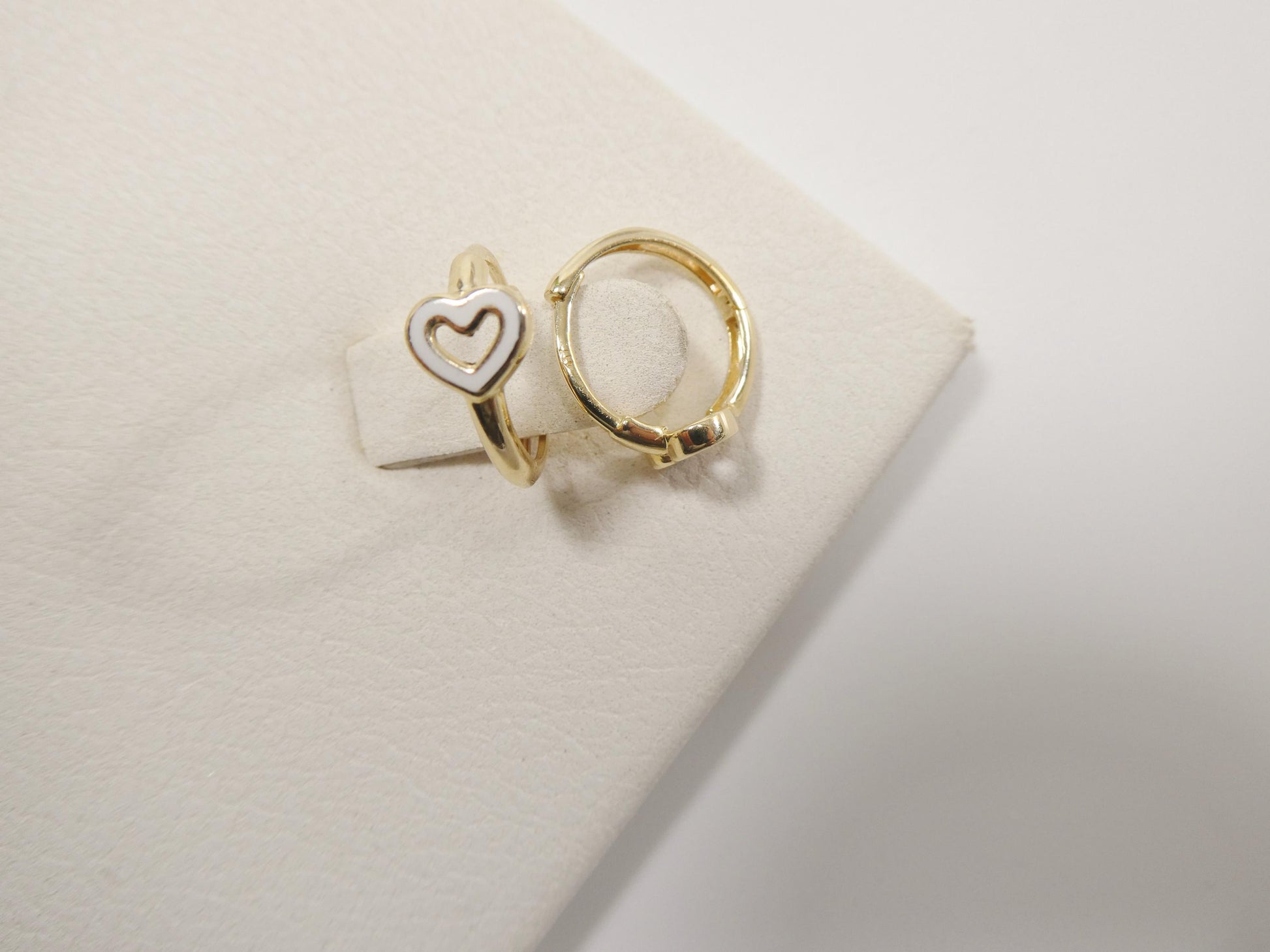 real 10k solid yellow gold enamel heart hoop huggie earring