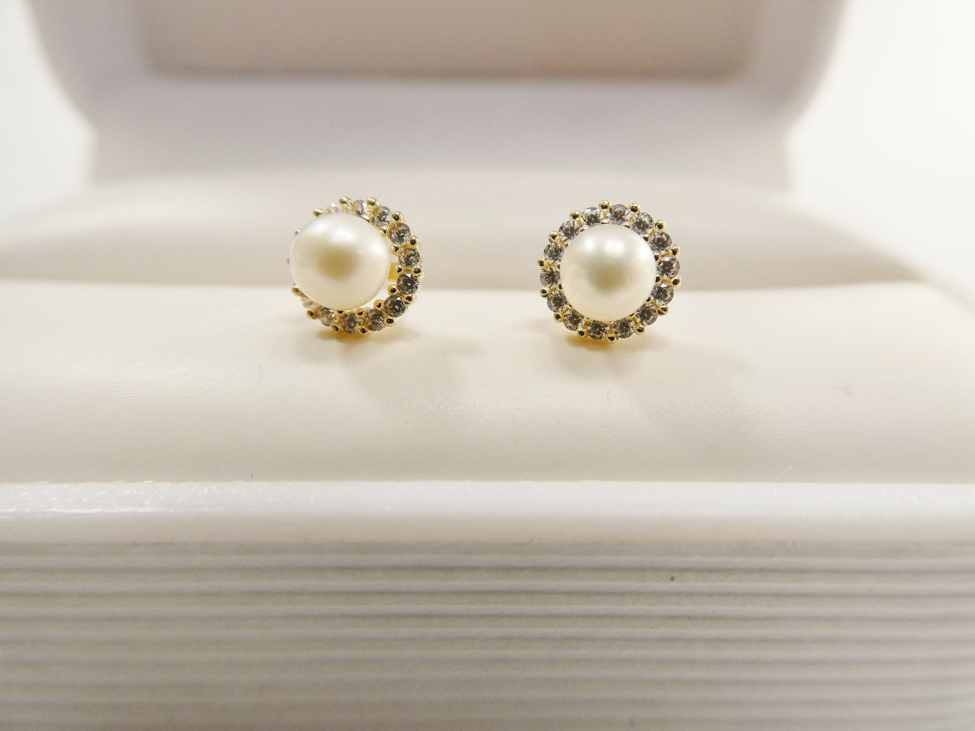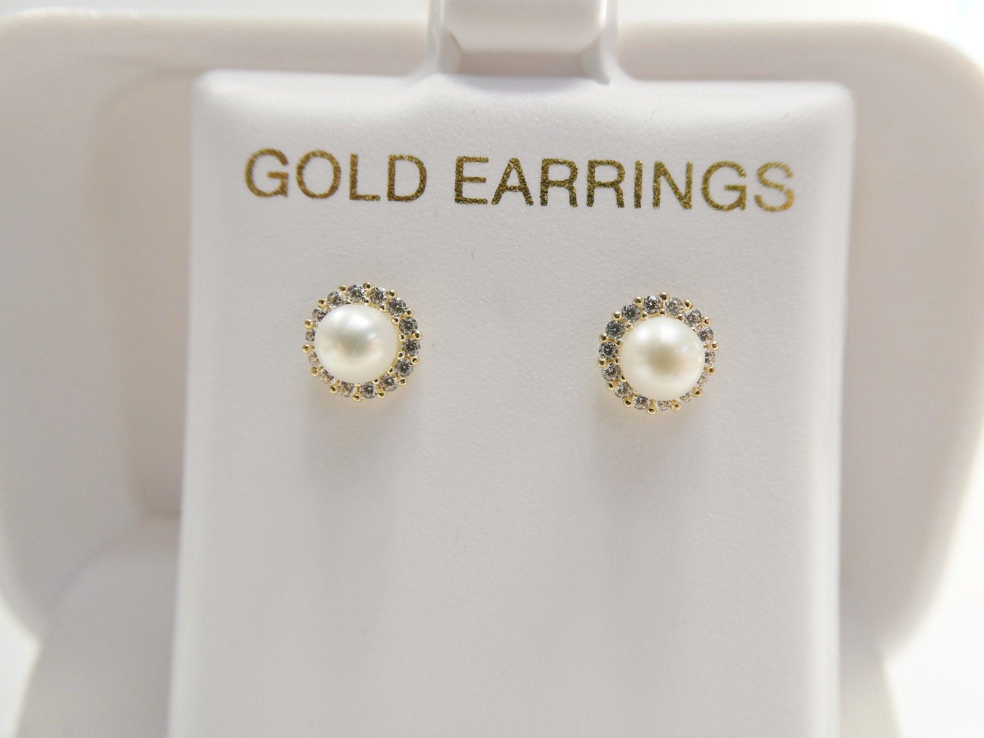 real 10k solid yellow gold freshwater cultured pearl screw back stud earrings