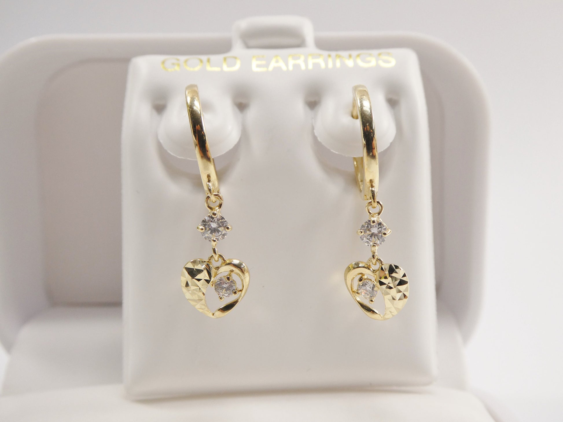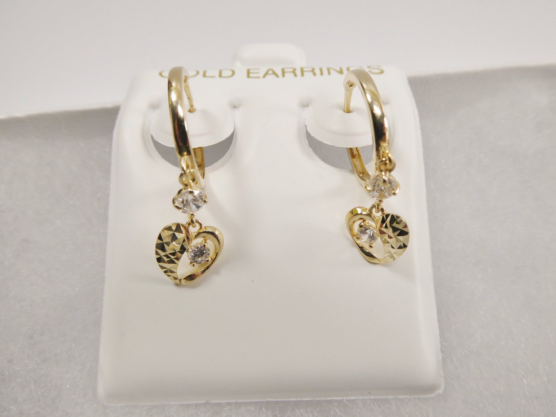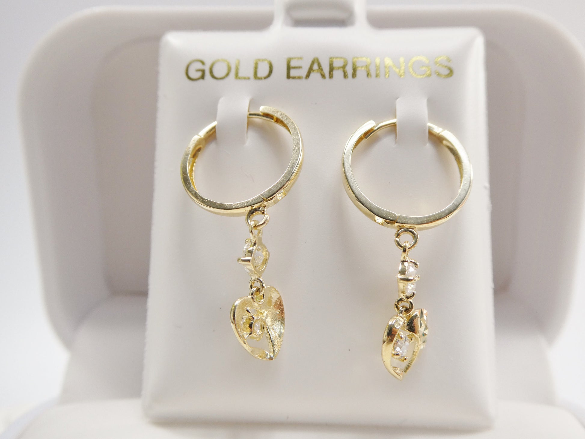real 10k solid yellow gold heart dangle hoop huggie earring
