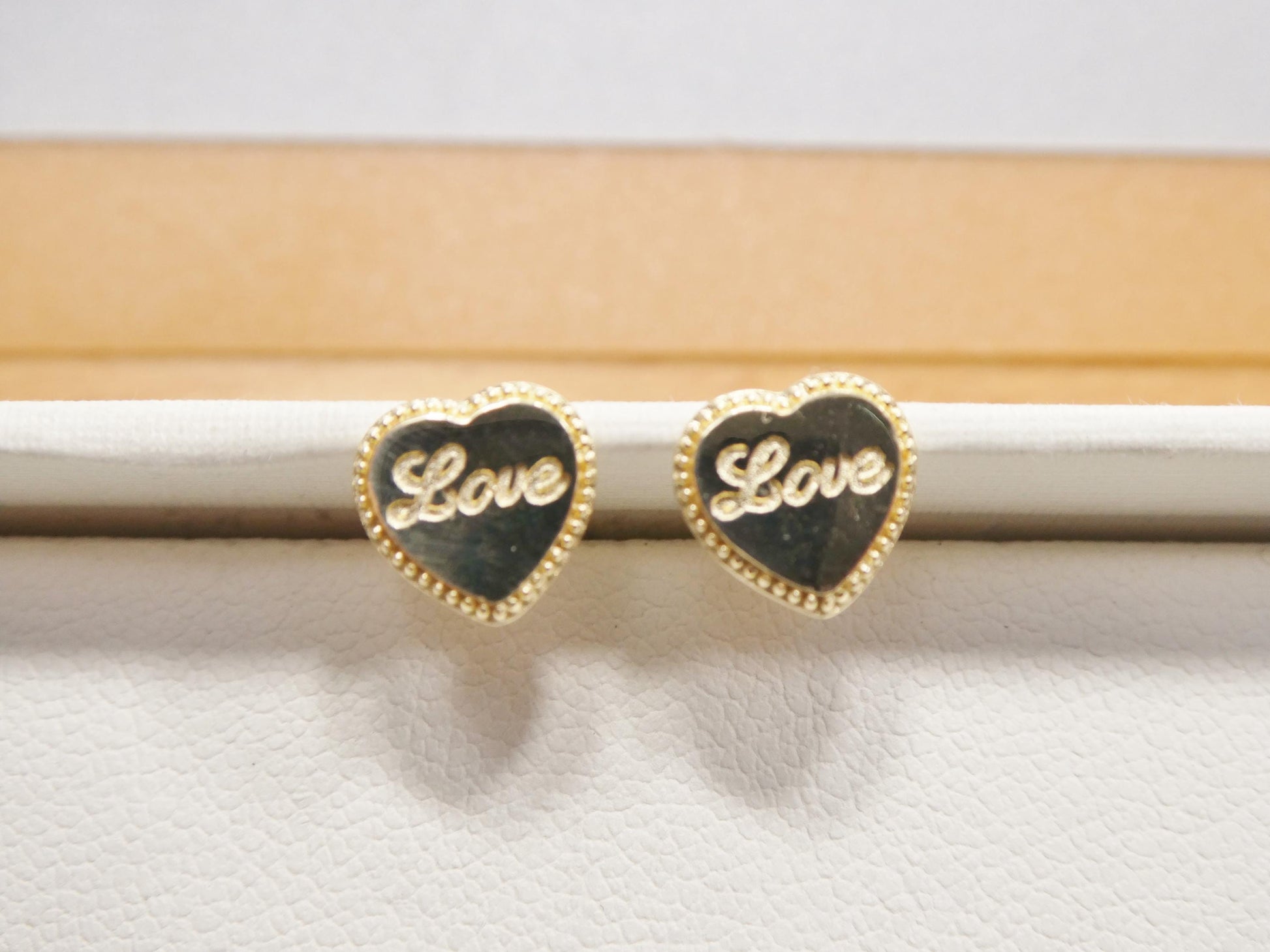 REAL 10K SOLID YELLOW GOLD DESIGN HIGH POLISH HEART LOVE ENGRAVE PUSH POST EARRINGS HIGH QUALITY HIGH POLISH PERFECT FINISH GUARANTEE 10K GOLD MARK AND STAMP COME WITH FREE GOLD FILLED BACKING ATTRACTIVE LOOK GREAT PRICE COME IN NICE GIFT BOX MAKE IT GREAT GIFT FOR ANY OCCASION