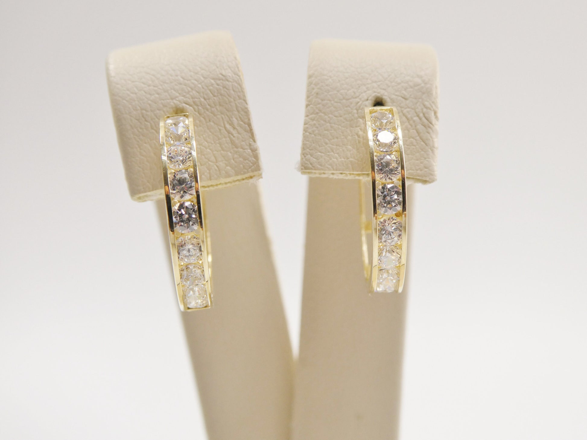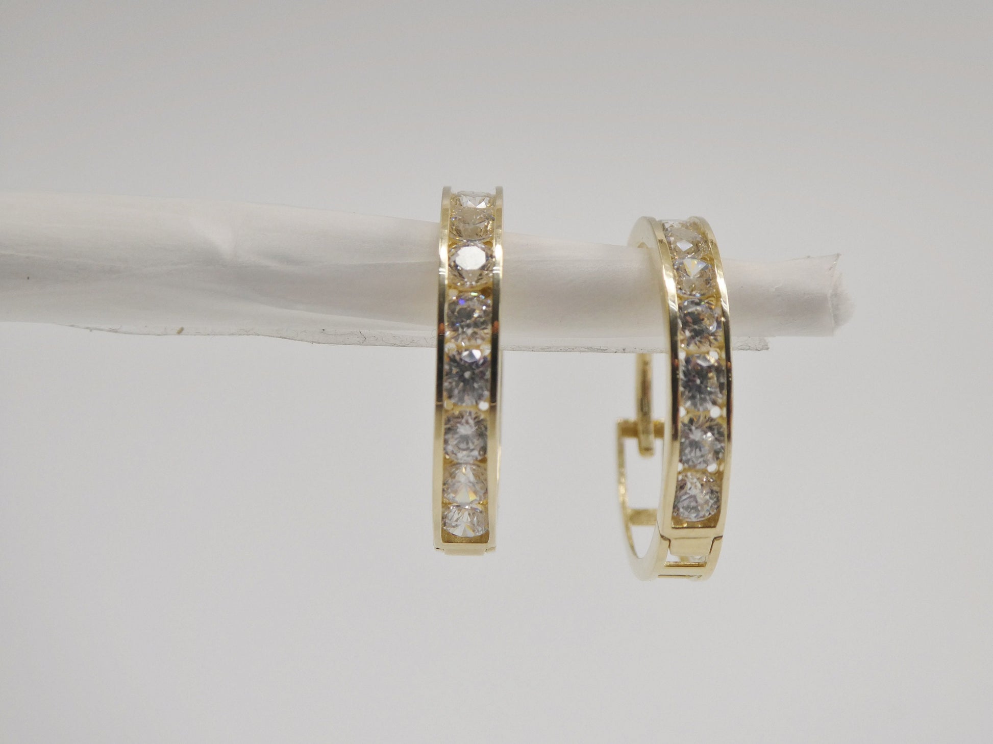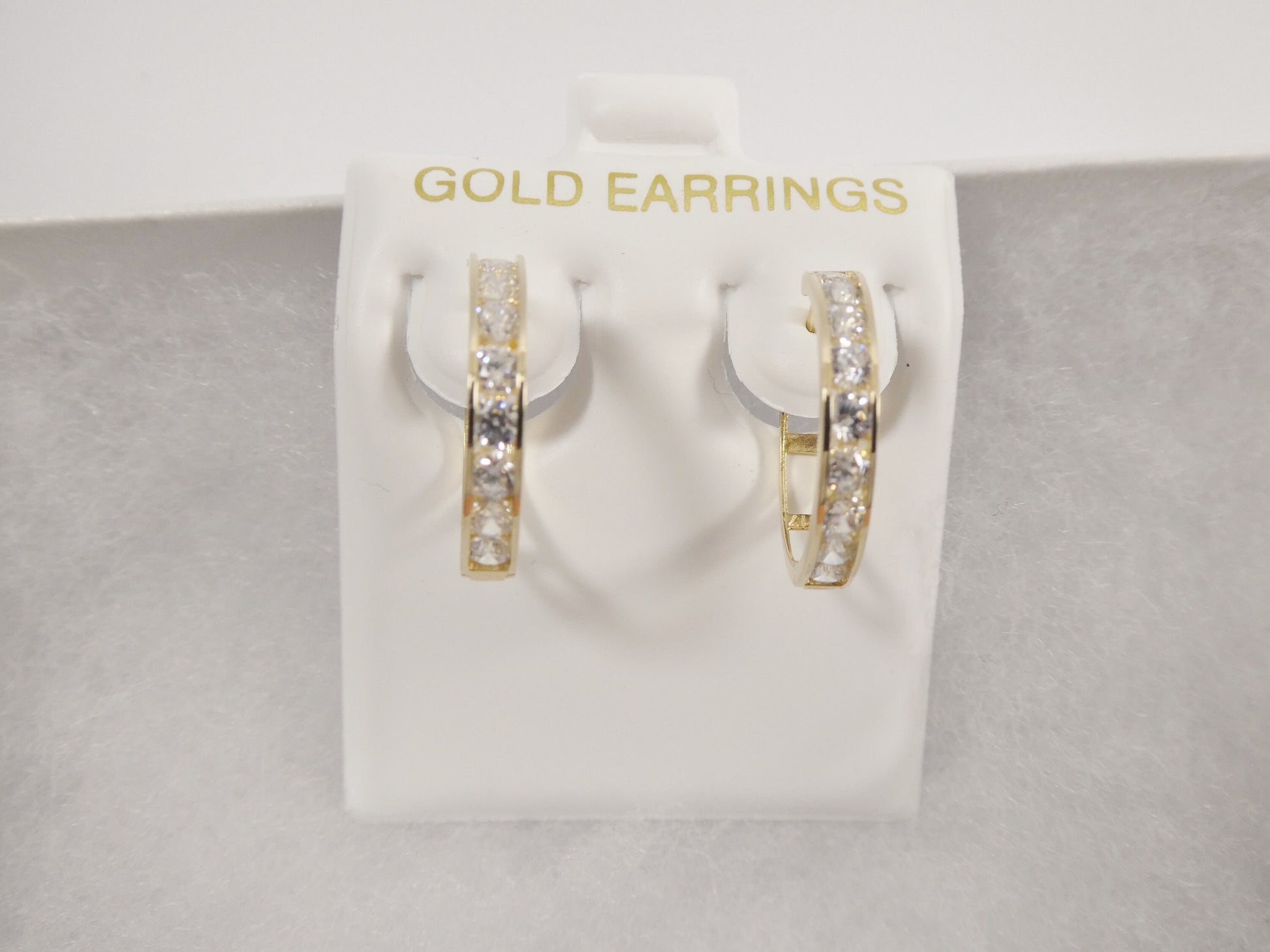 REAL 10K SOLID YELLOW GOLD LARGE AAA SHINY CUBIZ ZIRCONIA CHANNEL SETTING HIGH POLISH HUGGIE HOOP EARRING HIGH QUALITY HIGH POLISH PERFECT FINISH GUARANTEE 10K GOLD MARK AND STAMP( NOT GOLD PLATED OR GOLD FILLED ) COME IN NICE GIFT BOX MAKE IT GREAT GIFT FOR ANY OCCASION