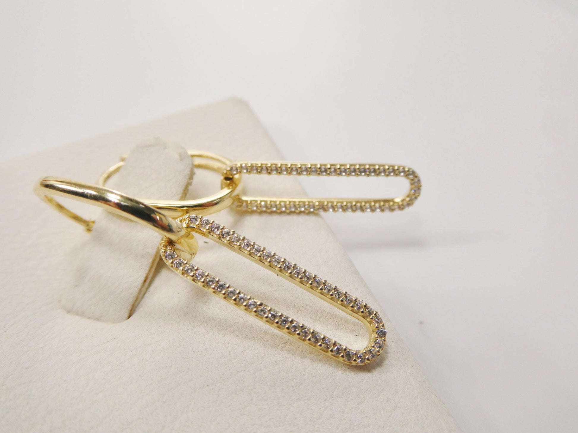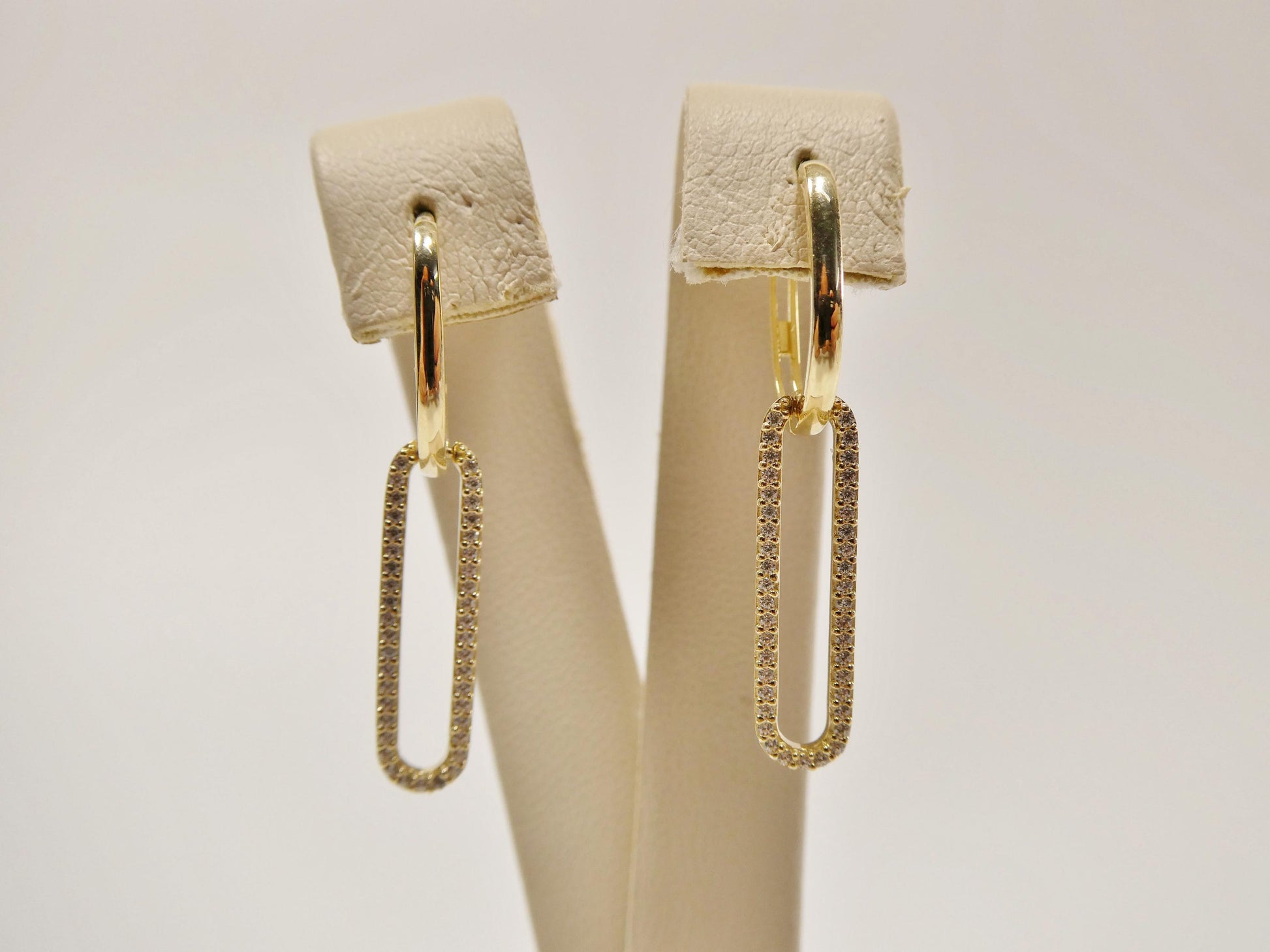 real 10k solid yellow gold long hanging paperclip earring