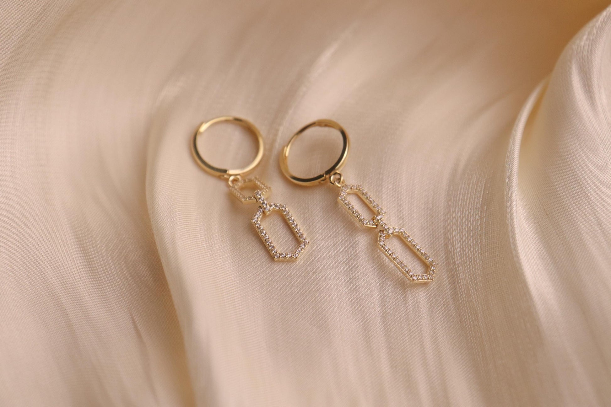 real 10k solid yellow gold paperclip dangling hoop huggie earring