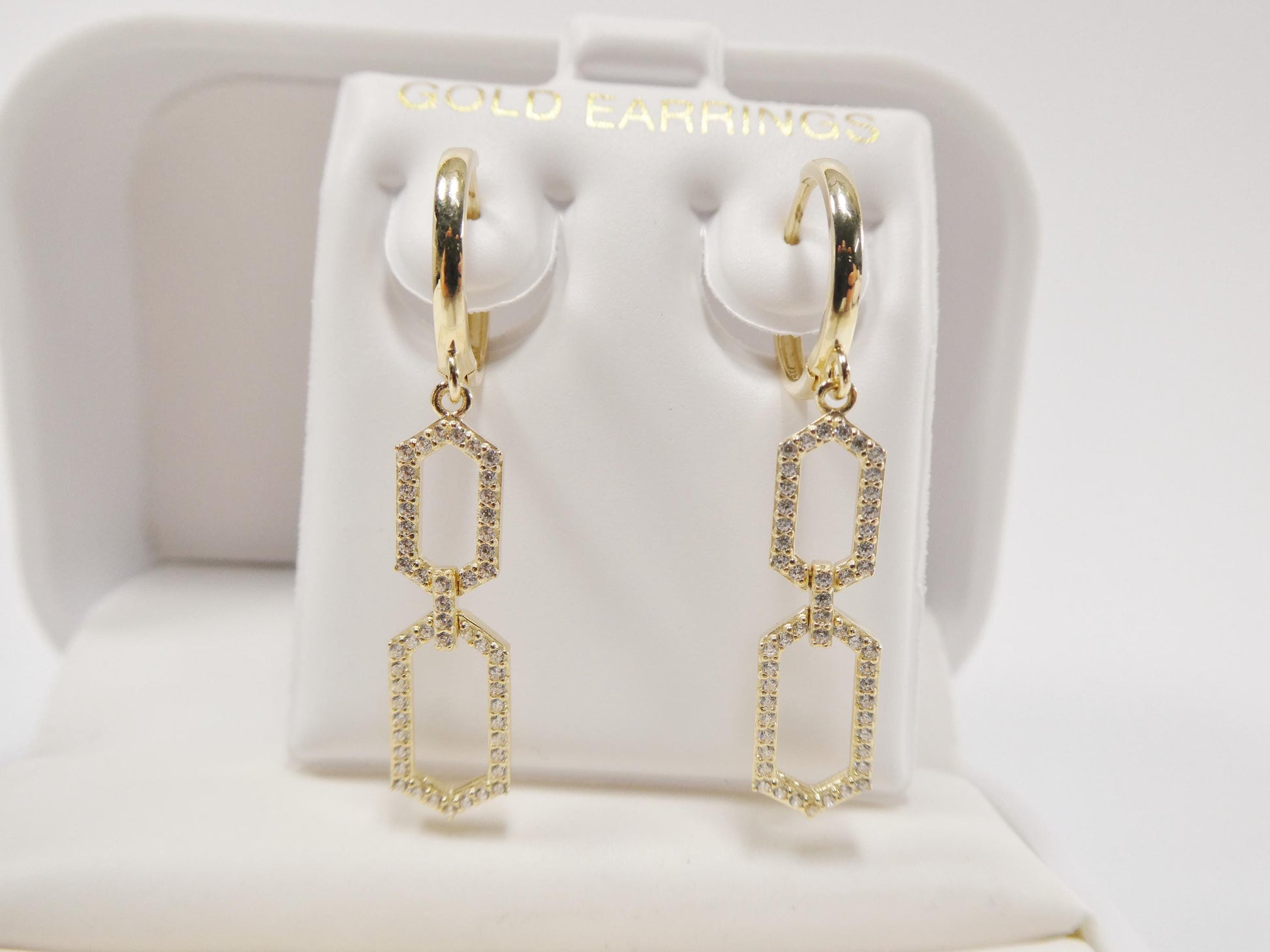 REAL 10K SOLID YELLOW GOLD PAPERCLIP DANGLING HUGGIE HOOP EARRING HIGH QUALITY HIGH POLISH PERFECT FINISH GUARANTEE 10K GOLD MARK AND STAMP (NOT GOLD FILLED OR GOLD PLATING ) COME IN NICE GIFT BOX MAKE IT GREAT GIFT FOR ANY OCCASION