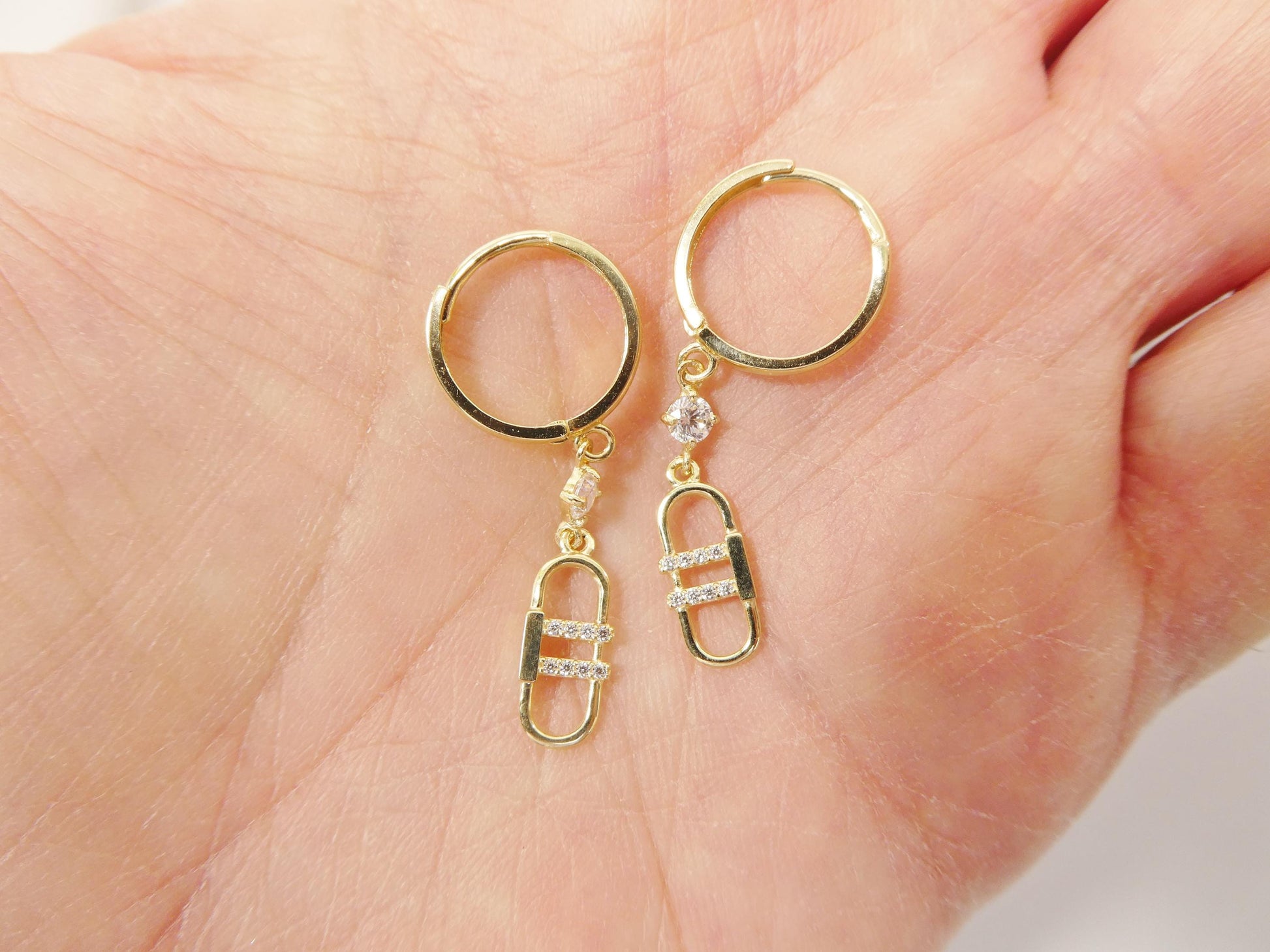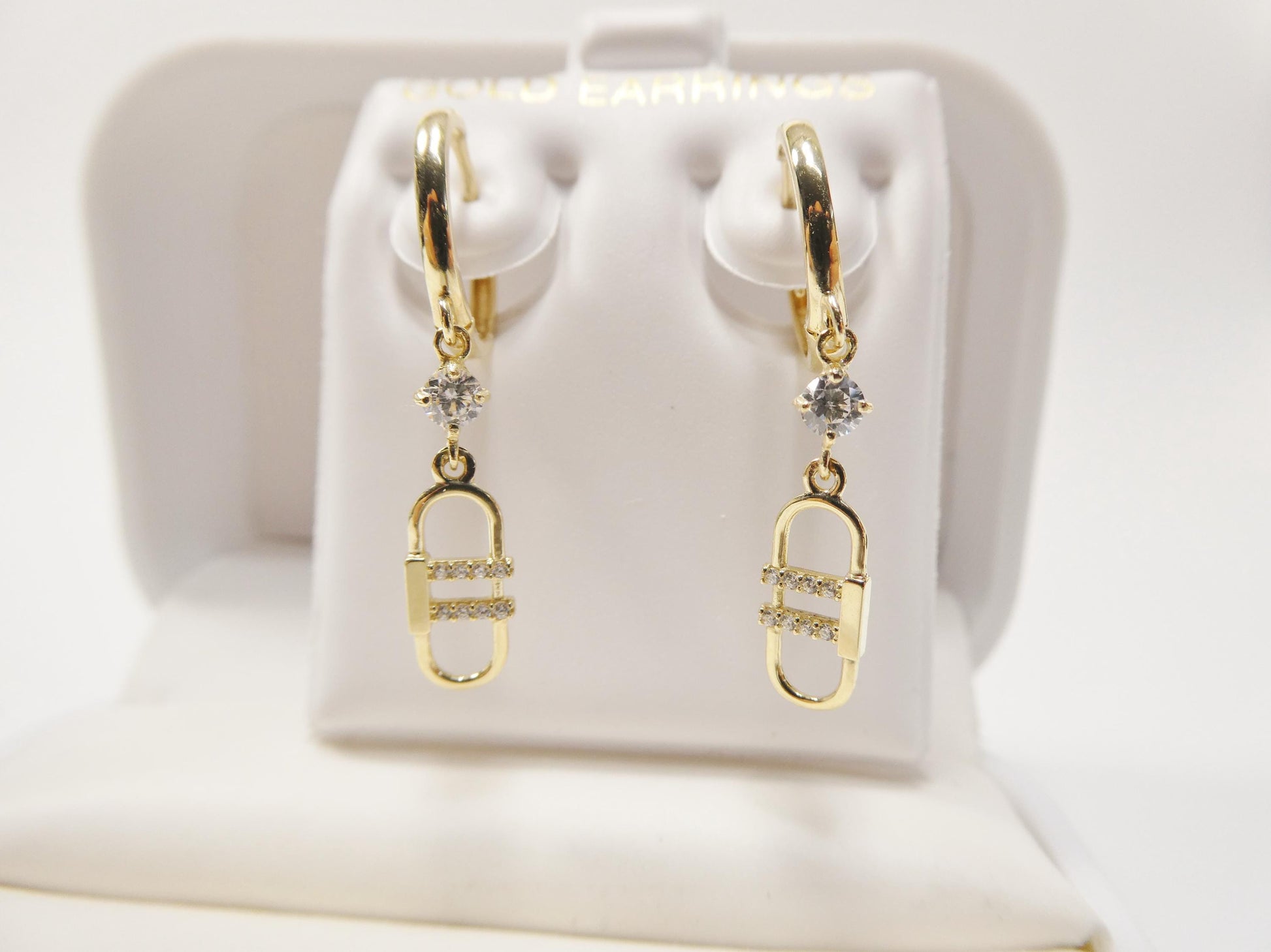 REAL 10K SOLID YELLOW GOLD CZ AAA SHINY STONE PAPERCLIP DROP EARRING PLAIN HUGGIE HOOP EARRING HIGH QUALITY HIGH POLISH PERFECT FINISH GUARANTEE 10K GOLD MARK AND STAMP (NOT GOLD FILLED OR GOLD PLATING ) COME IN NICE GIFT BOX MAKE IT GREAT GIFT FOR ANY OCCASION