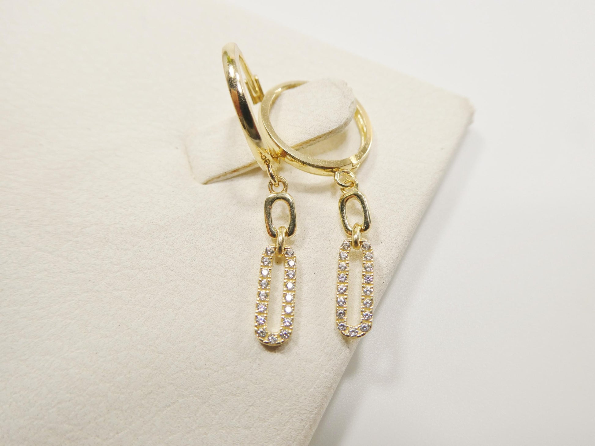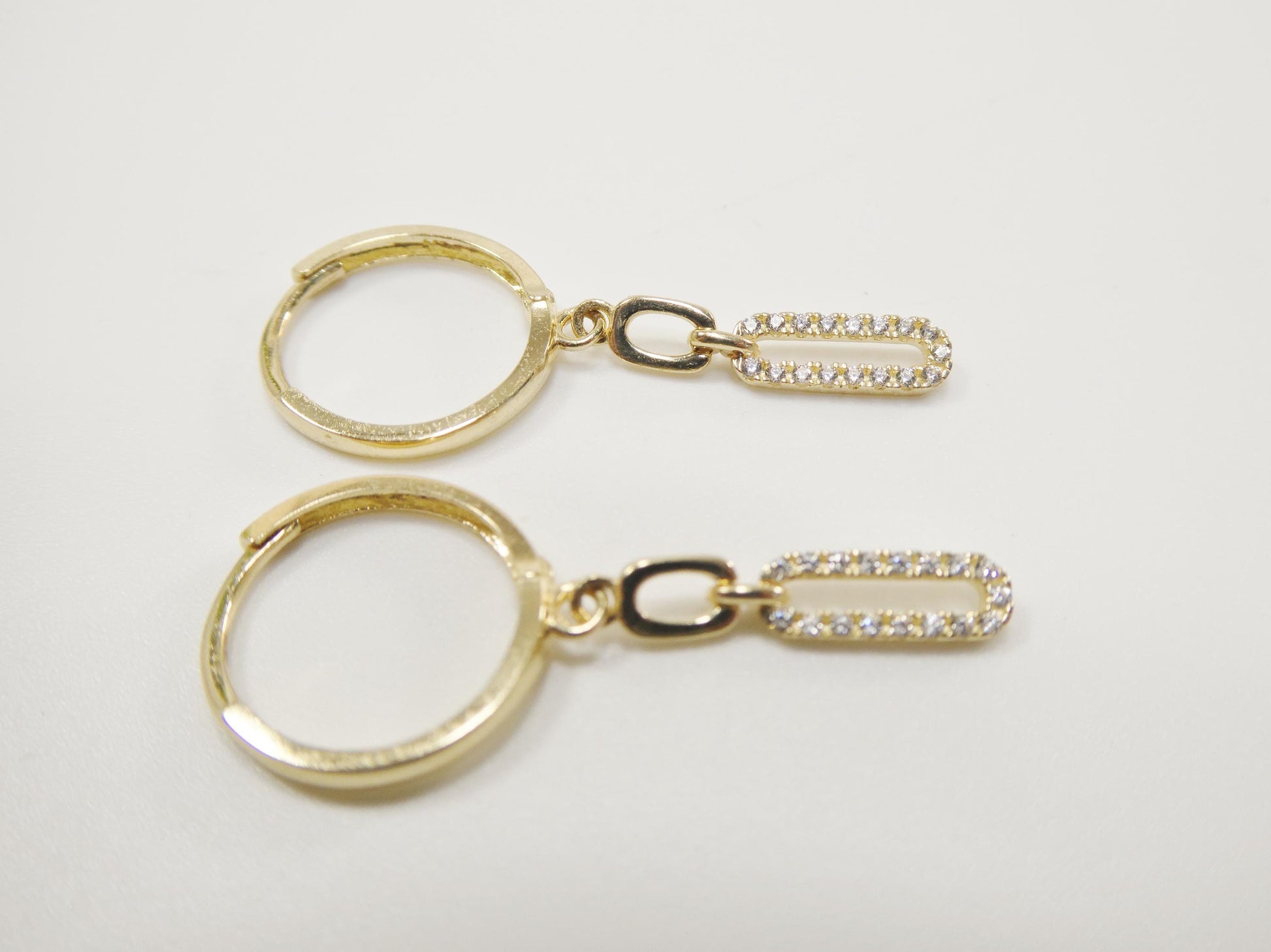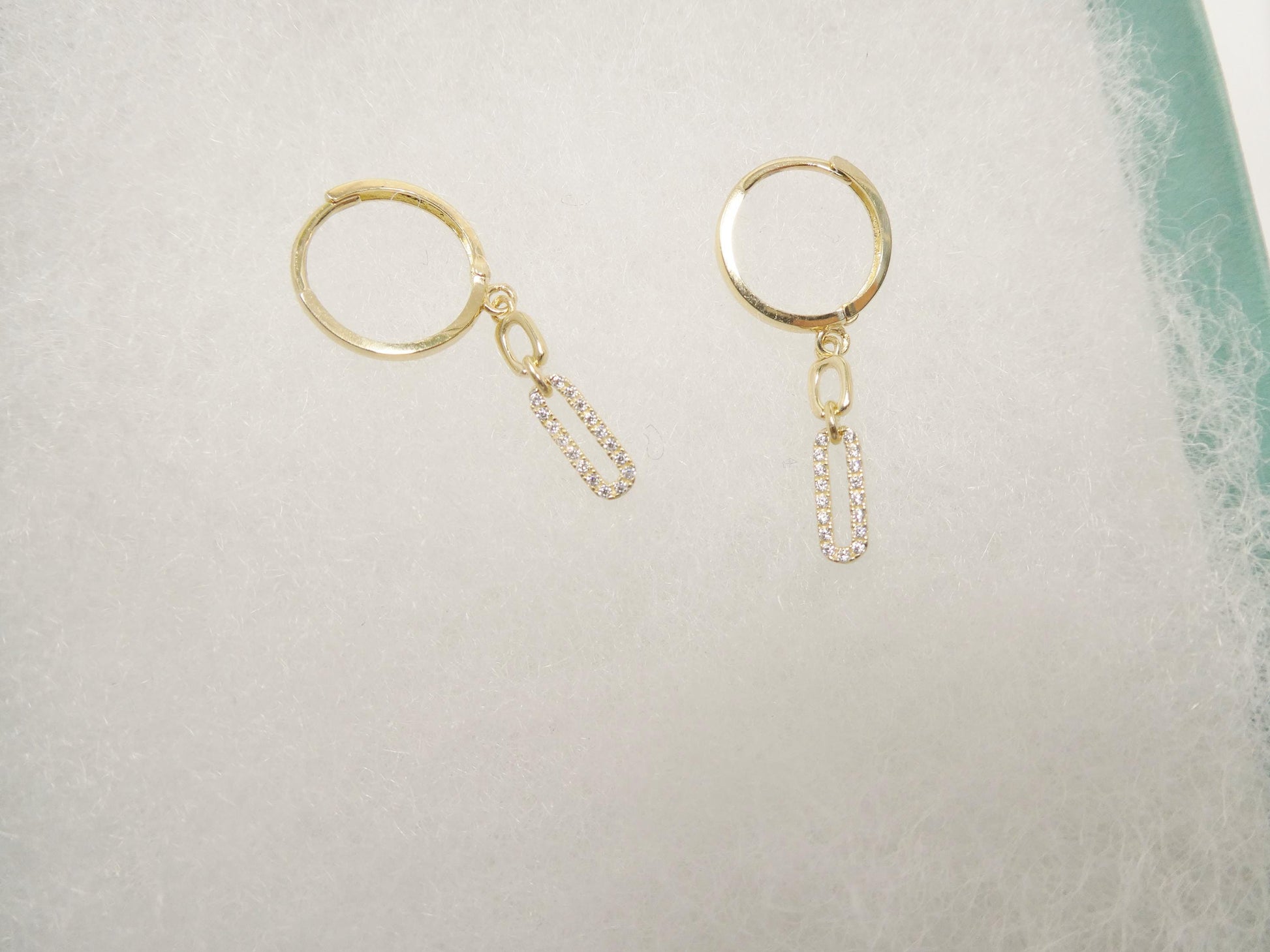REAL 10K SOLID YELLOW GOLD CZ AAA SHINY STONE PAPERCLIP DROP EARRING PLAIN HUGGIE HOOP EARRING HIGH QUALITY HIGH POLISH PERFECT FINISH GUARANTEE 10K GOLD MARK AND STAMP (NOT GOLD FILLED OR GOLD PLATING ) COME IN NICE GIFT BOX MAKE IT GREAT GIFT FOR ANY OCCASION