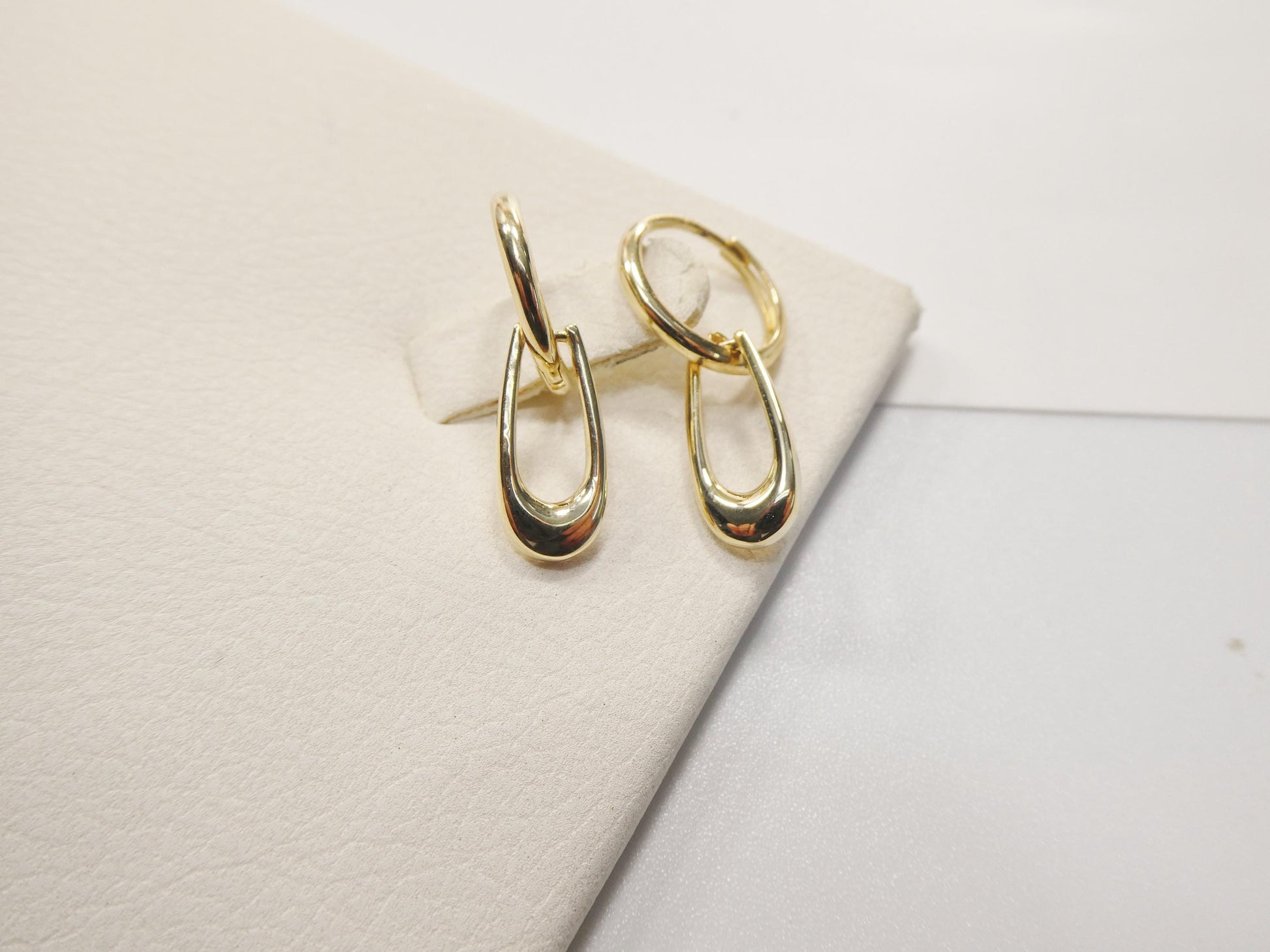 real 10k solid yellow gold paperclip dropping earrings