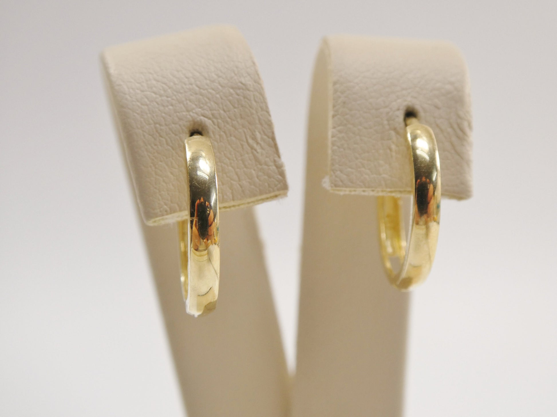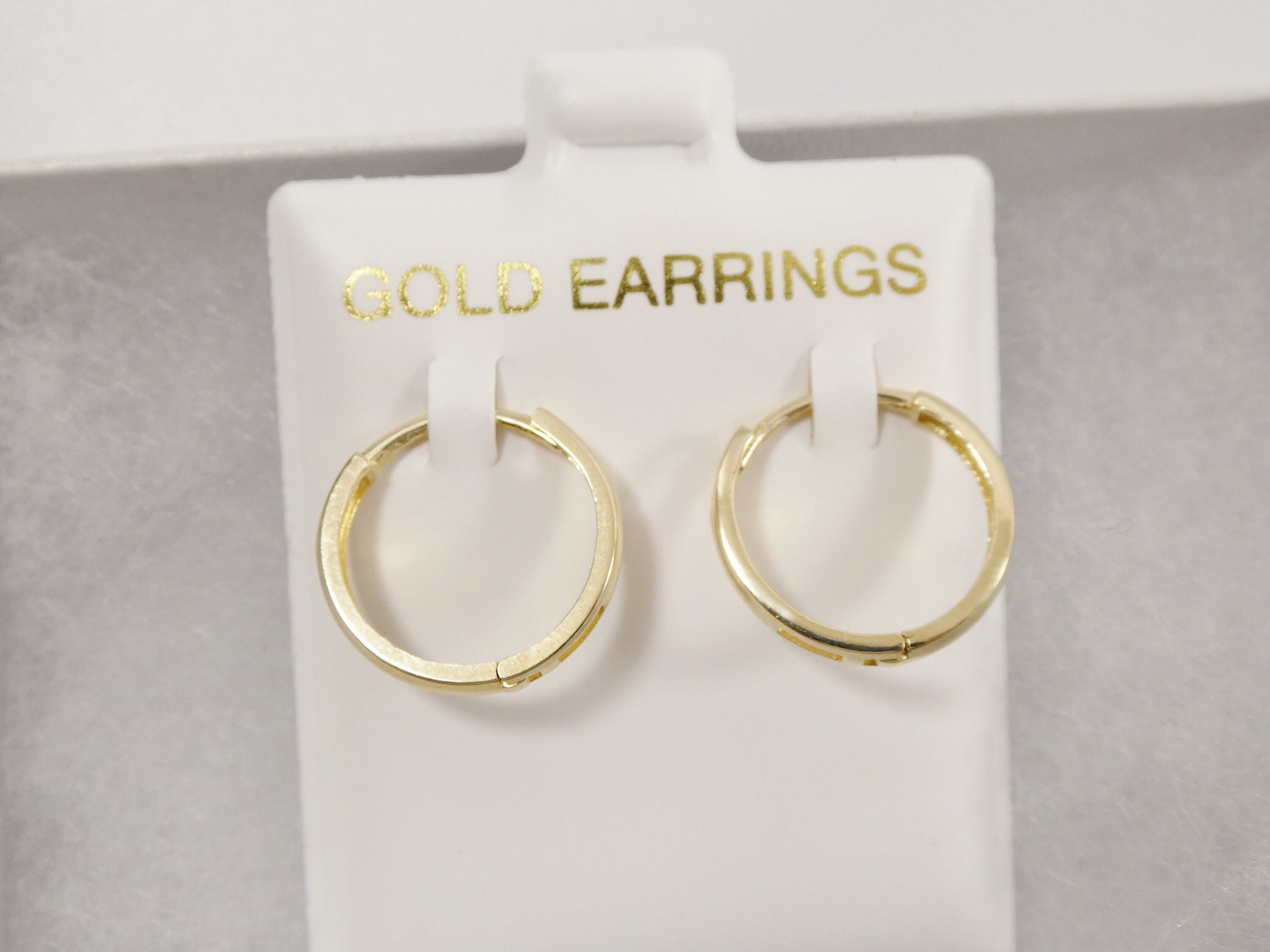 real 10k solid yellow gold plain high polish 15mm hoop huggie earrings