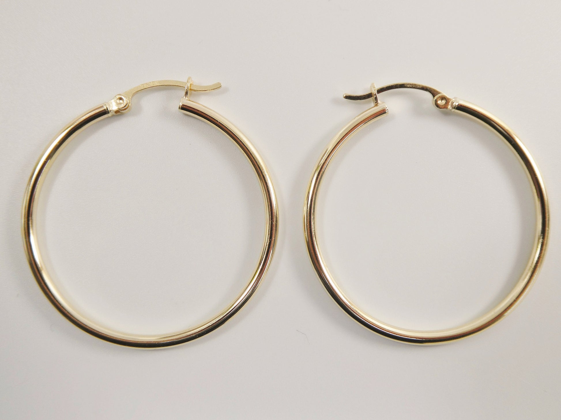 10K REAL 10K SOLID YELLOW GOLD PLAIN SUPPER POLISH HOOP EARRING 2MM THICKNESS 35MM DIMETER HIGH POLISH HIGH QUALITY GREAT FINISH GUARANTEE REAL SOLID 10K GOLD MARK AND STAMP (NOT GOLD PLATED OR GOLD FILLED) COMFORT TO WEAR FOR EVREY DAY ATTRACTIVE LOOK COME IN NICE GIFT BOX
